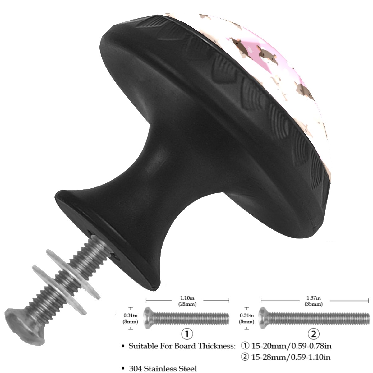 Cabinet Drawer Knobs Set of 4 Cute Hamster Head Pattern Pink Background Cabinet Furniture Knobs Drawer Pulls Handle Crystal Glass Round Cupboard Knobs with Screws for Cabinets Kitchen Dresser Wardrobe DIY