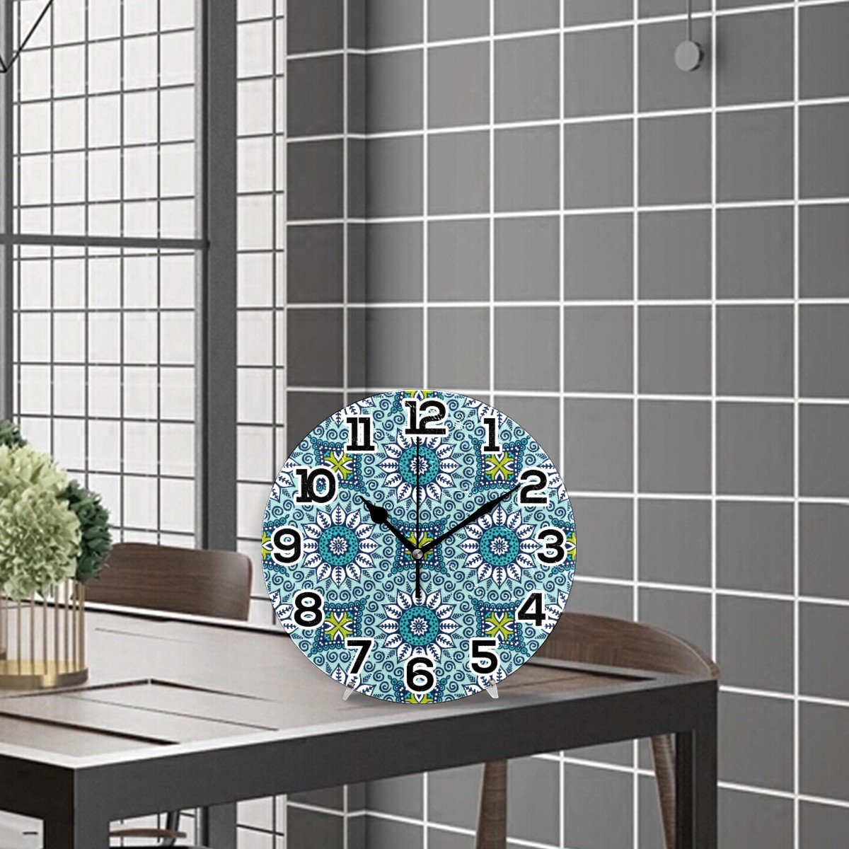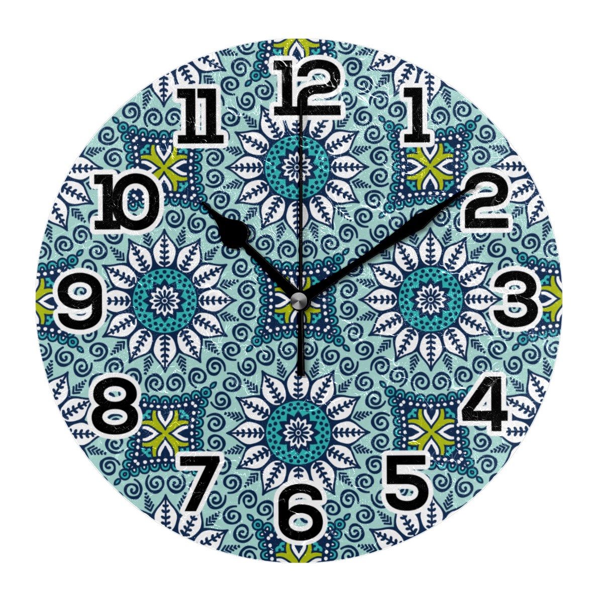 Vintage Ethnic Boho Floral Blue Clock Wall Decor Acrylic Decorative Round Battery Operated Wall Clocks for Home Bedroom Living Room Decor Silent Non Ticking