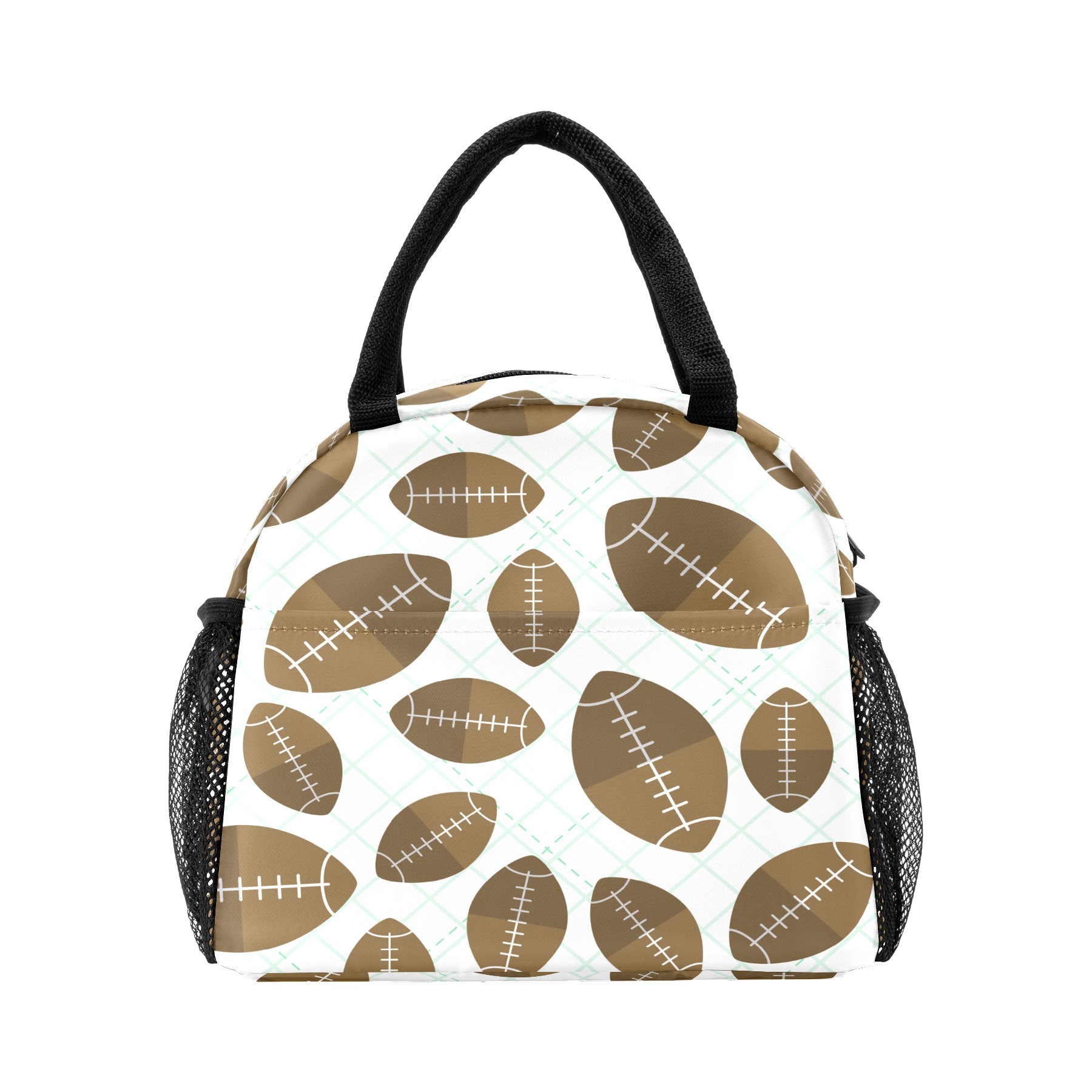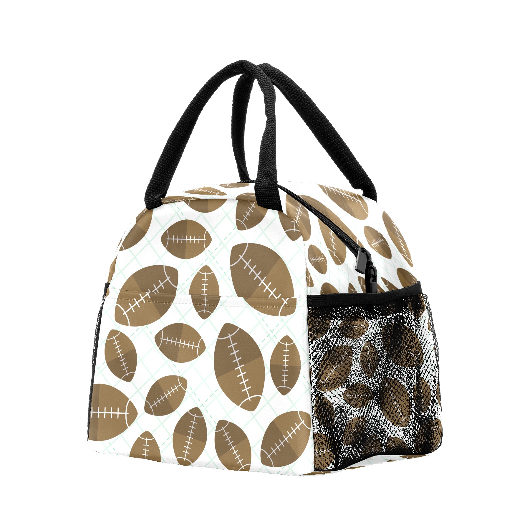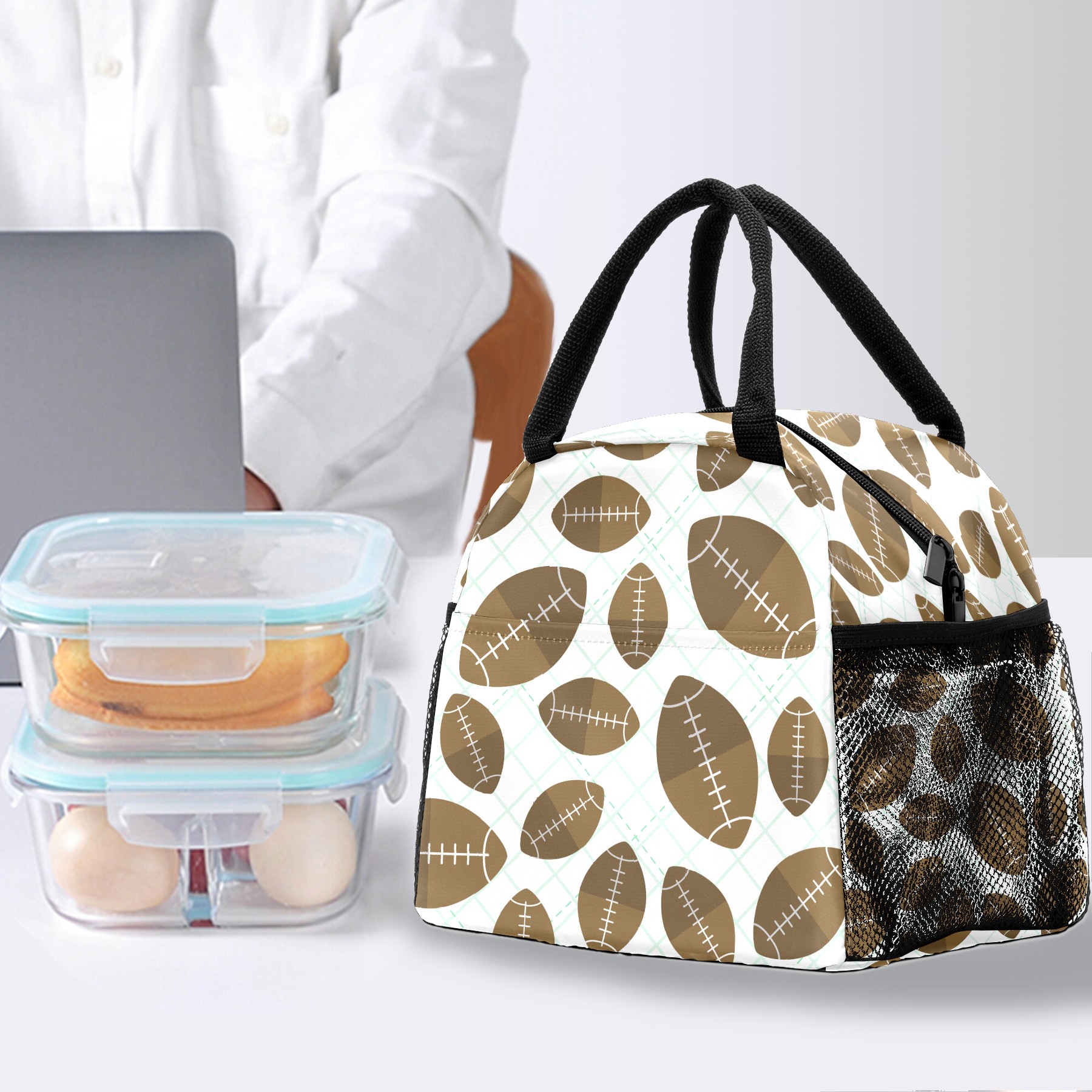 Lunch Bag for Women Men, Sport Rugby Ball Pattern Insulated Reusable Lunch Box Thermal Cooler Tote Bag for Work Picnic Hiking Travel Beach