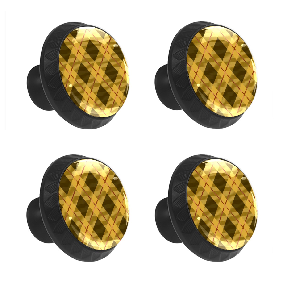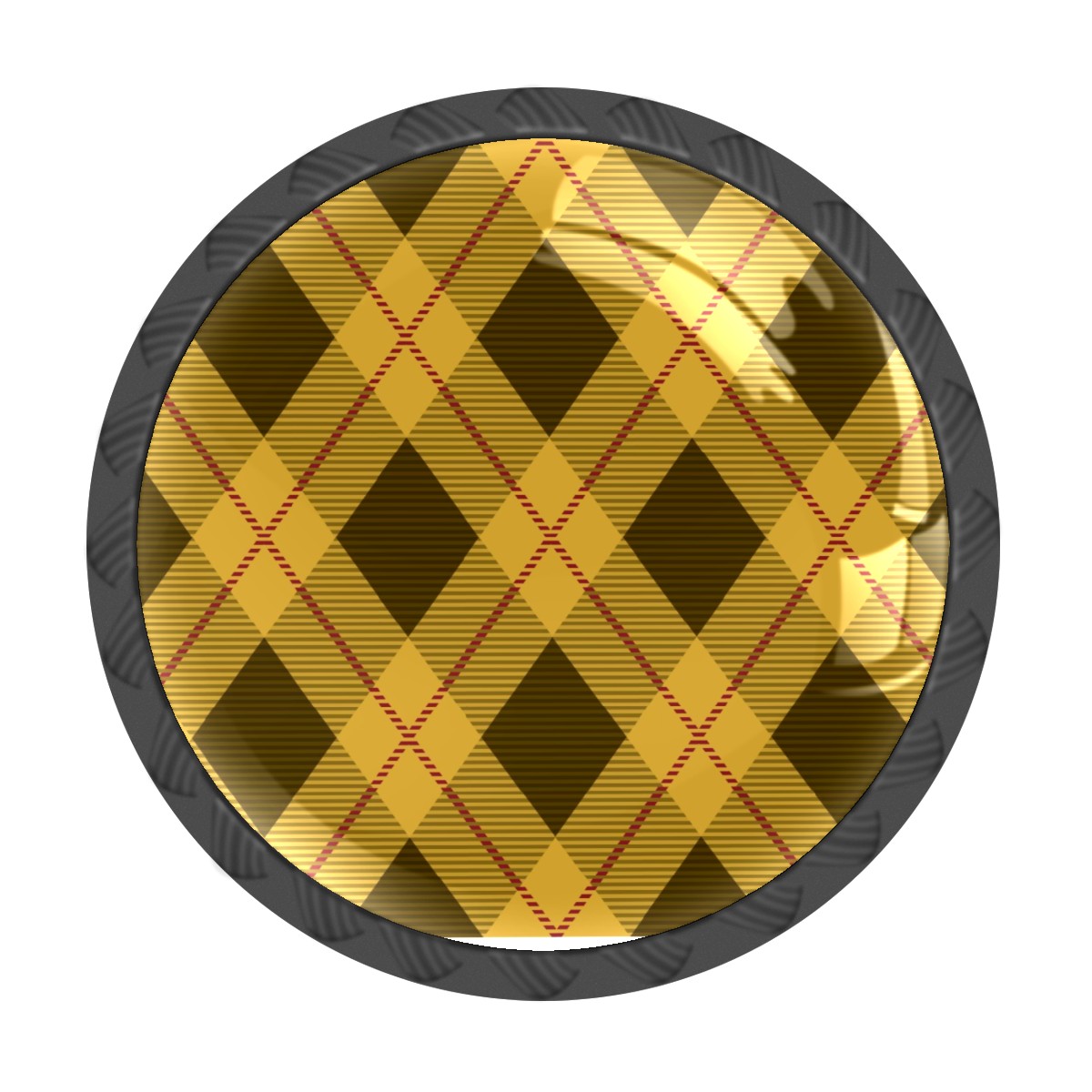 Cabinet Drawer Knobs Set of 4 Tartan Plaid Coffee Yellow Cross Pattern Cabinet Furniture Knobs Drawer Pulls Handle Crystal Glass Round Cupboard Knobs with Screws for Cabinets Kitchen Dresser Wardrobe DIY