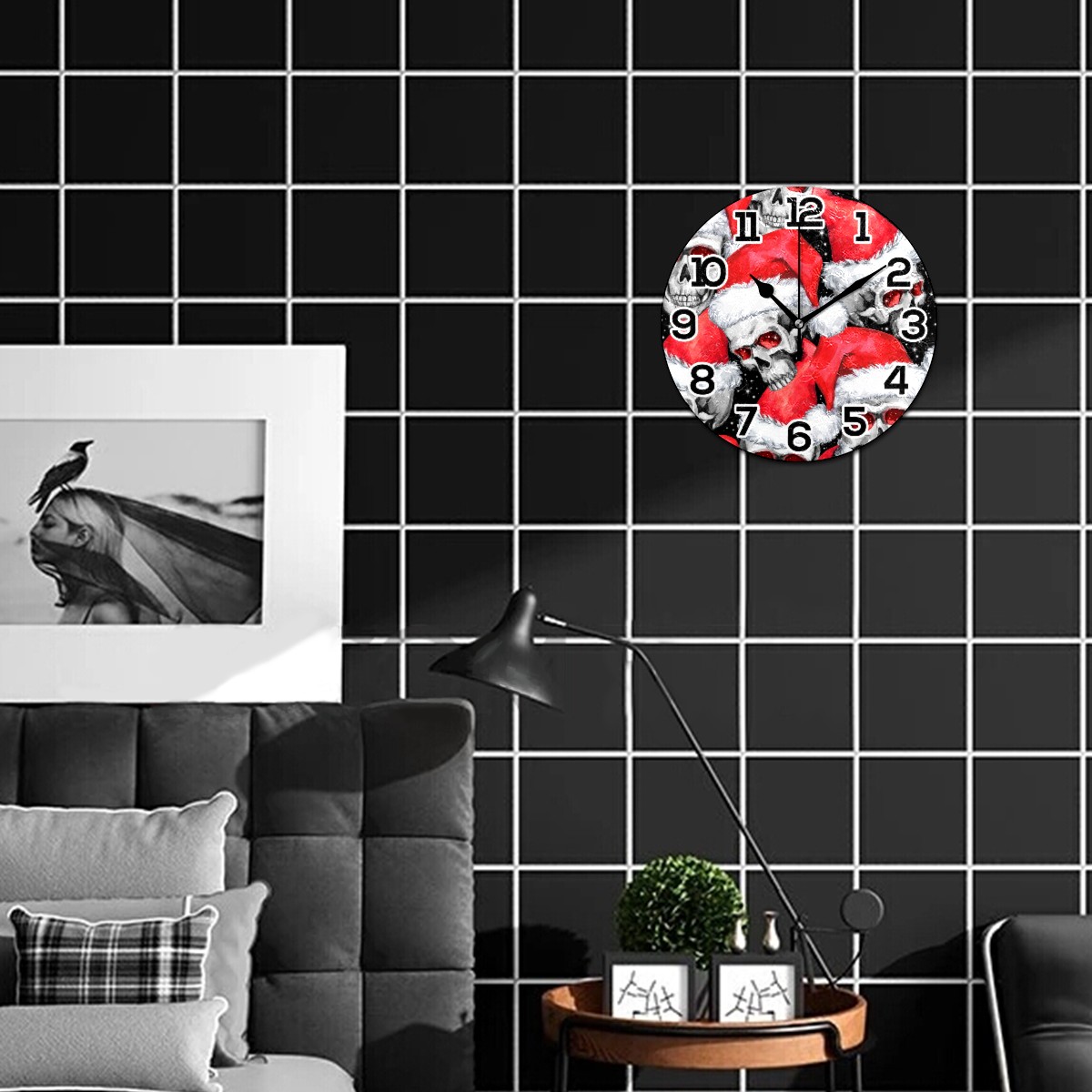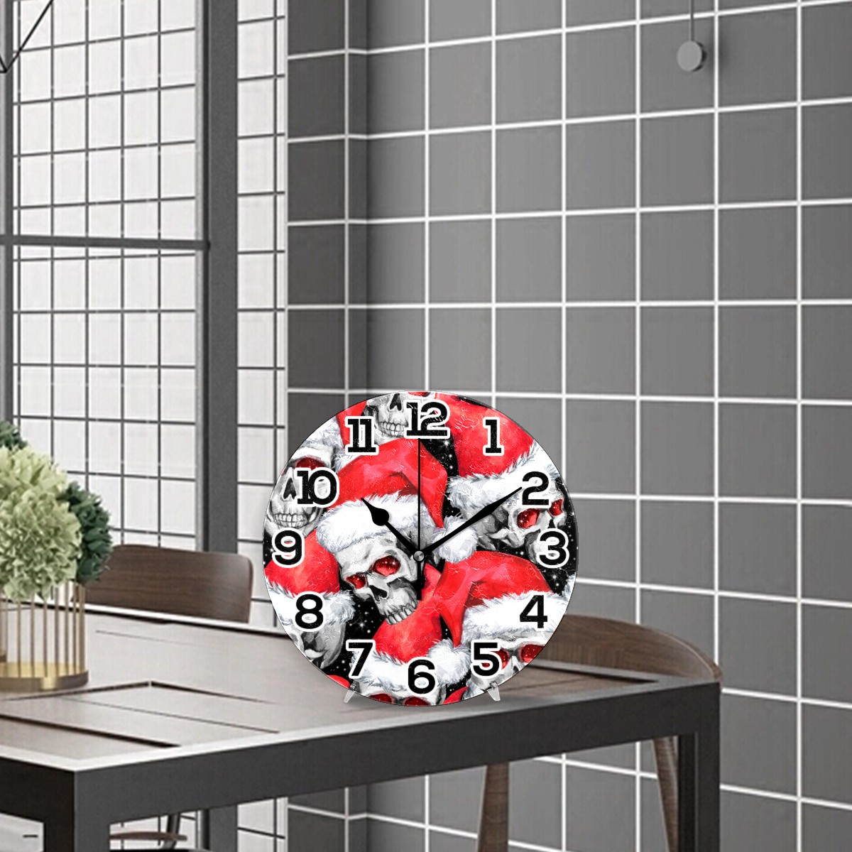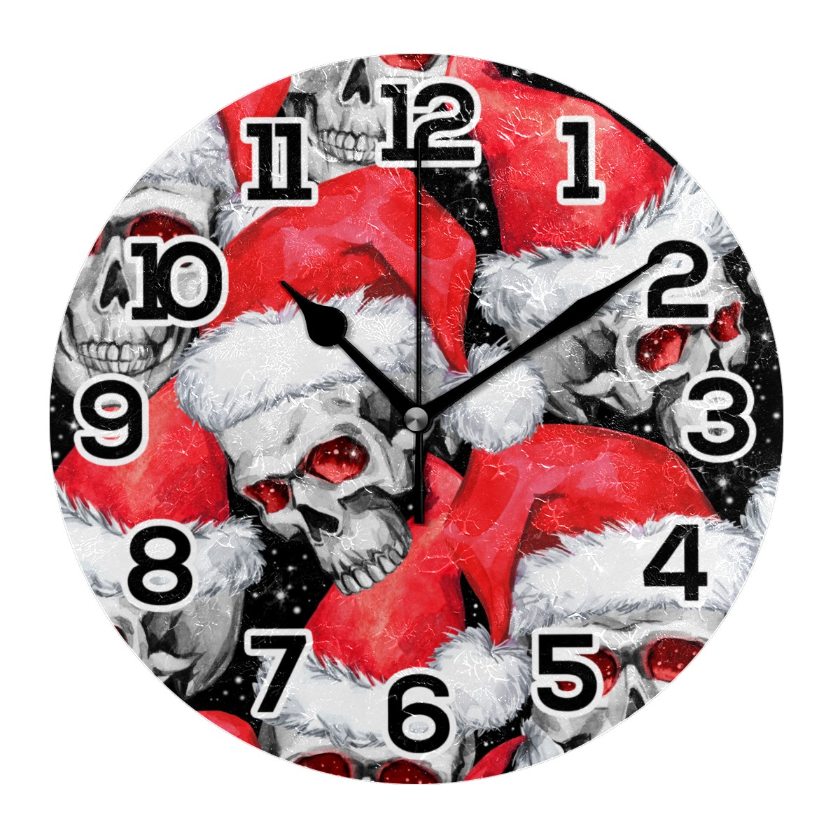 Skull With Christmas Hat Clock Wall Decor Acrylic Decorative Round Battery Operated Wall Clocks for Home Bedroom Living Room Decor Silent Non Ticking