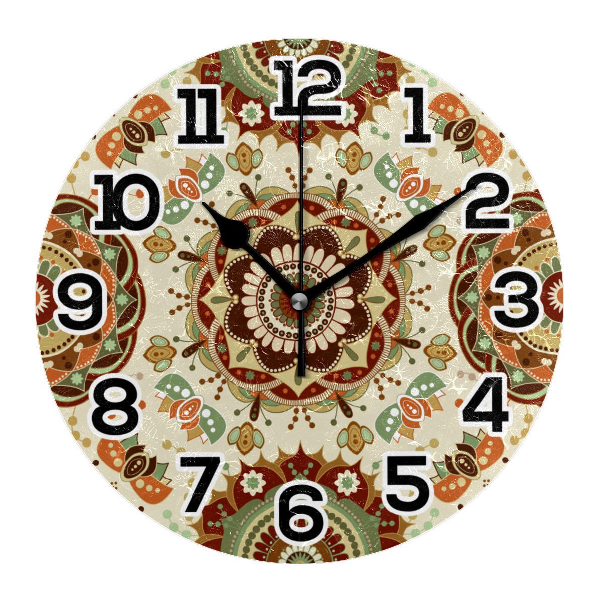 Retro Trippy Mandala Floral Clock Wall Decor Acrylic Decorative Round Battery Operated Wall Clocks for Home Bedroom Living Room Decor Silent Non Ticking