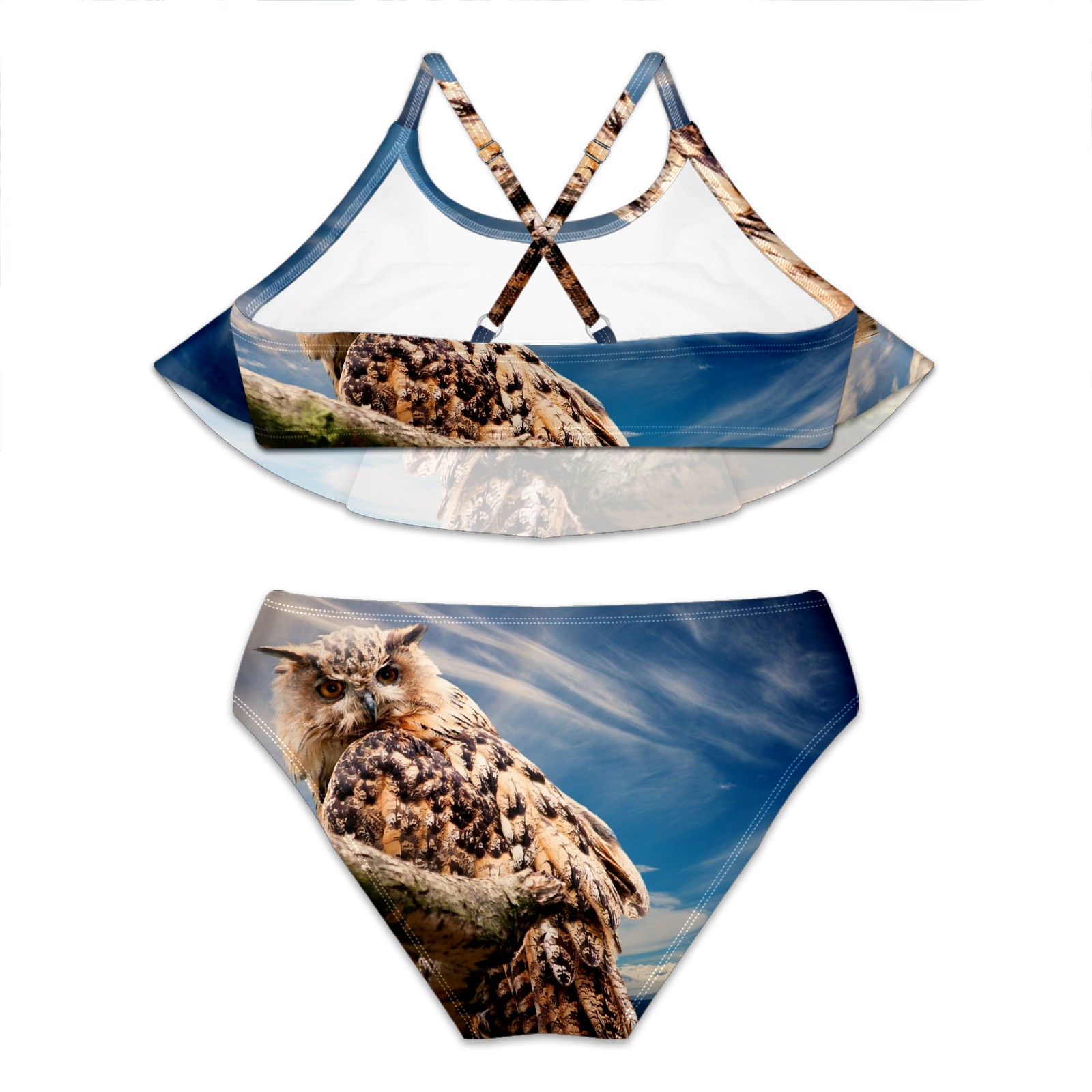 Swimsuits for Girls Two Pieces Bathing Suit Quick Dry Swimwear Animal Bird Owl Sky S
