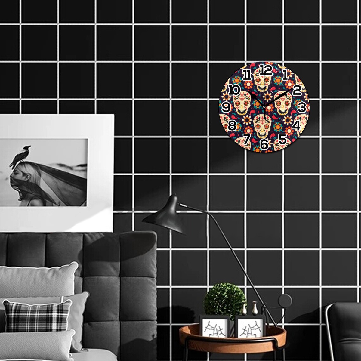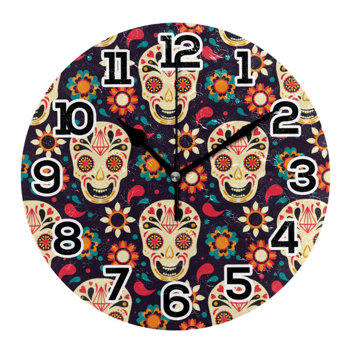 Retro Sugar Skull Floral Pattern Clock Wall Decor Acrylic Decorative Round Battery Operated Wall Clocks for Home Bedroom Living Room Decor Silent Non Ticking