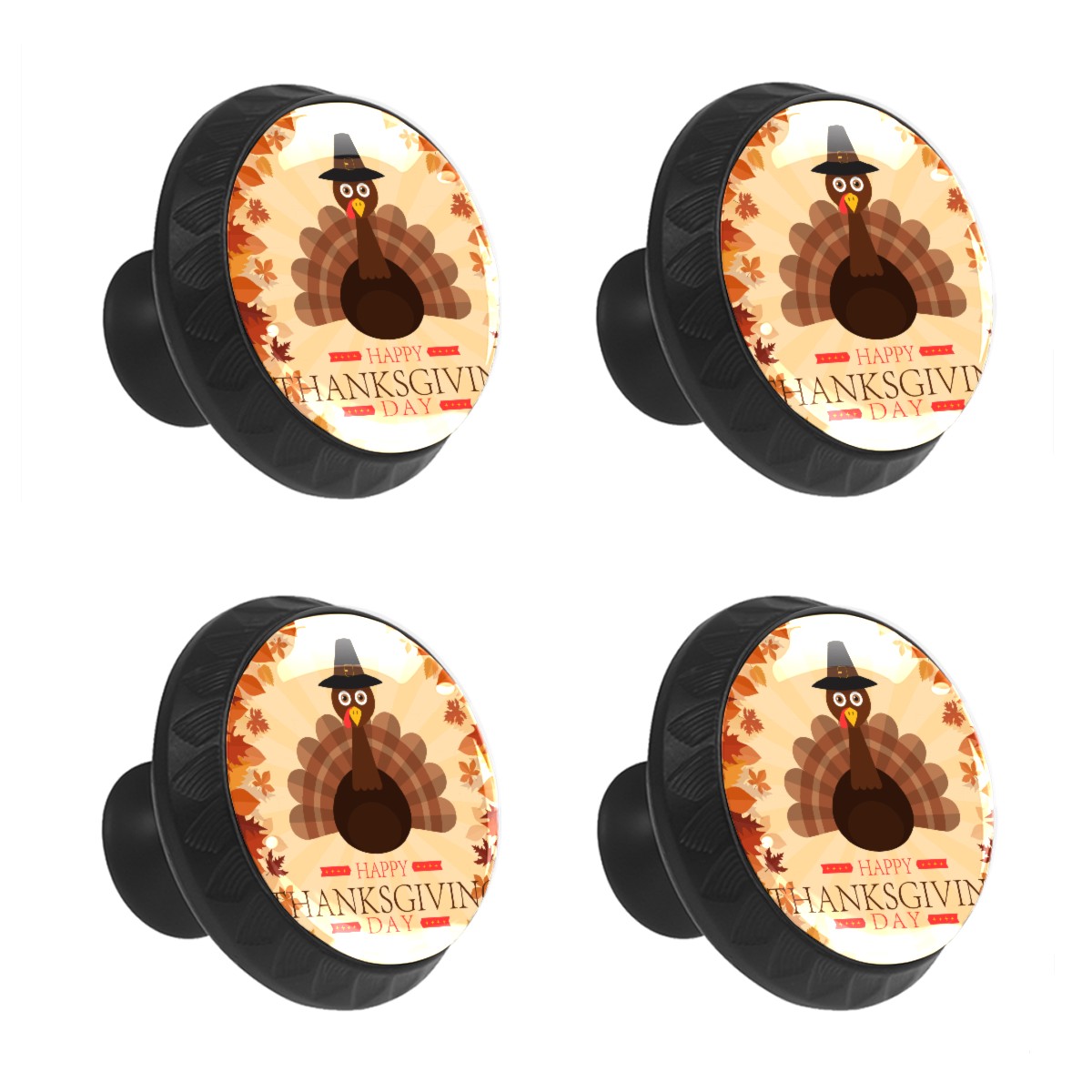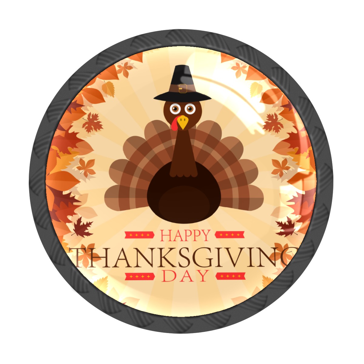 Cabinet Drawer Knobs Set of 4 Thanksgiving Day Turkey Maple Autumn Cabinet Furniture Knobs Drawer Pulls Handle Crystal Glass Round Cupboard Knobs with Screws for Cabinets Kitchen Dresser Wardrobe DIY