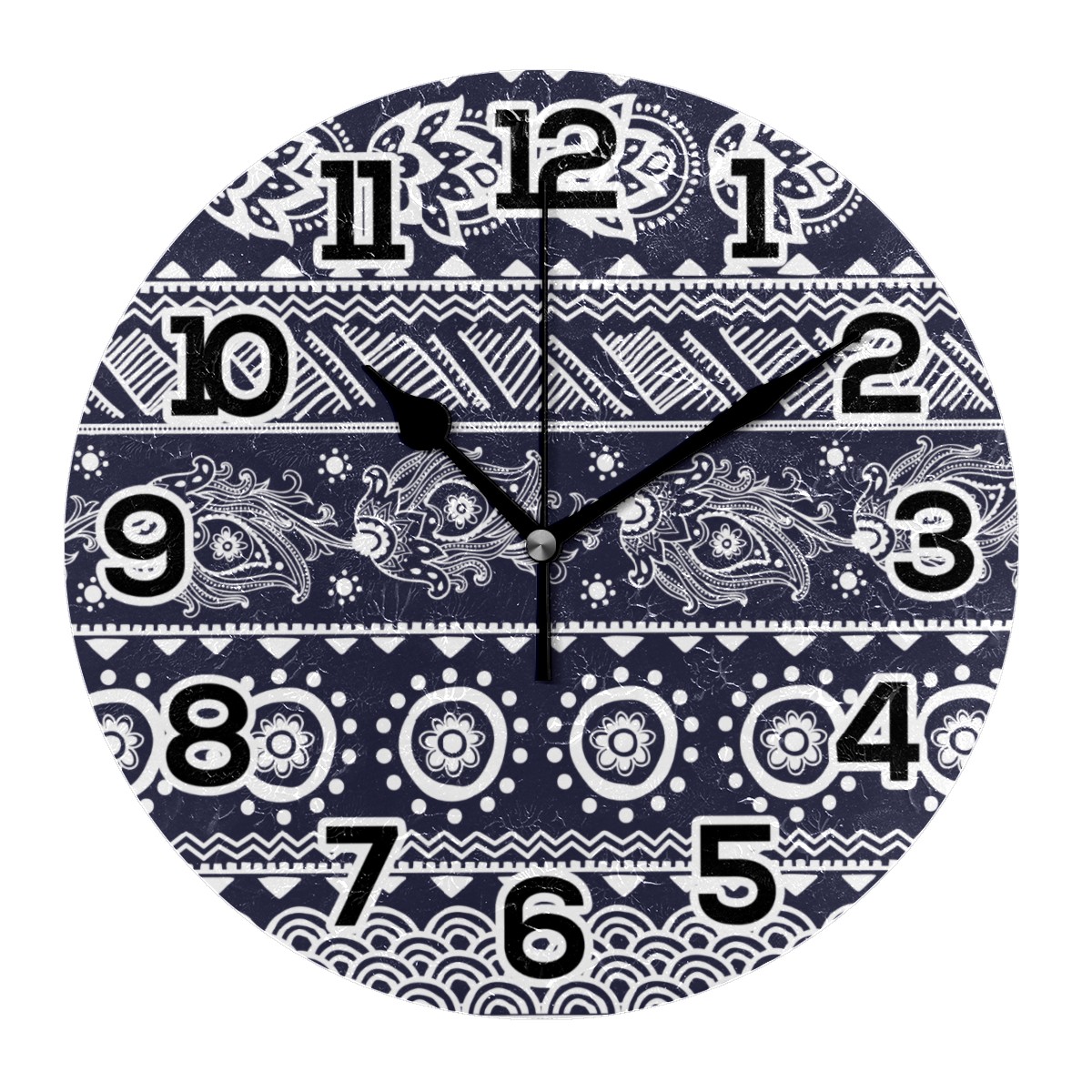 Retro Ethnic Boho Floral Clock Wall Decor Acrylic Decorative Round Battery Operated Wall Clocks for Home Bedroom Living Room Decor Silent Non Ticking