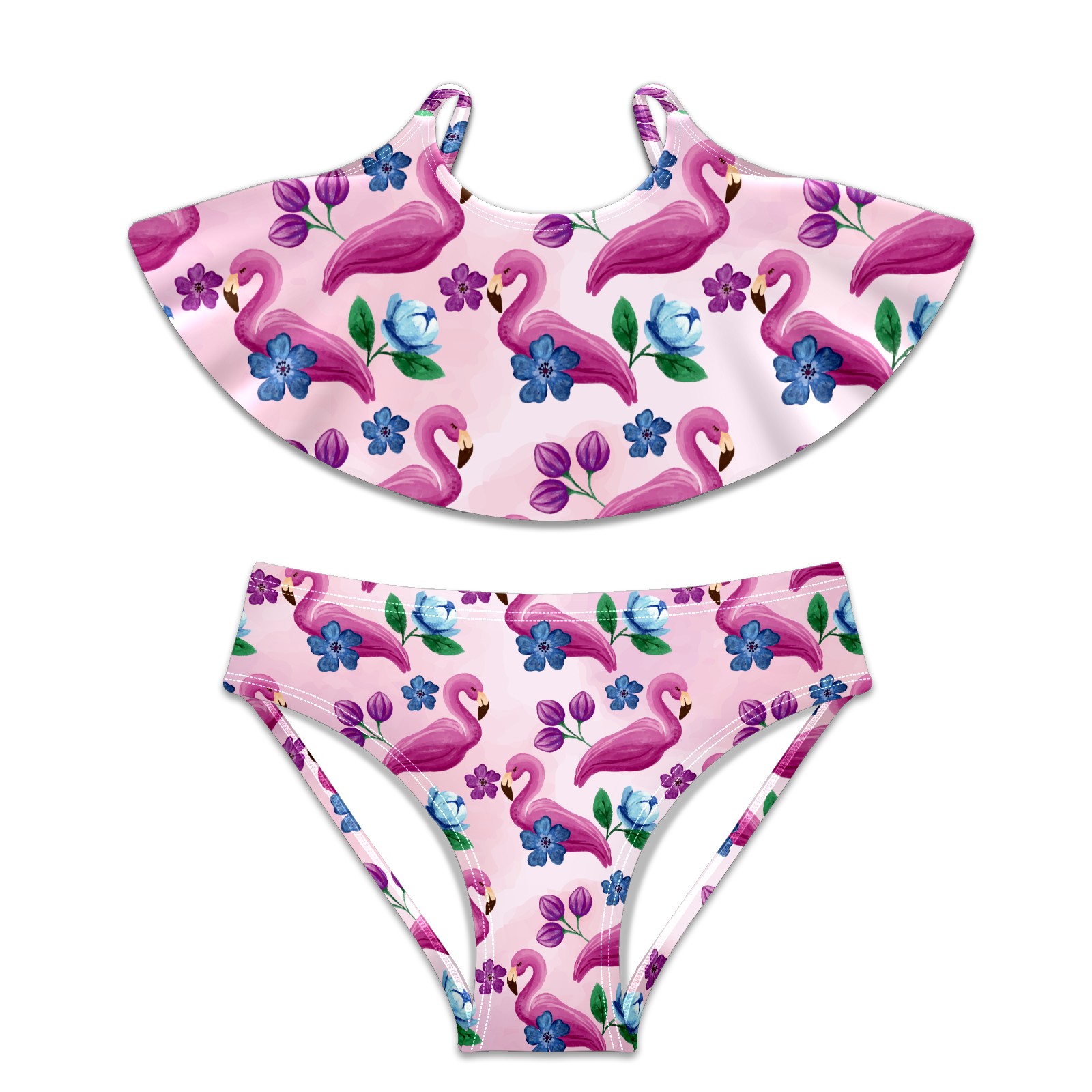 Swimsuits for Girls Two Pieces Bathing Suit Quick Dry Swimwear Watercolor Flamingos S