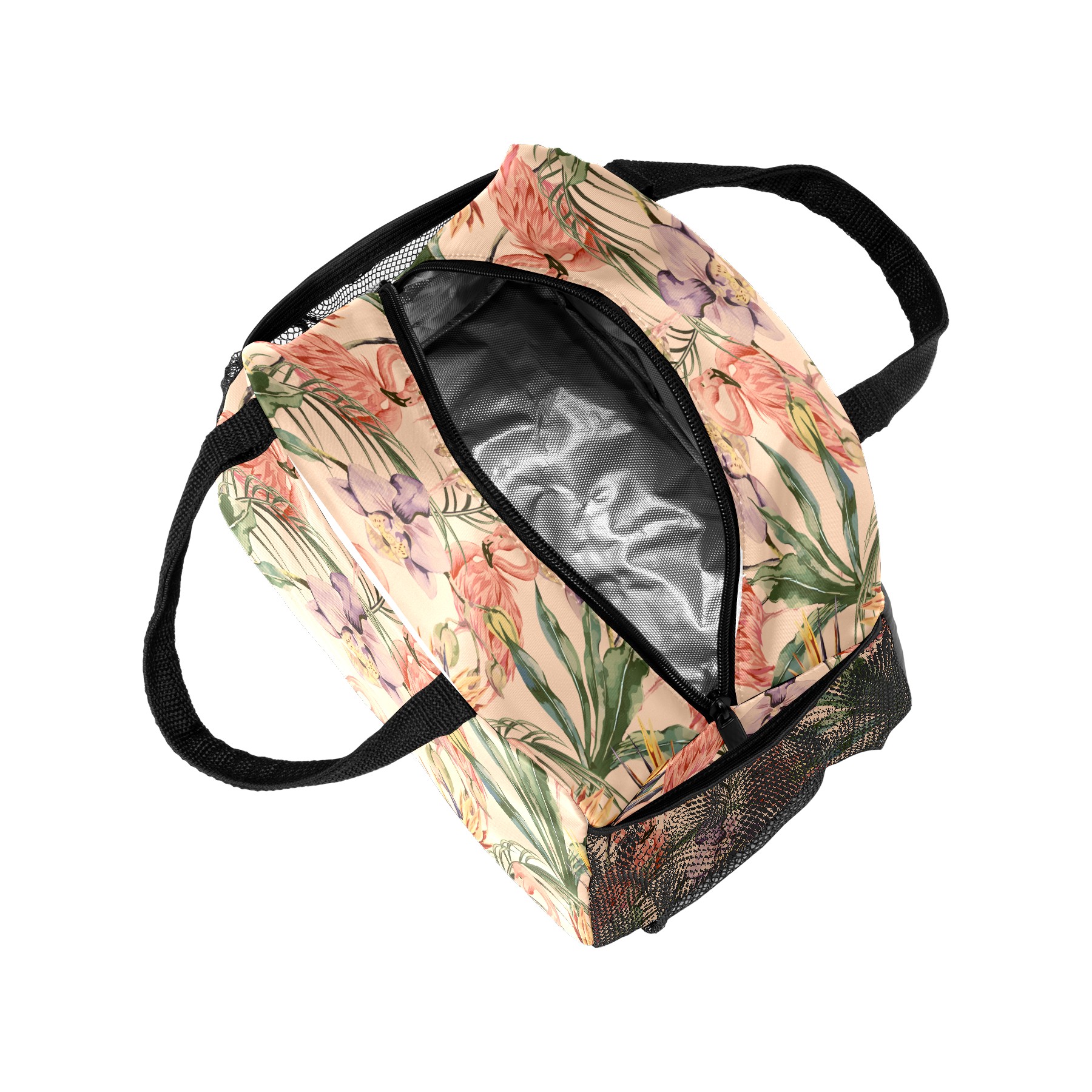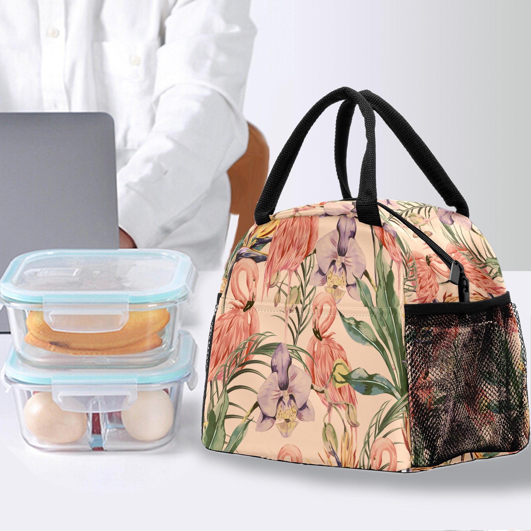 Lunch Bag for Women Men, Retro Tropical Flamingo Floral Insulated Reusable Lunch Box Thermal Cooler Tote Bag for Work Picnic Hiking Travel Beach