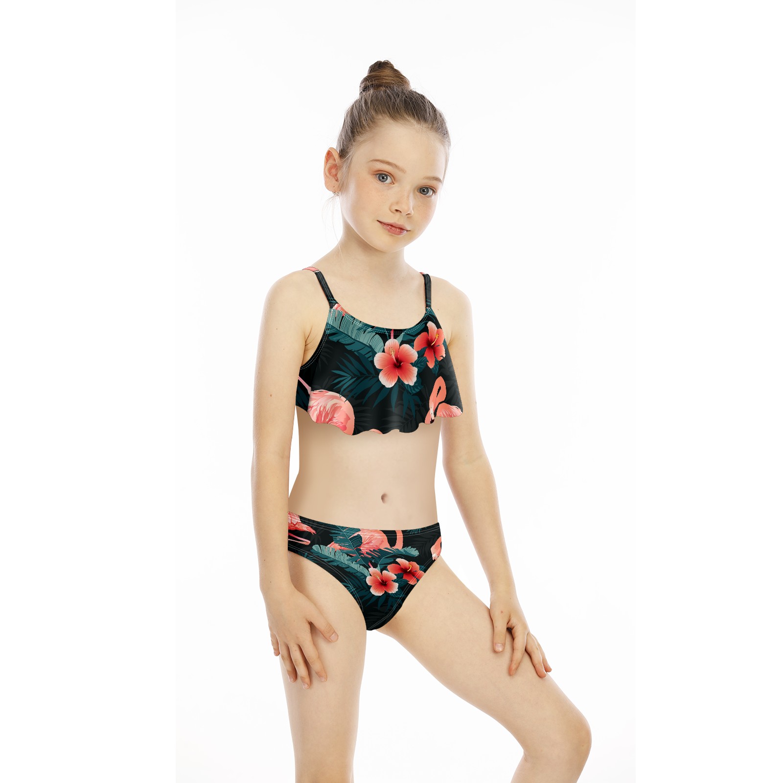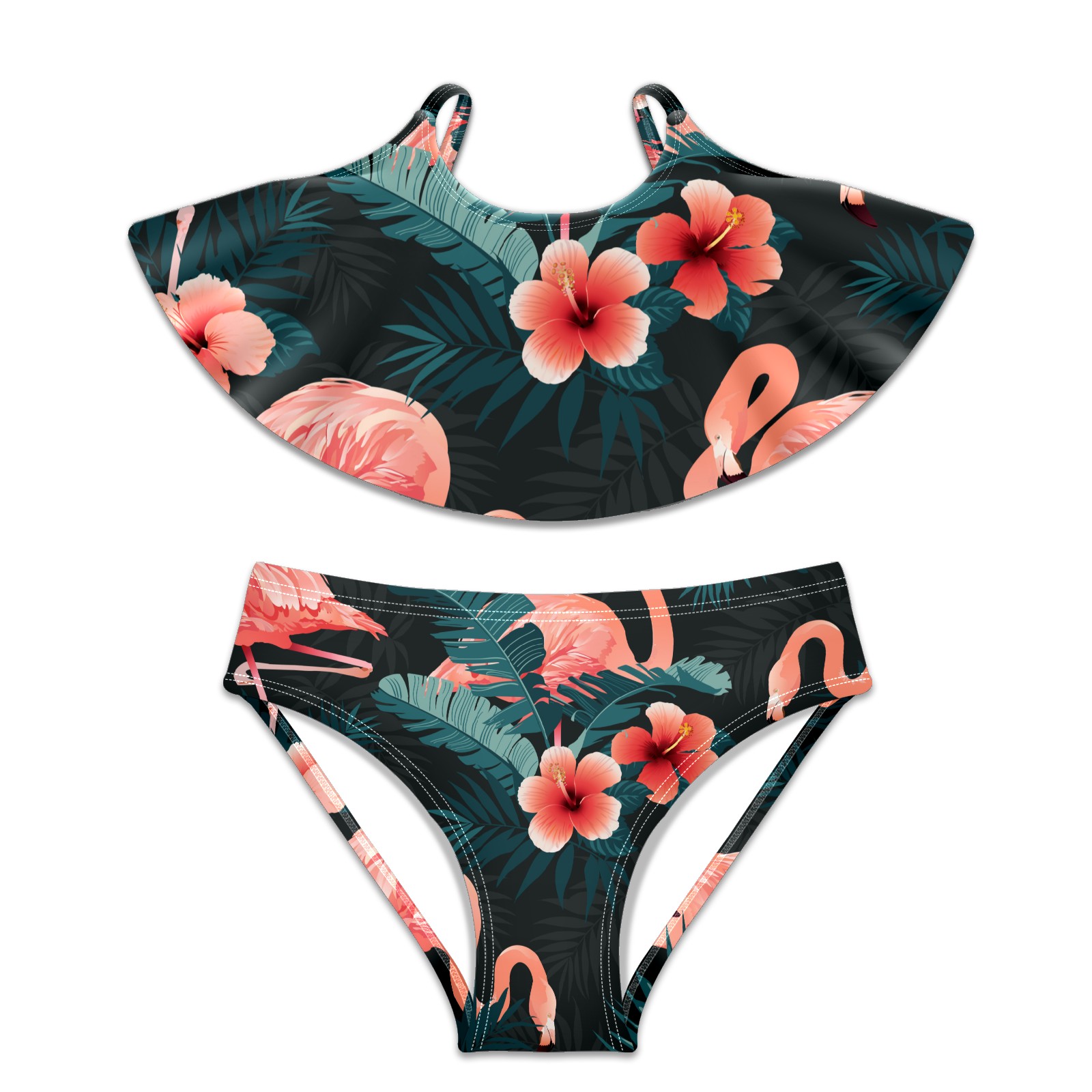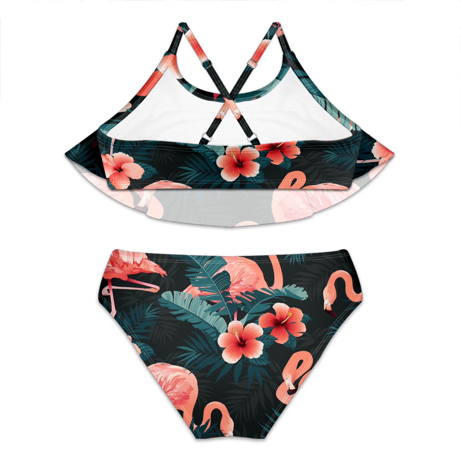 Swimsuits for Girls Two Pieces Bathing Suit Quick Dry Swimwear Vintage Tropical Flamingos Plants S