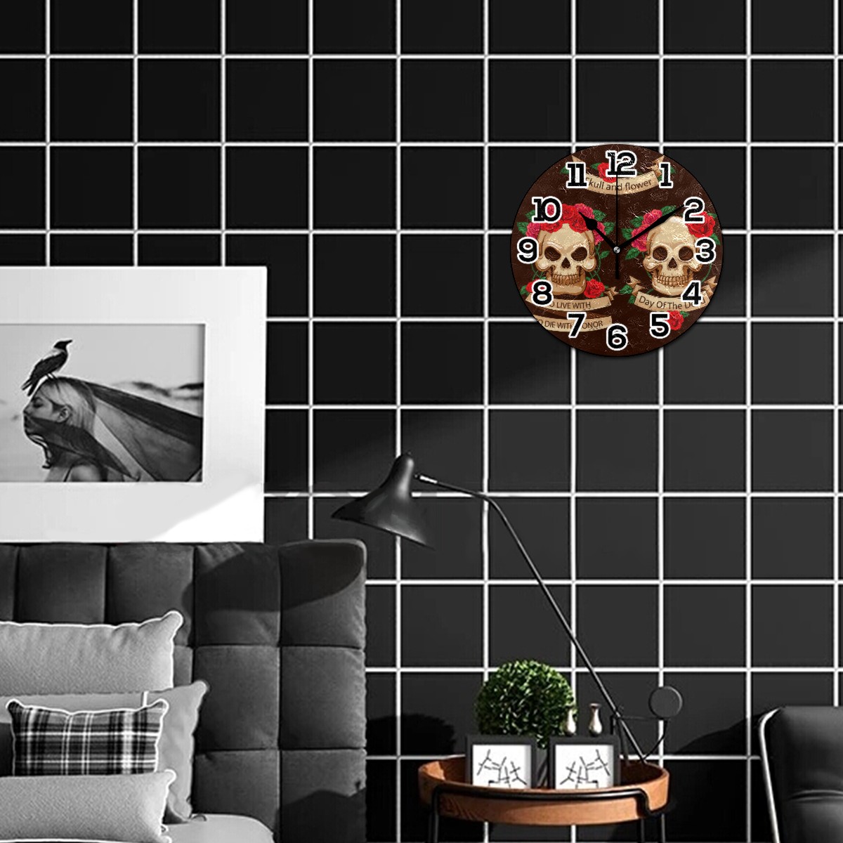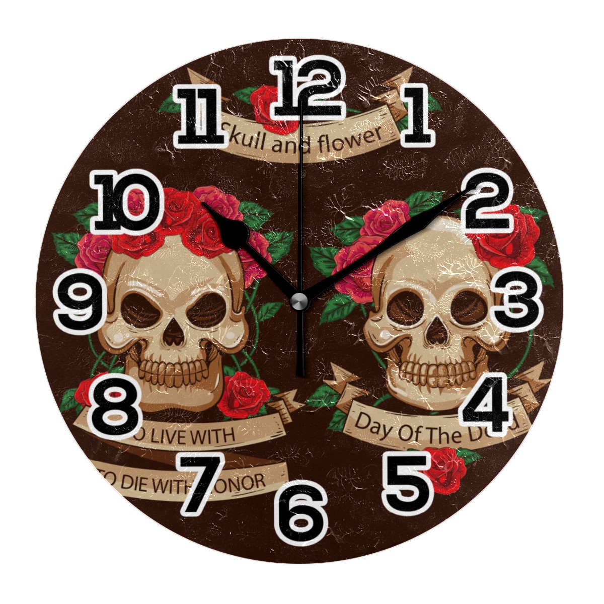 Mexico Day Of The Dead Sugar Skull Flower Clock Wall Decor Acrylic Decorative Round Battery Operated Wall Clocks for Home Bedroom Living Room Decor Silent Non Ticking
