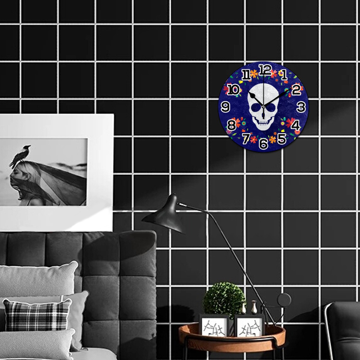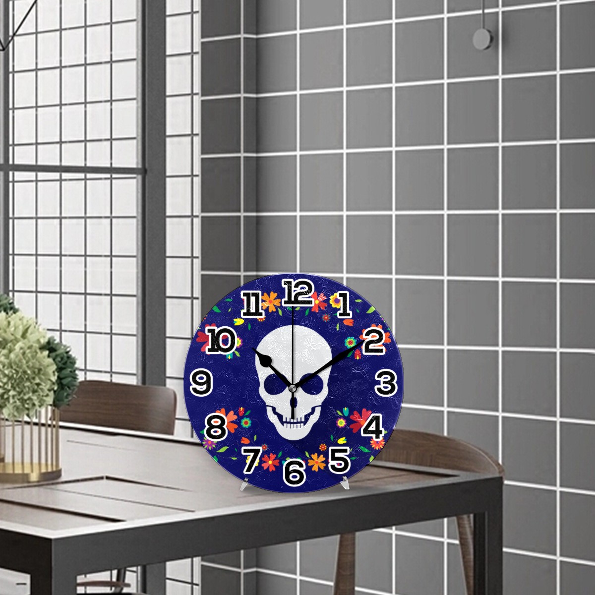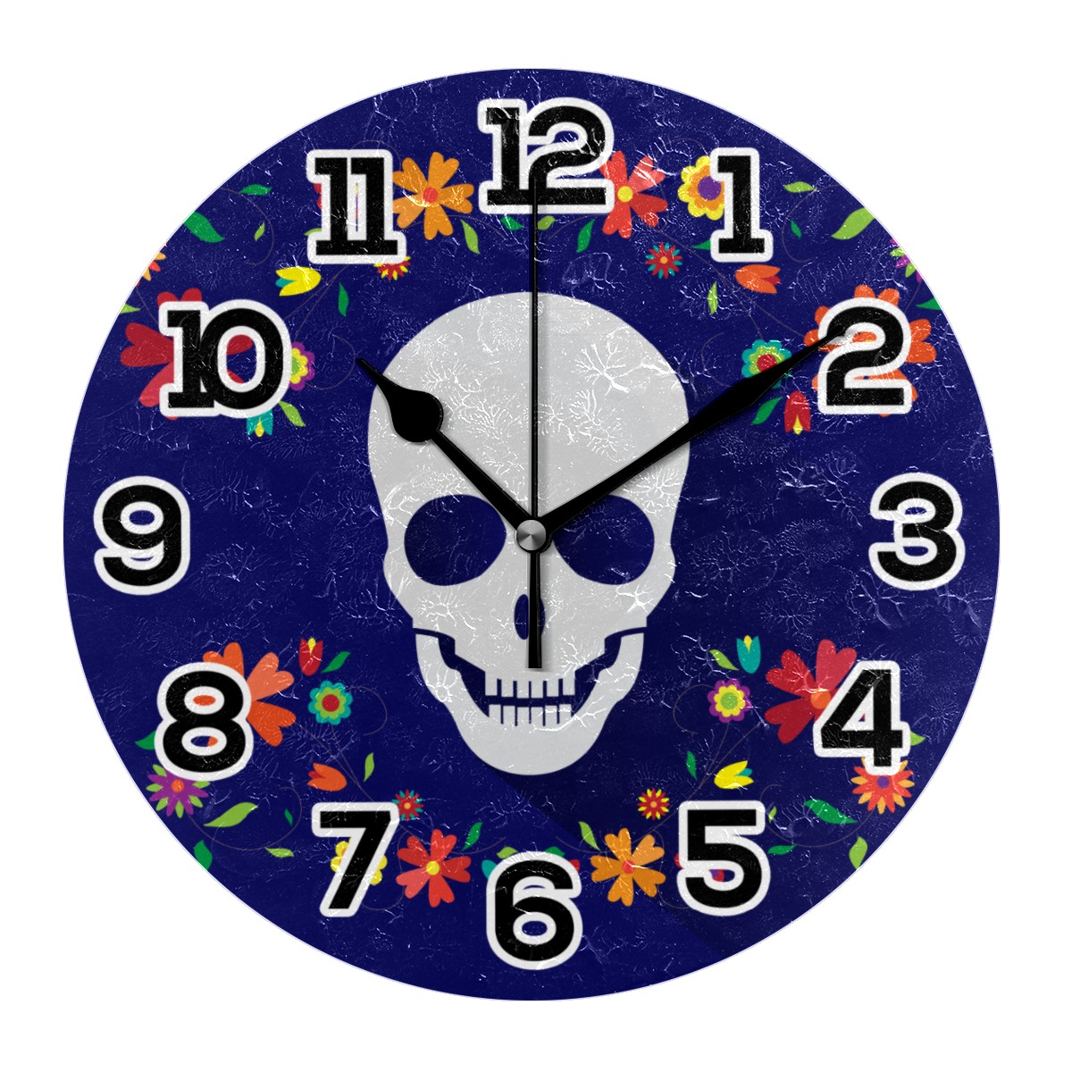 Mexico Day Of The Dead Sugar Skull Clock Wall Decor Acrylic Decorative Round Battery Operated Wall Clocks for Home Bedroom Living Room Decor Silent Non Ticking
