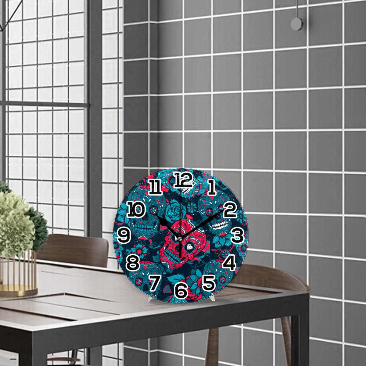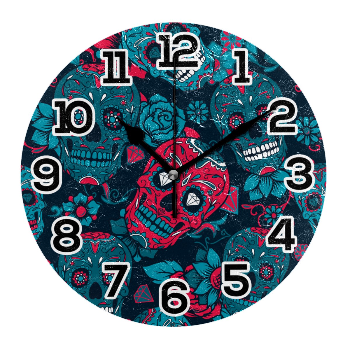 Day Of The Day Sugar Skull Rose Clock Wall Decor Acrylic Decorative Round Battery Operated Wall Clocks for Home Bedroom Living Room Decor Silent Non Ticking