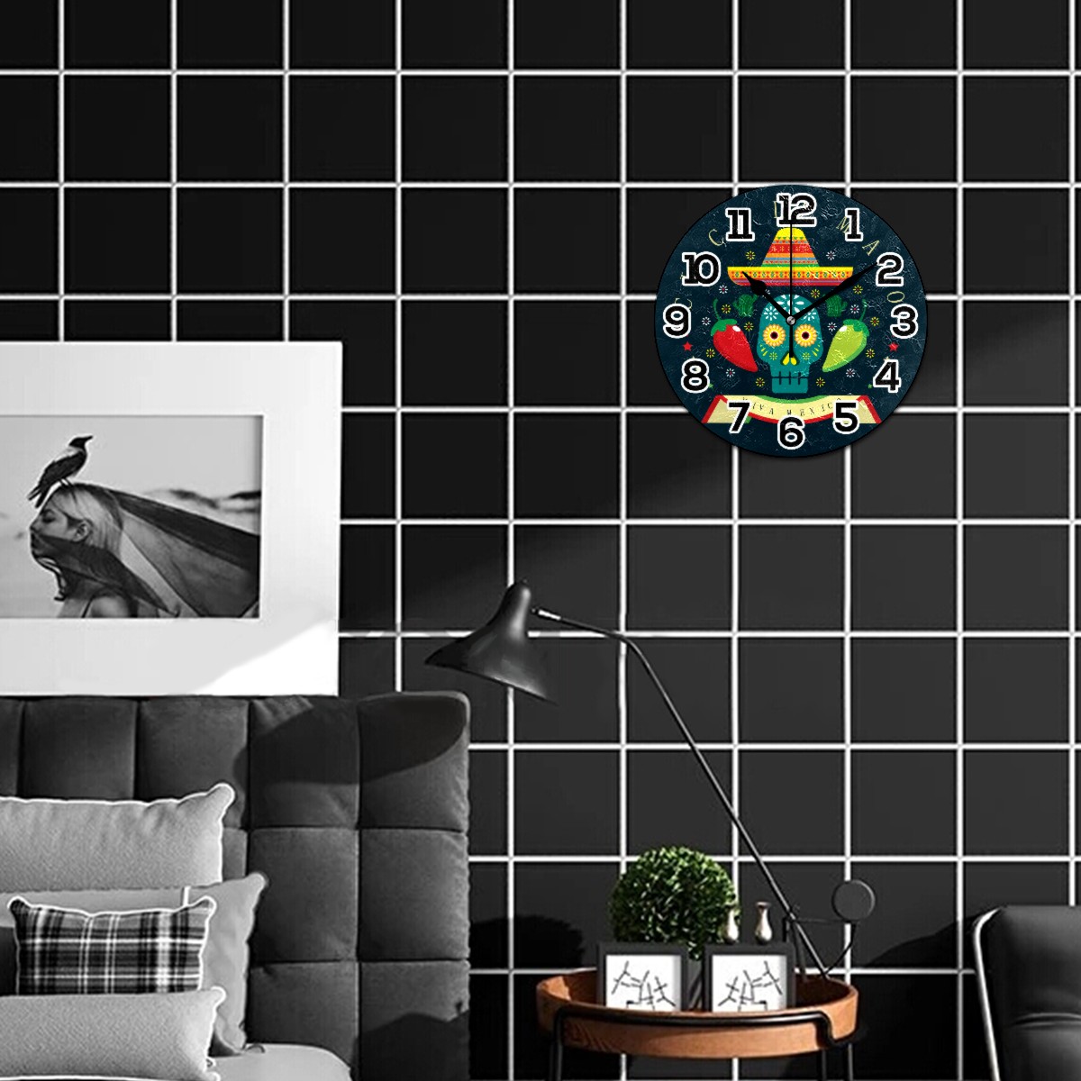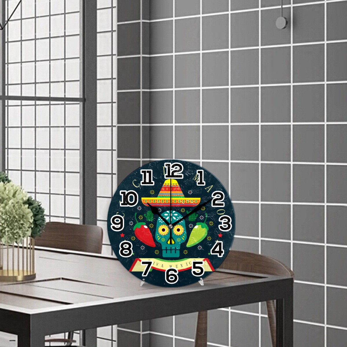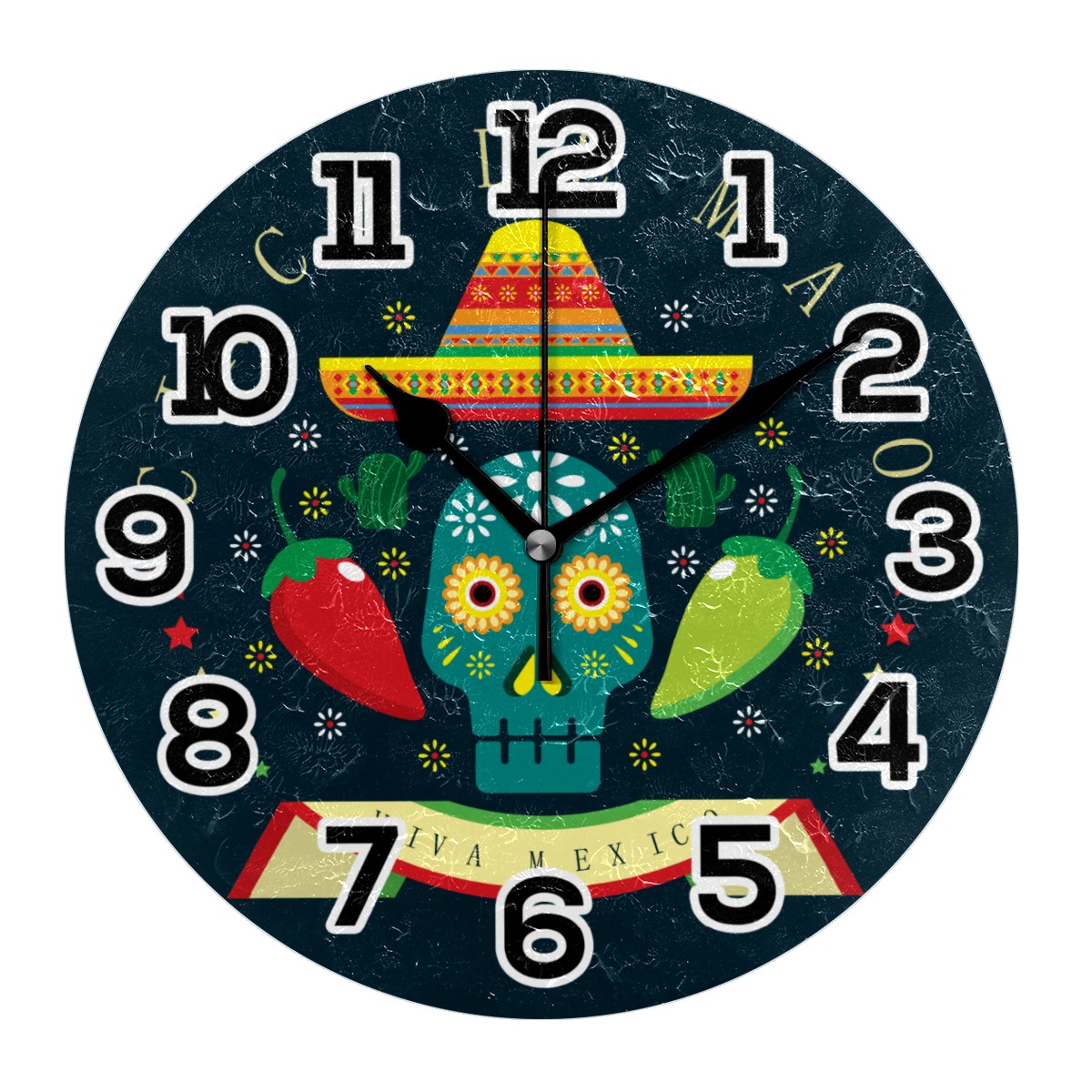 Mexico Day Of The Dead Sugar Skull Cacti Clock Wall Decor Acrylic Decorative Round Battery Operated Wall Clocks for Home Bedroom Living Room Decor Silent Non Ticking