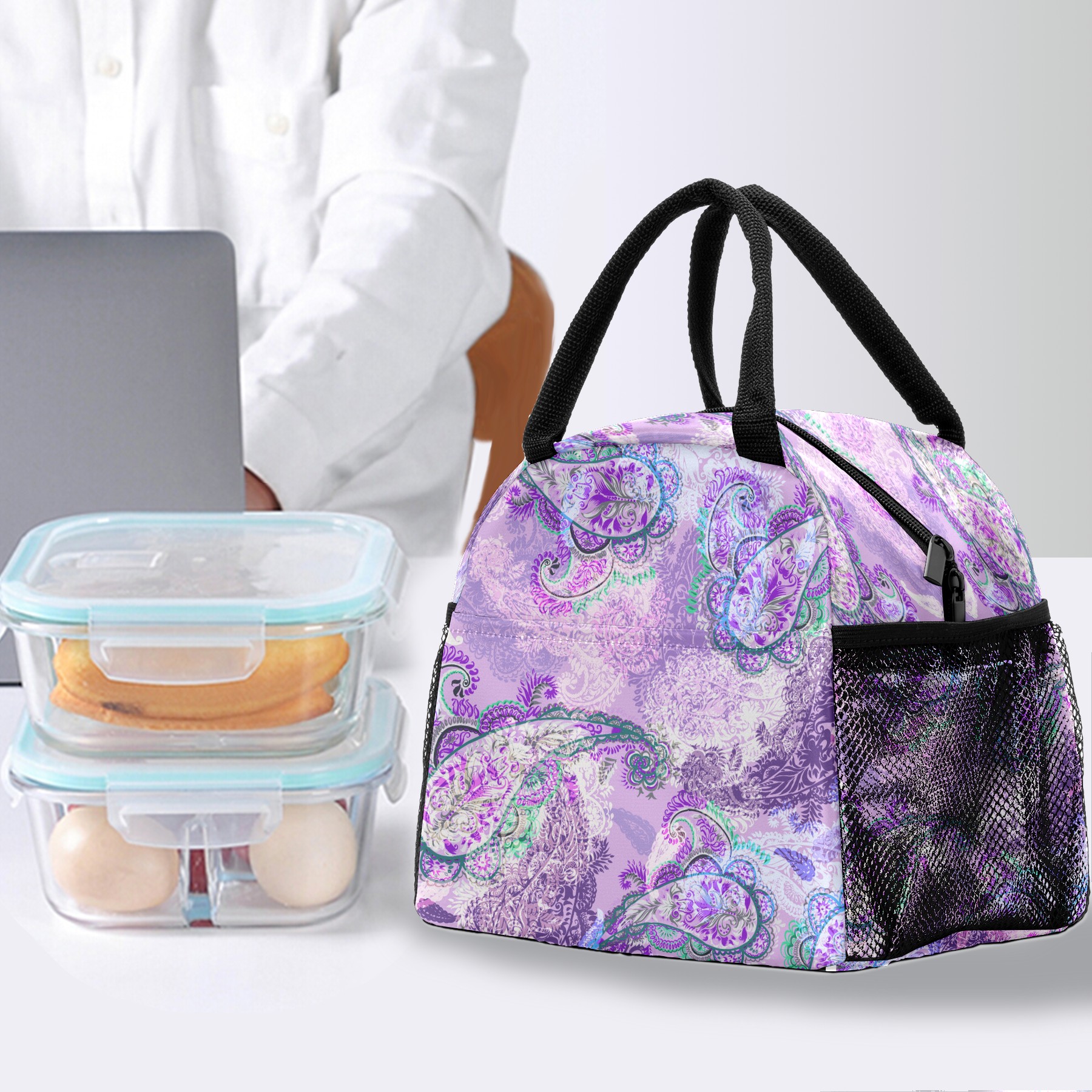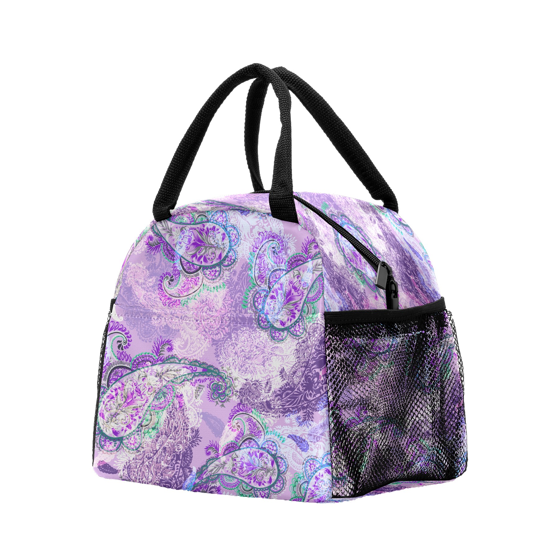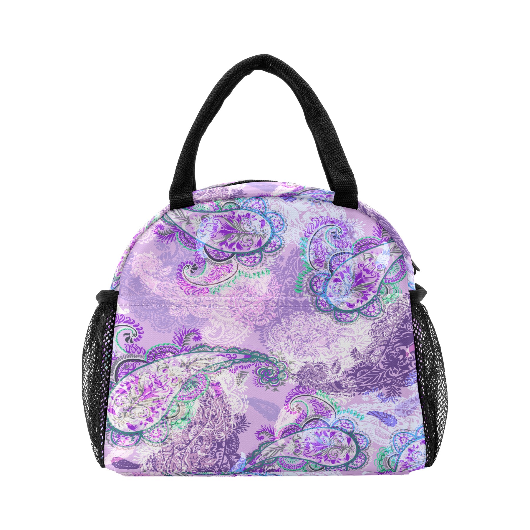 Lunch Bag for Women Men, Retro Paisley Purple Floral Pattern Insulated Reusable Lunch Box Thermal Cooler Tote Bag for Work Picnic Hiking Travel Beach