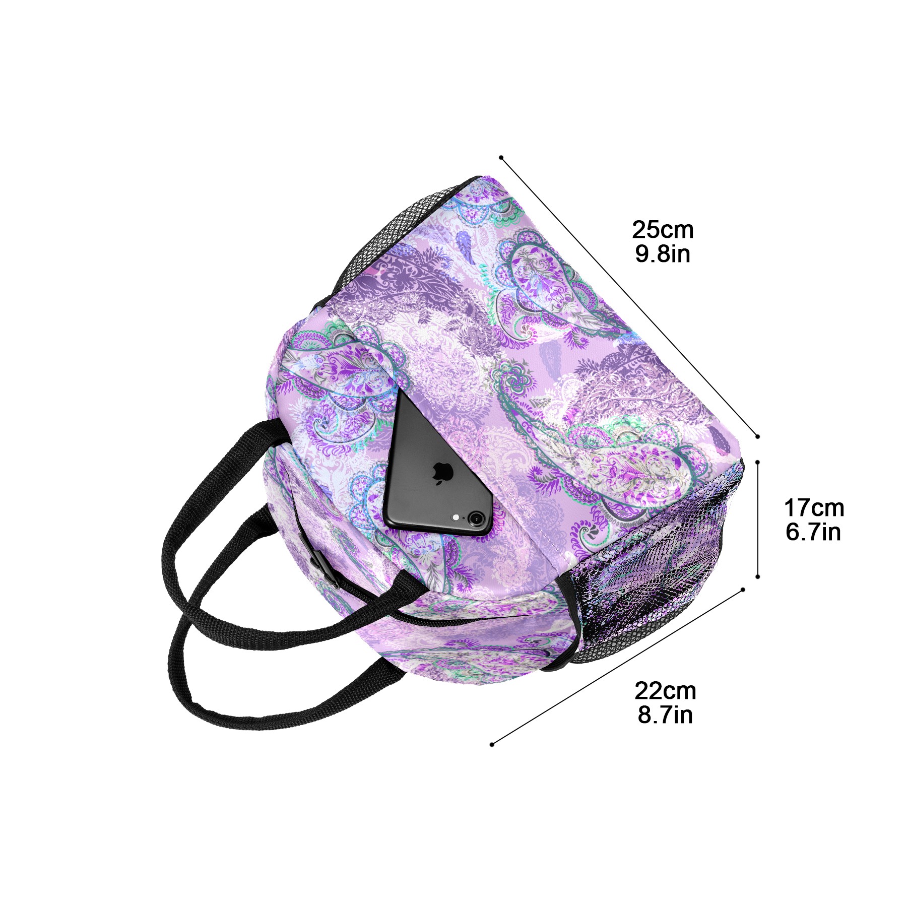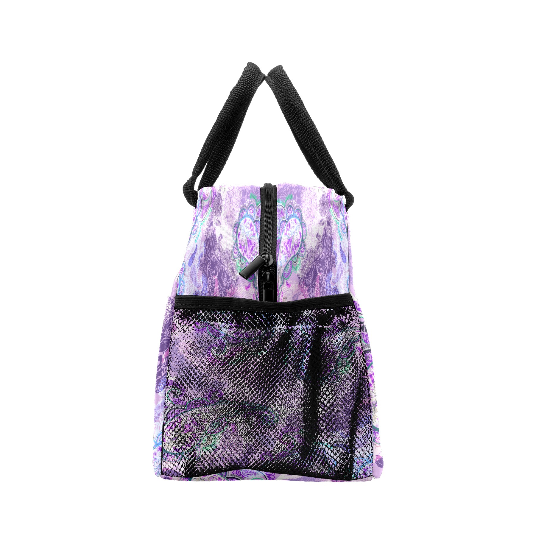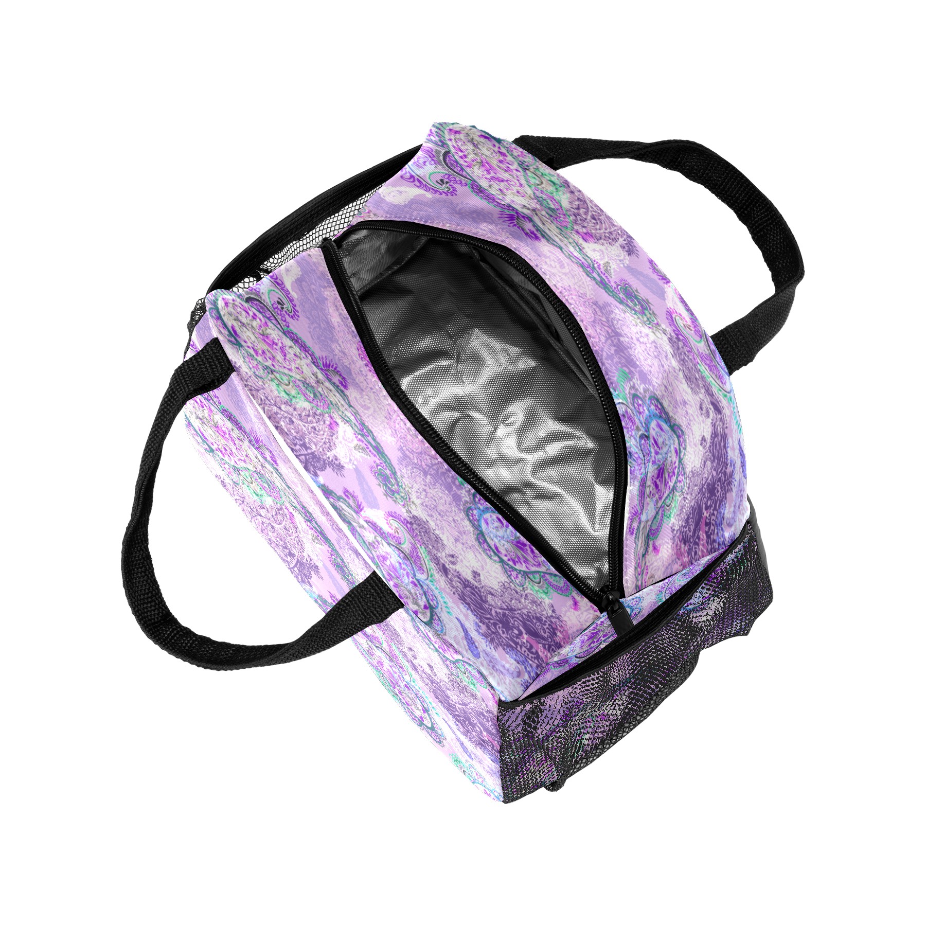 Lunch Bag for Women Men, Retro Paisley Purple Floral Pattern Insulated Reusable Lunch Box Thermal Cooler Tote Bag for Work Picnic Hiking Travel Beach