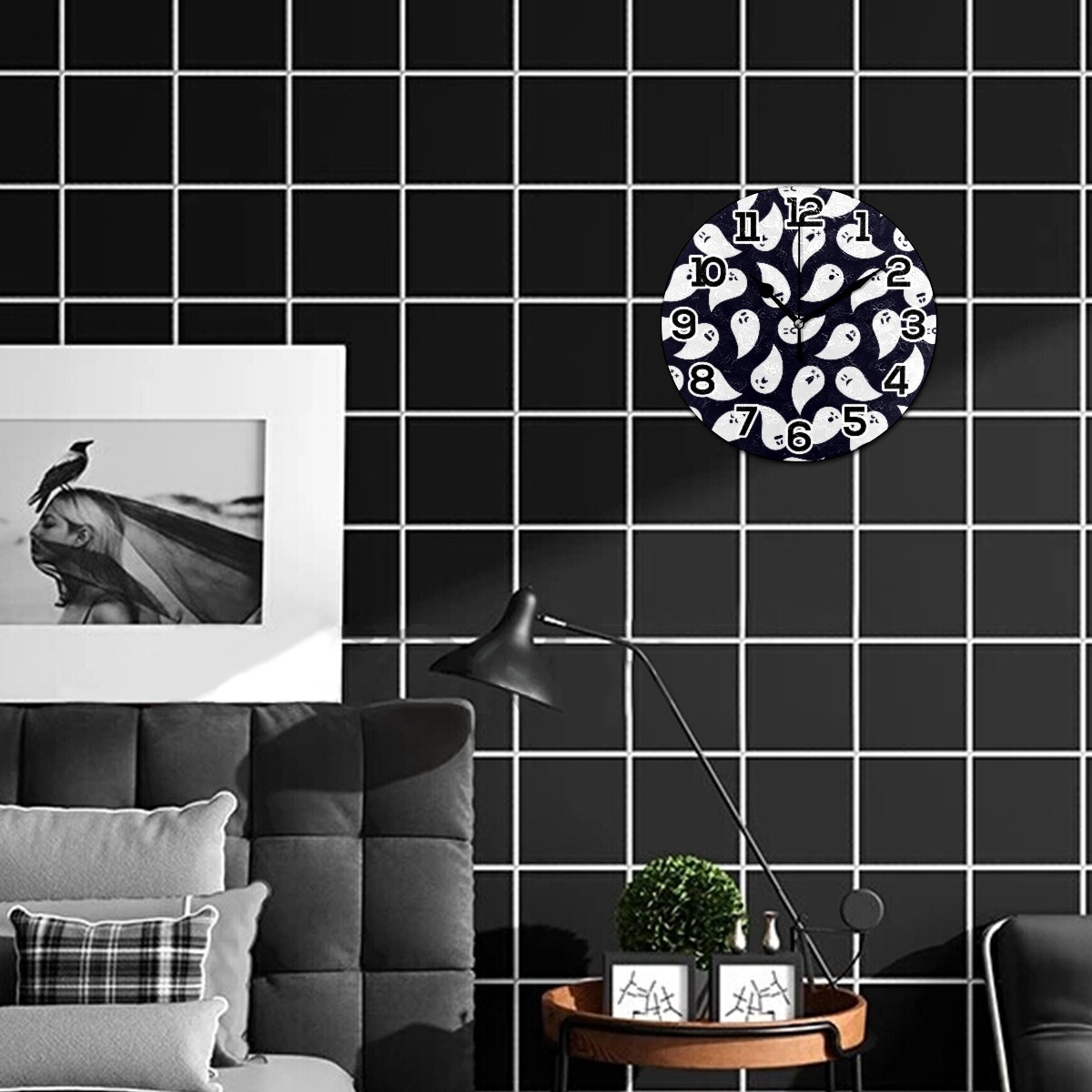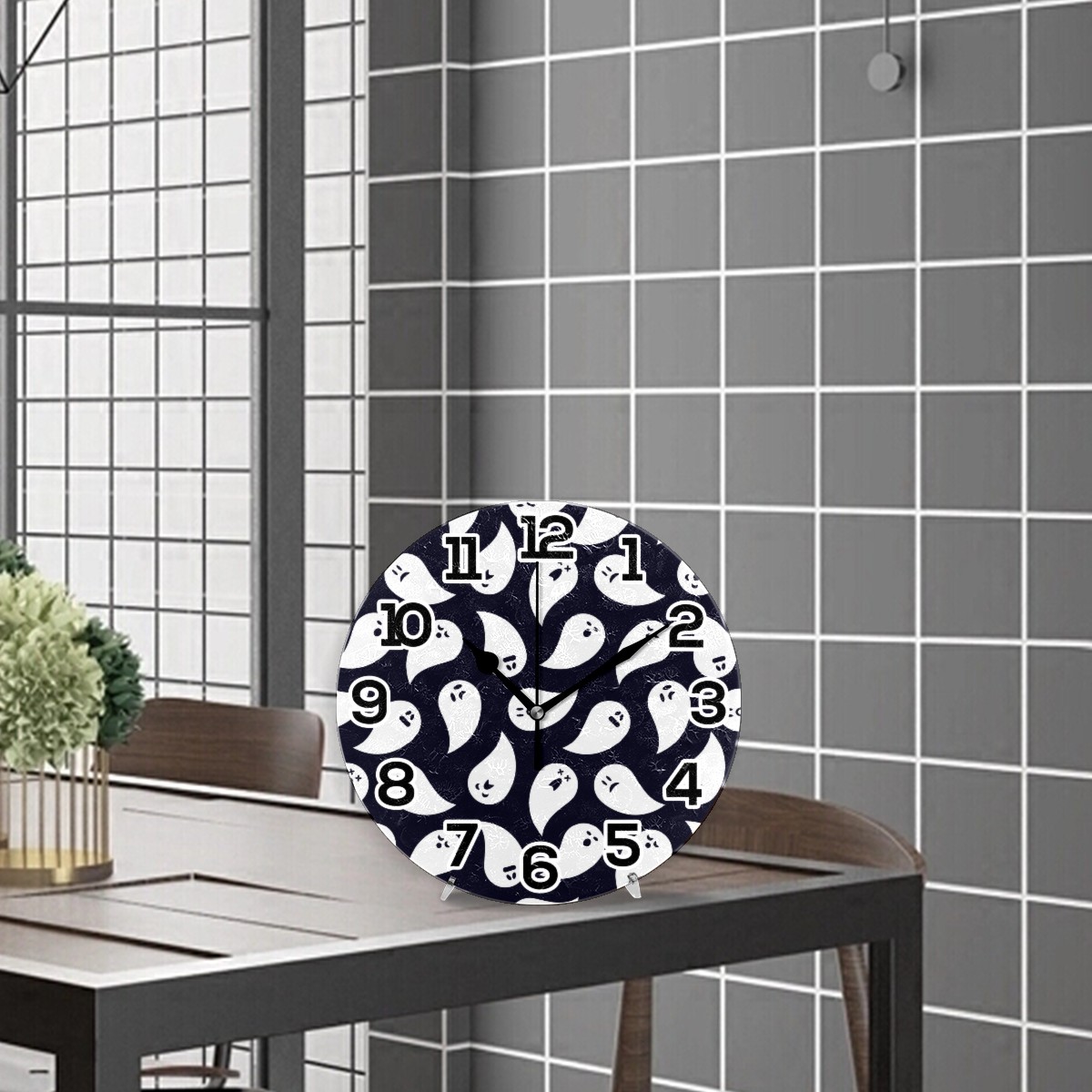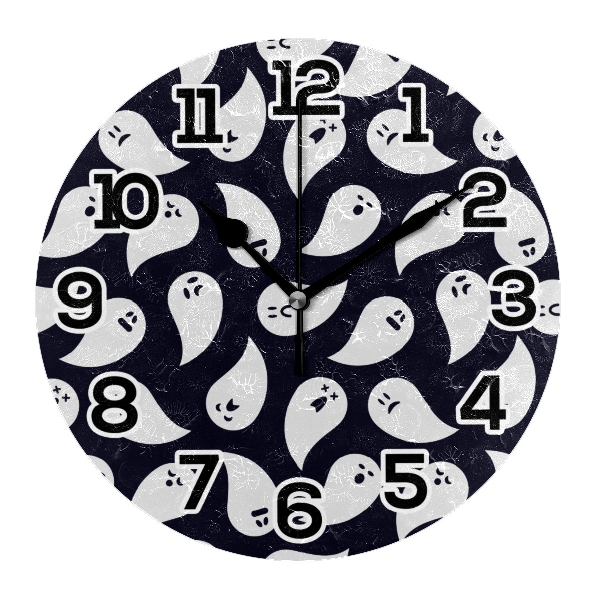 Halloween Cute Ghost Pattern Clock Wall Decor Acrylic Decorative Round Battery Operated Wall Clocks for Home Bedroom Living Room Decor Silent Non Ticking