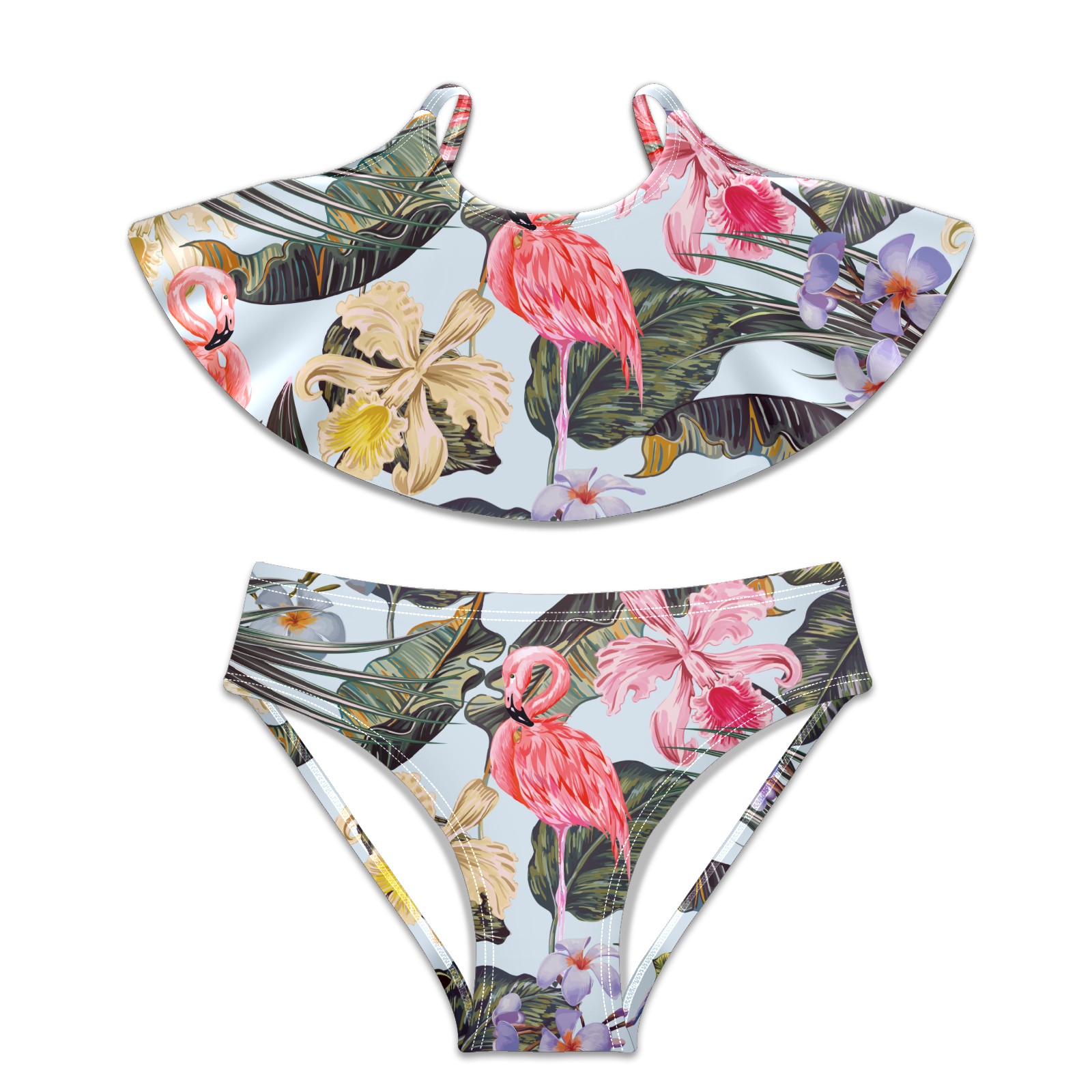 Swimsuits for Girls Two Pieces Bathing Suit Quick Dry Swimwear Tropical Summer Flamingos Bird S