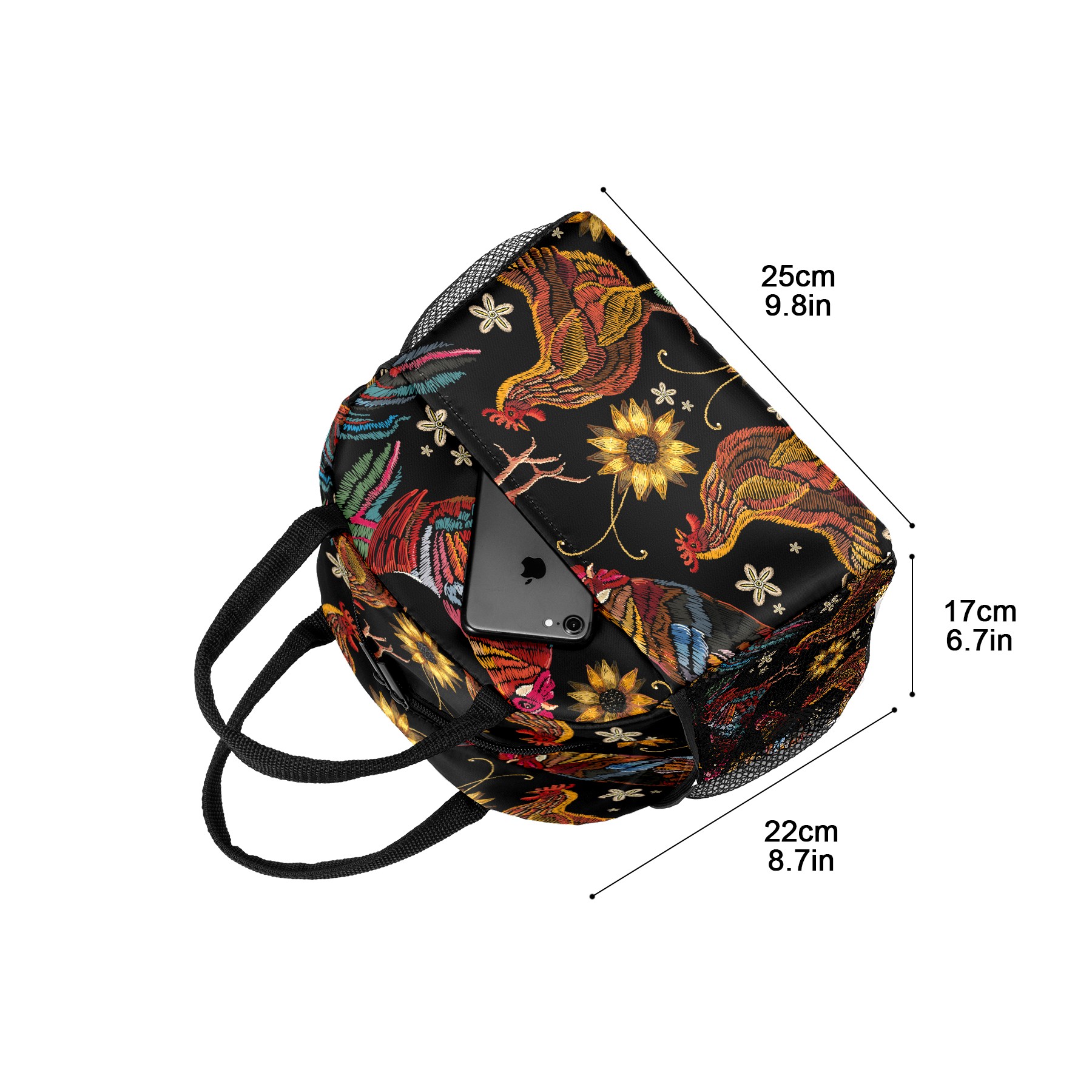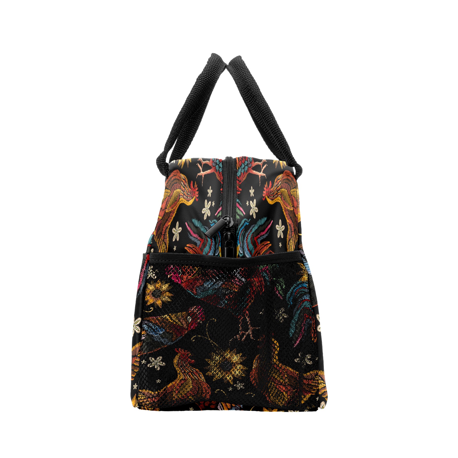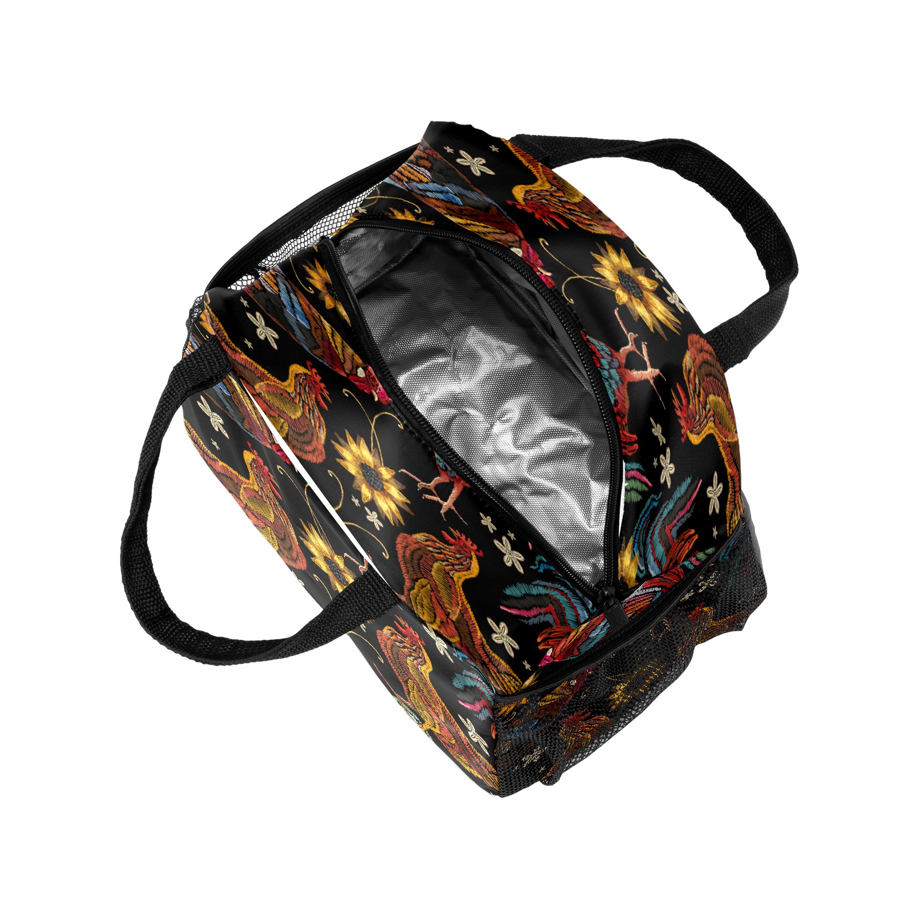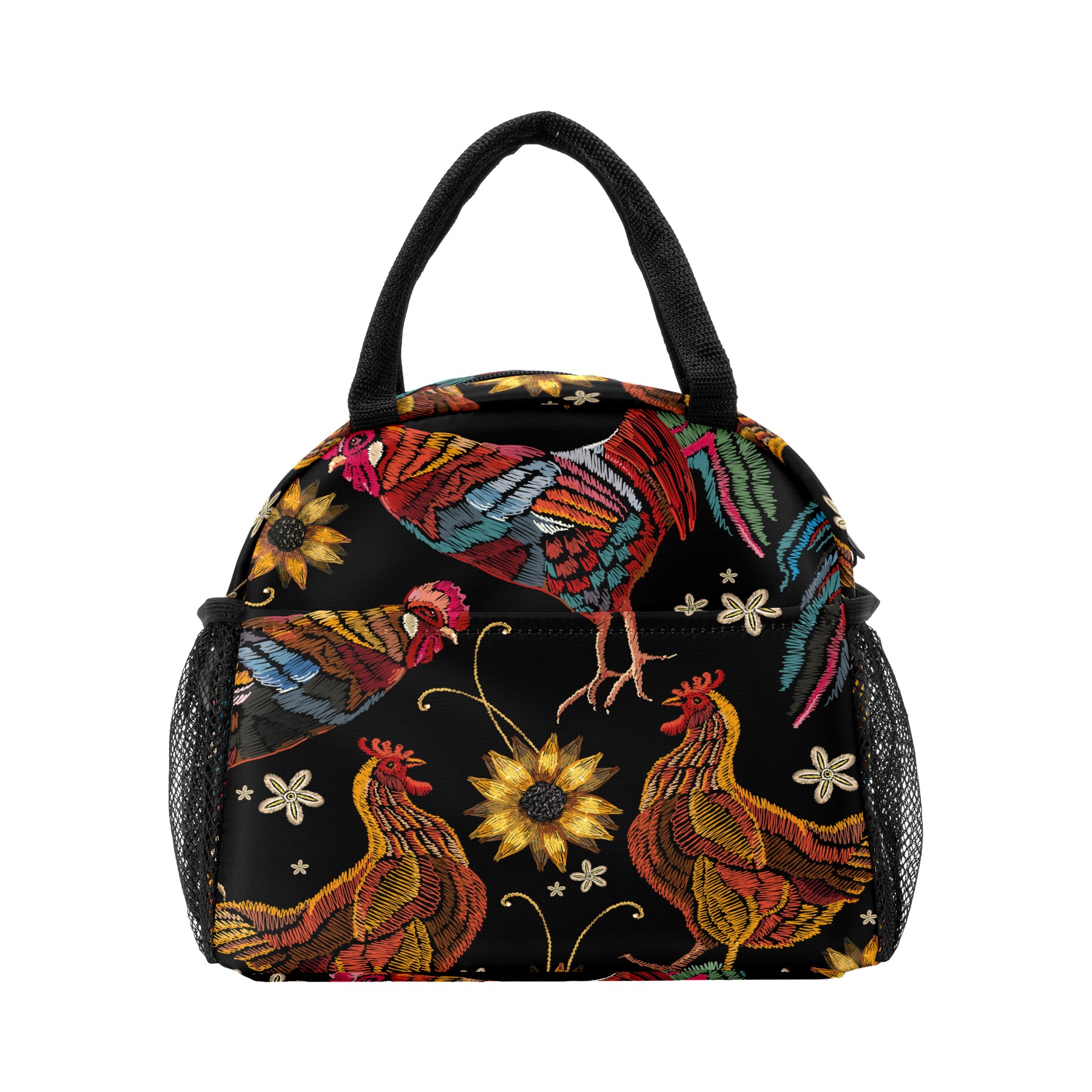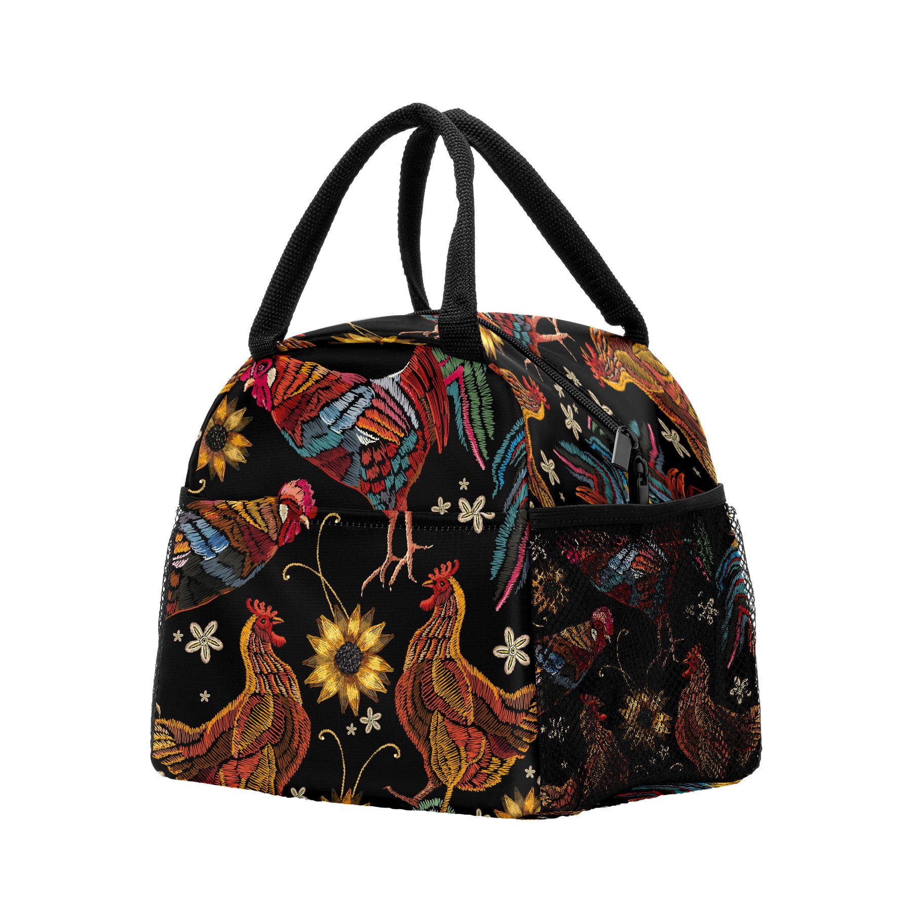 Lunch Bag for Women Men, Retro Colorful Rooster Sunfower Insulated Reusable Lunch Box Thermal Cooler Tote Bag for Work Picnic Hiking Travel Beach