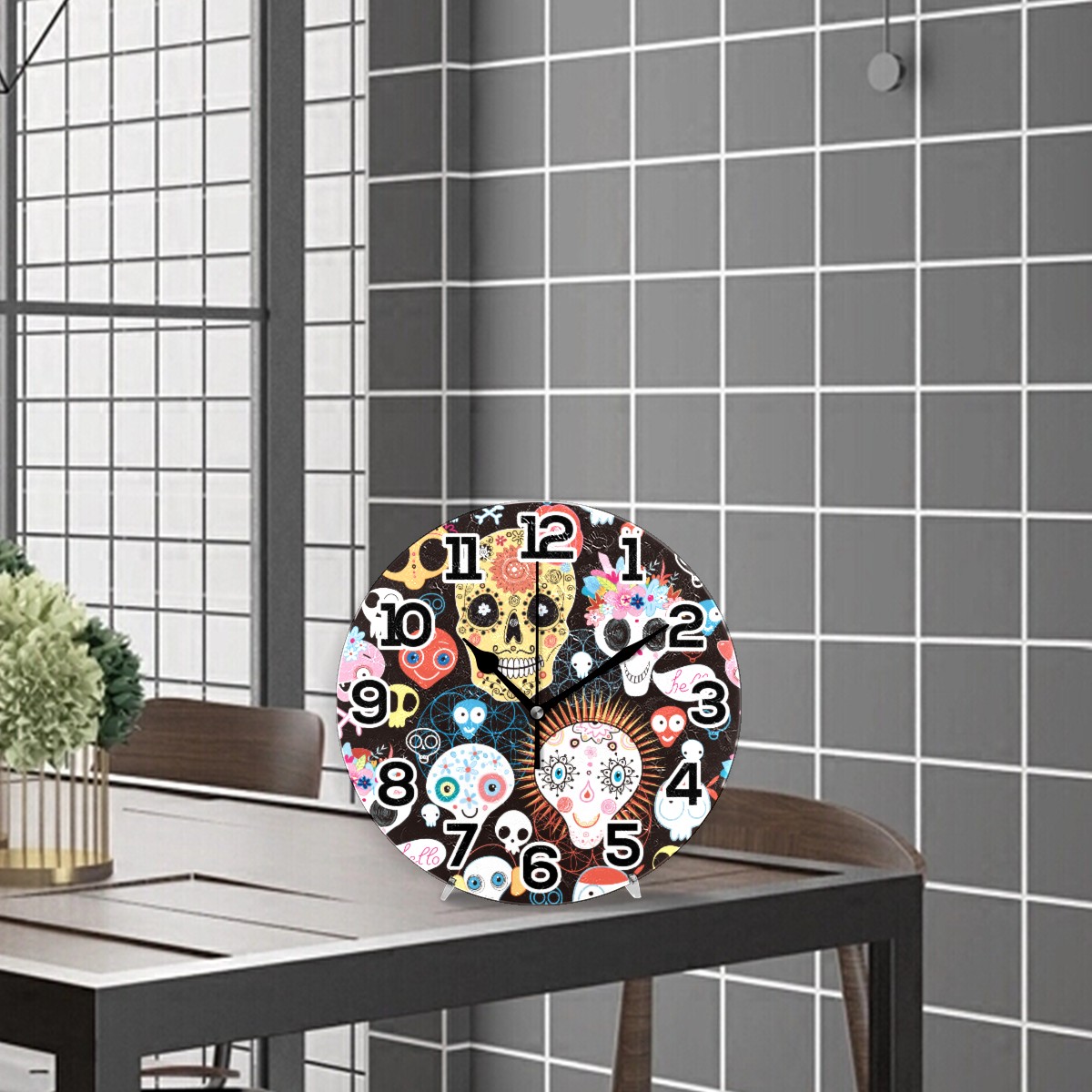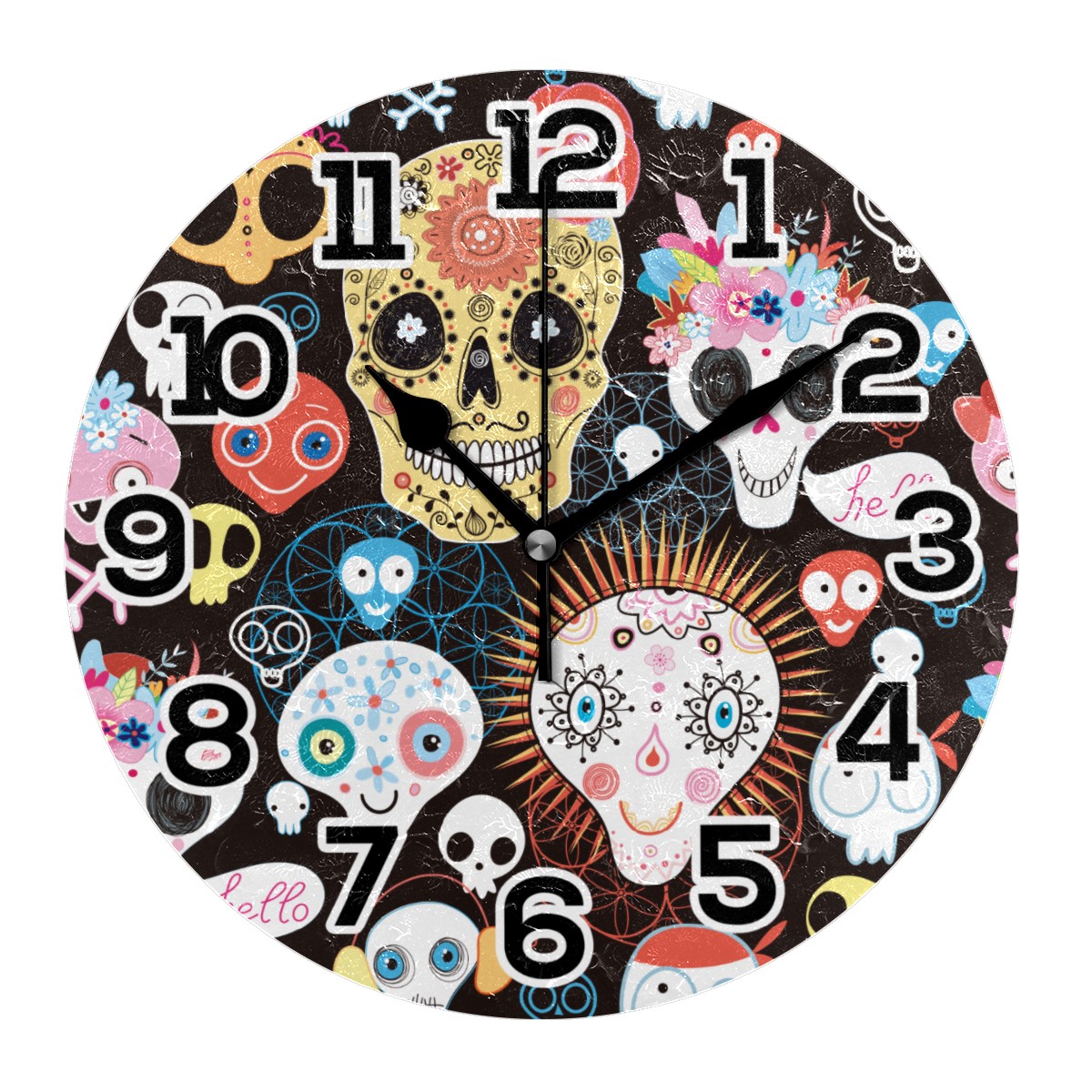 Day Of The Day Sugar Skull Flower Clock Wall Decor Acrylic Decorative Round Battery Operated Wall Clocks for Home Bedroom Living Room Decor Silent Non Ticking