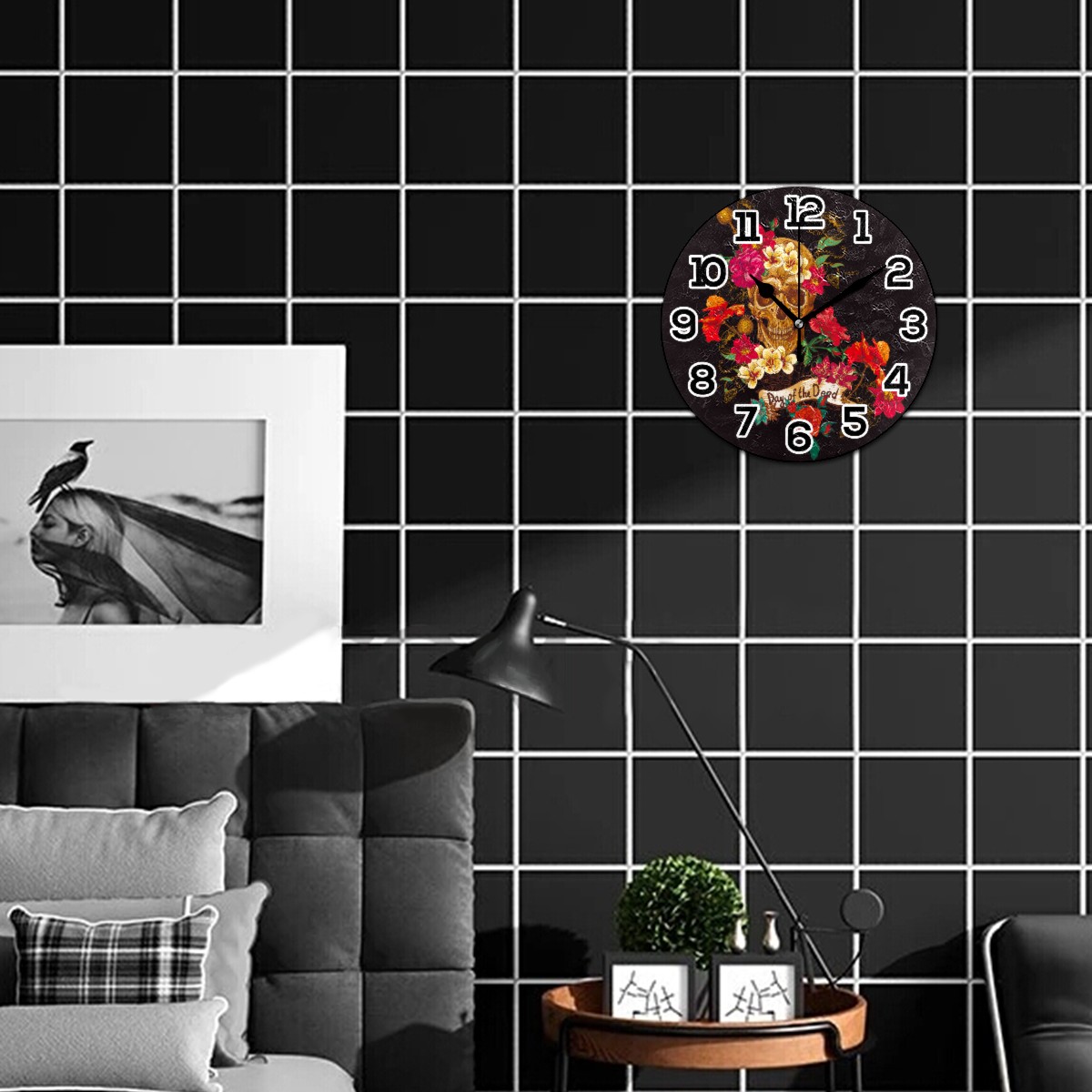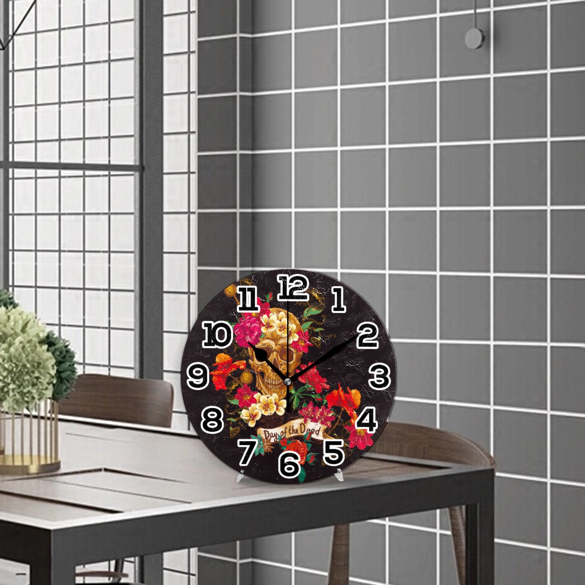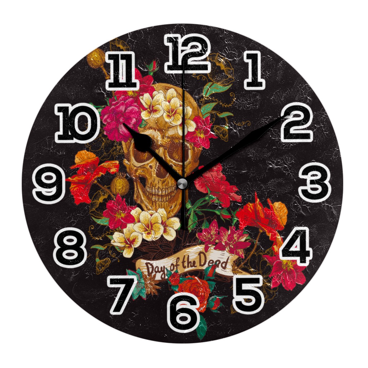 Day Of The Dead Sugar Skull Flower Clock Wall Decor Acrylic Decorative Round Battery Operated Wall Clocks for Home Bedroom Living Room Decor Silent Non Ticking