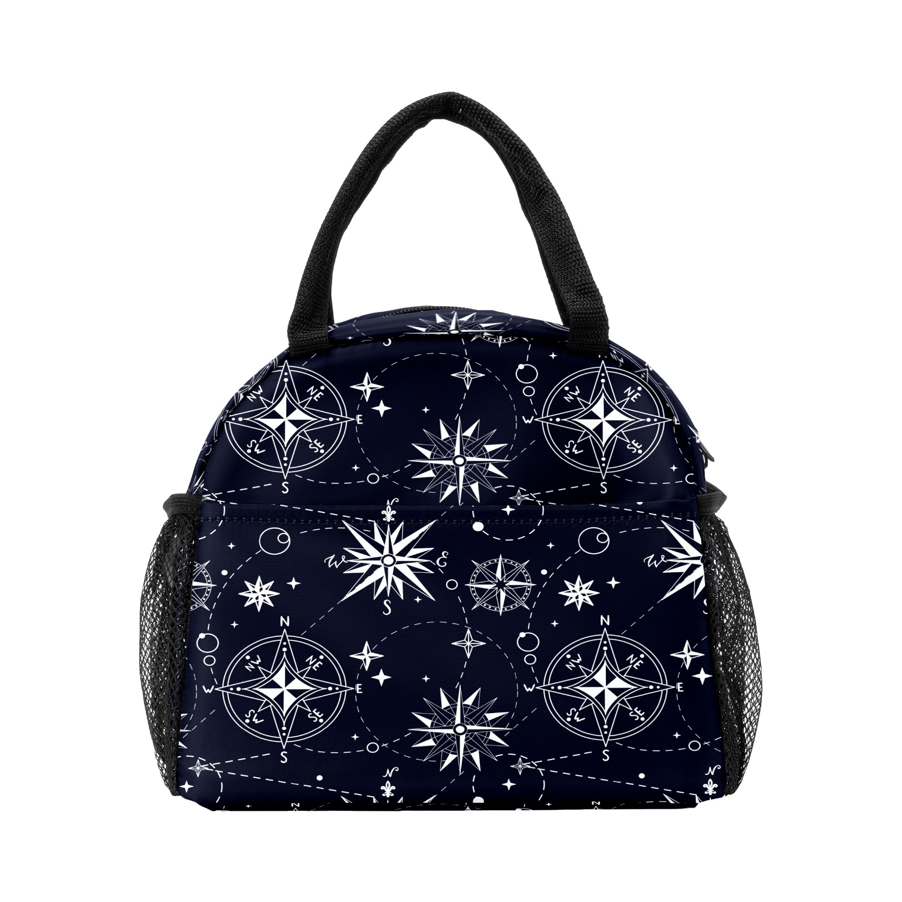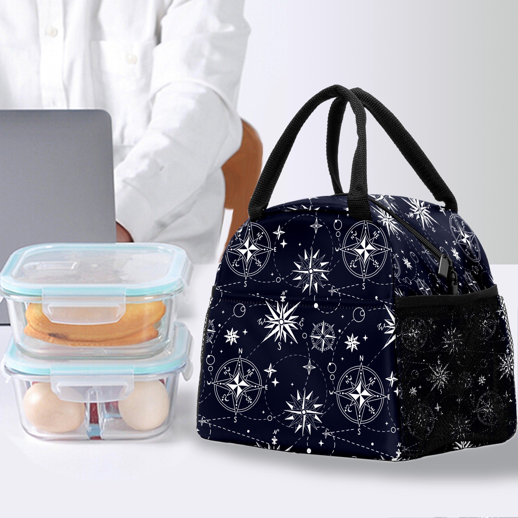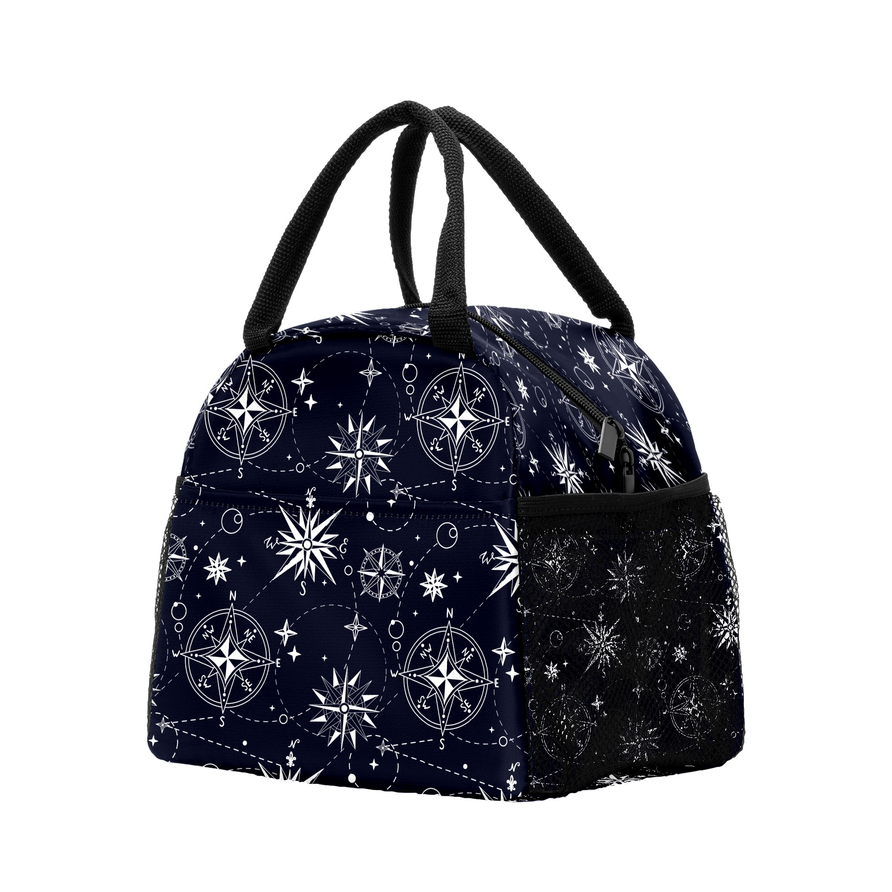Lunch Bag for Women Men, Retro Nautical Compass Pattern Insulated Reusable Lunch Box Thermal Cooler Tote Bag for Work Picnic Hiking Travel Beach