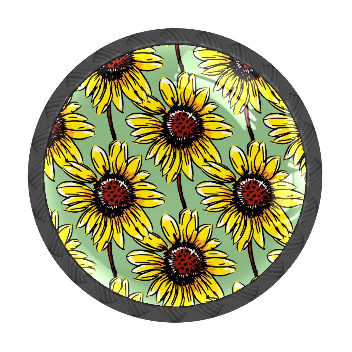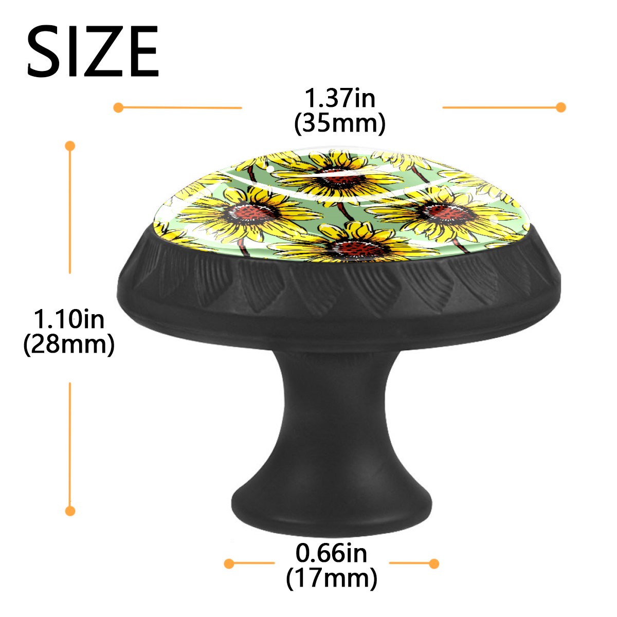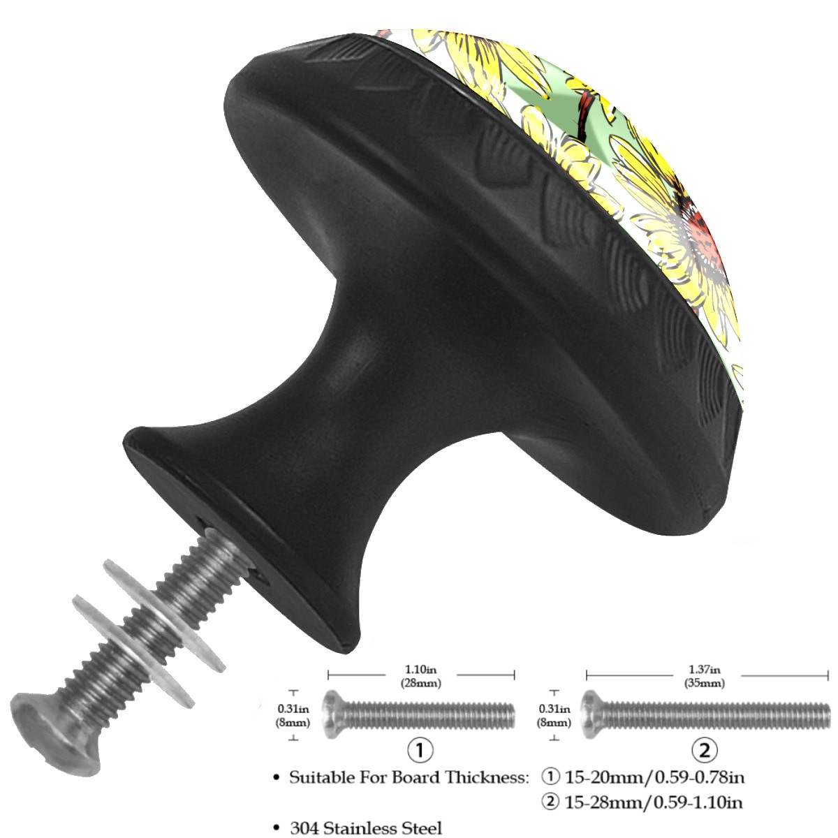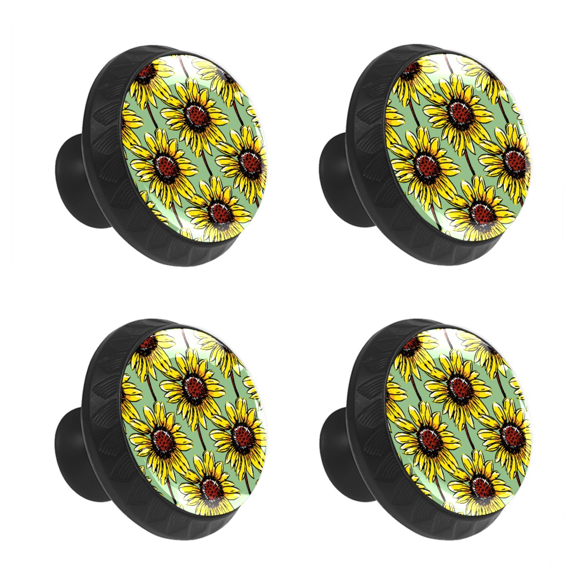 Cabinet Drawer Knobs Set of 4 Painted Sunflowers Pattern Blooming Cabinet Furniture Knobs Drawer Pulls Handle Crystal Glass Round Cupboard Knobs with Screws for Cabinets Kitchen Dresser Wardrobe DIY