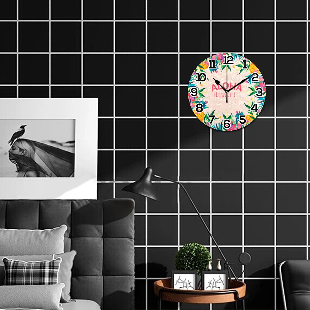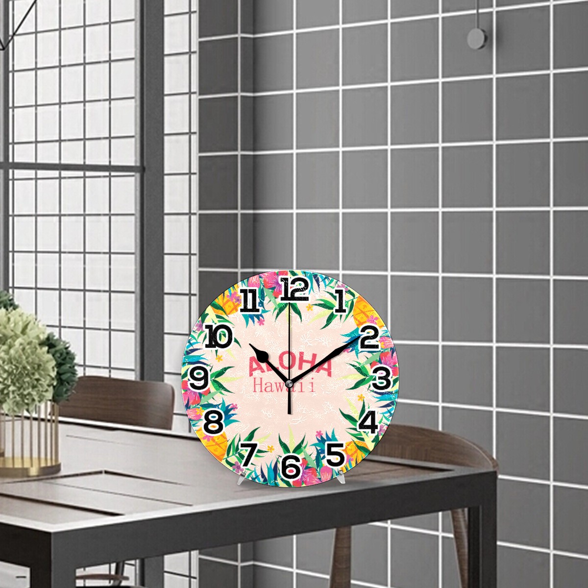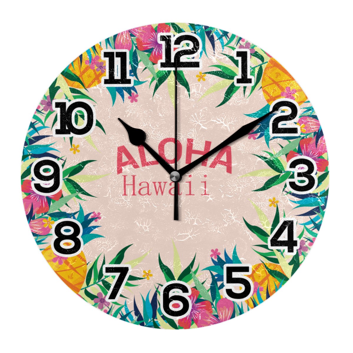 Colorful Tropical Aloha Floral Print Clock Wall Decor Acrylic Decorative Round Battery Operated Wall Clocks for Home Bedroom Living Room Decor Silent Non Ticking