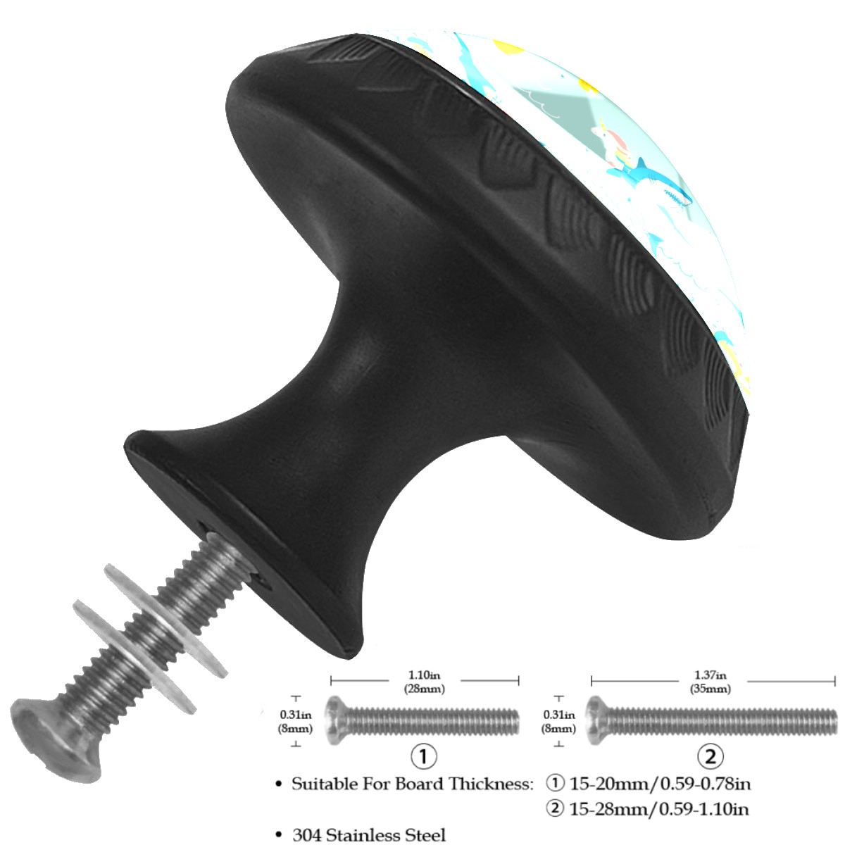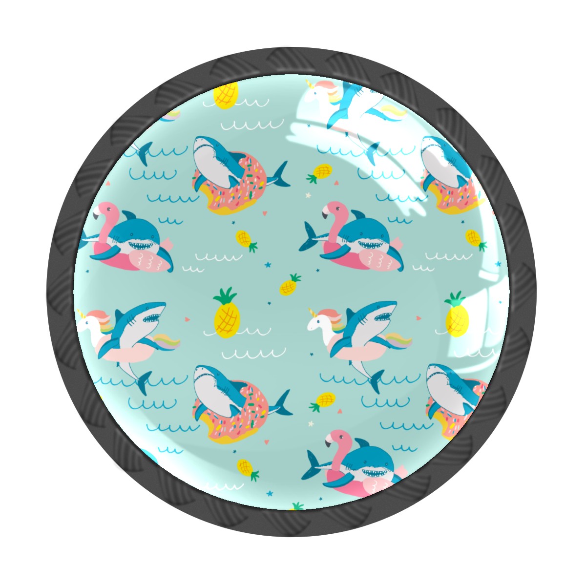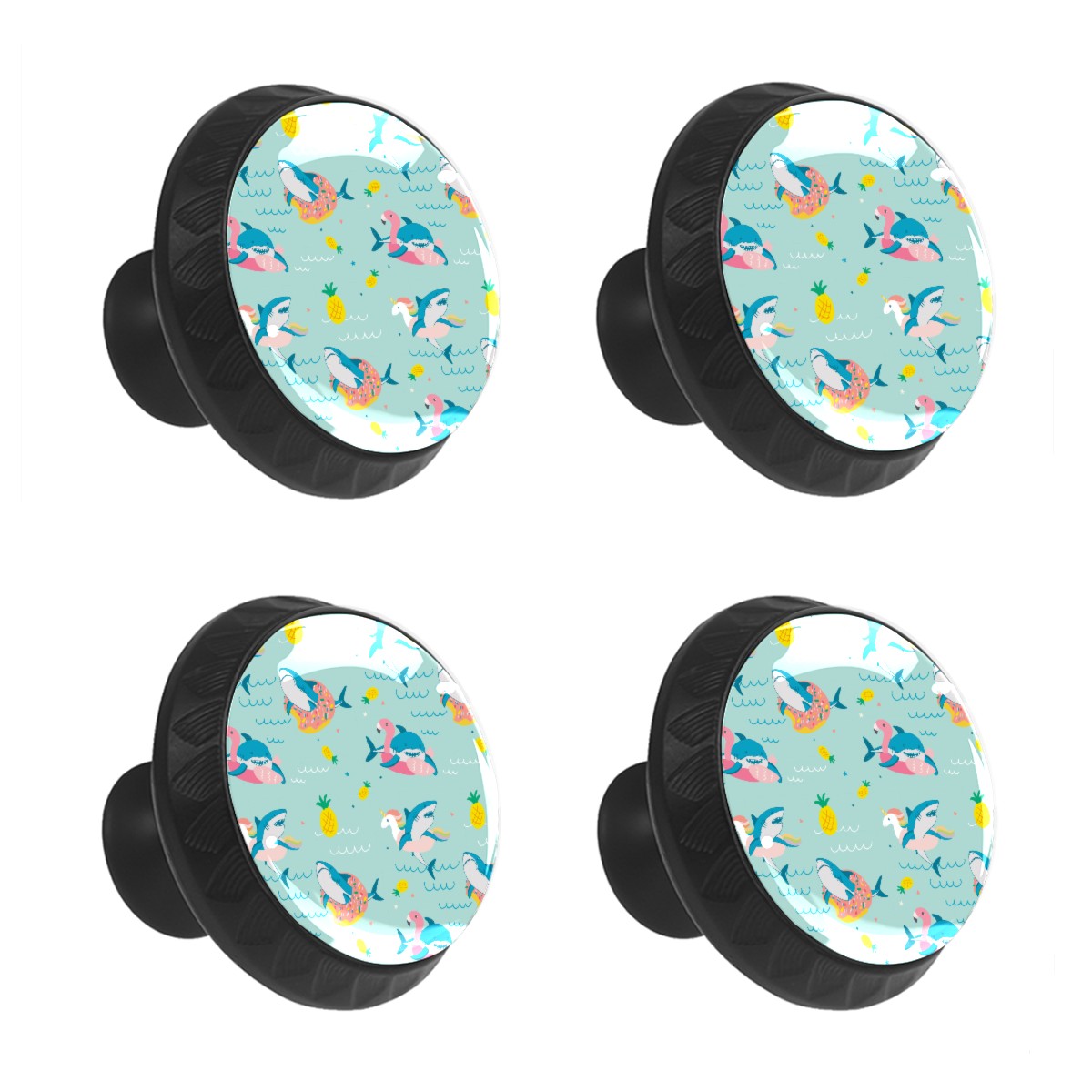Cabinet Drawer Knobs Set of 4 Pineapple Shark On Vocation Flamingo Donut Cabinet Furniture Knobs Drawer Pulls Handle Crystal Glass Round Cupboard Knobs with Screws for Cabinets Kitchen Dresser Wardrobe DIY