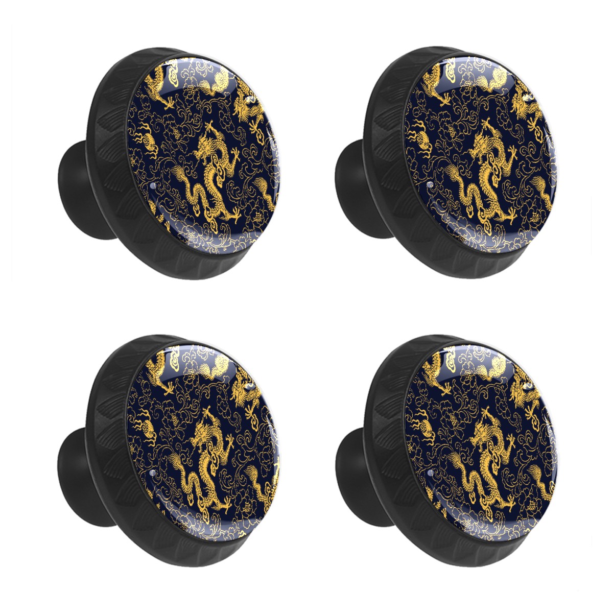 Cabinet Drawer Knobs Set of 4 Chinese Dragon Golden Flower Peony Dark Blue Cabinet Furniture Knobs Drawer Pulls Handle Crystal Glass Round Cupboard Knobs with Screws for Cabinets Kitchen Dresser Wardrobe DIY
