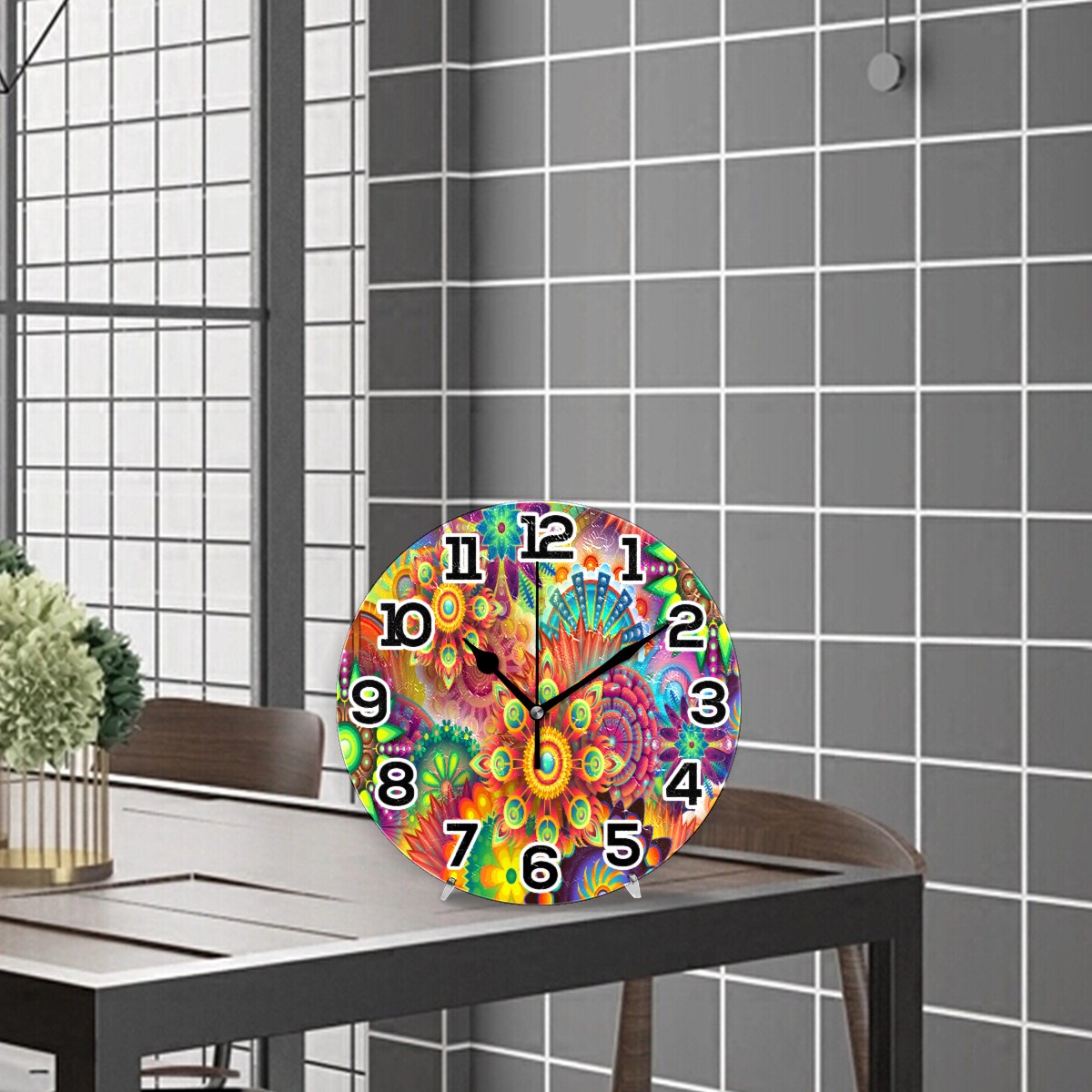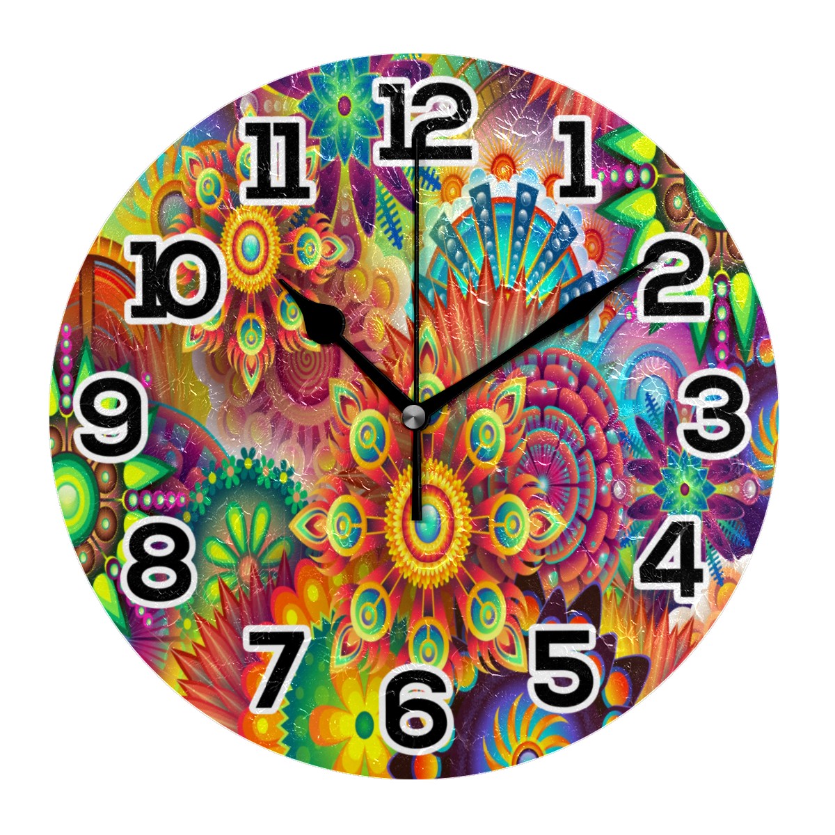 Colorful Abstract Trippy Floral Print Clock Wall Decor Acrylic Decorative Round Battery Operated Wall Clocks for Home Bedroom Living Room Decor Silent Non Ticking
