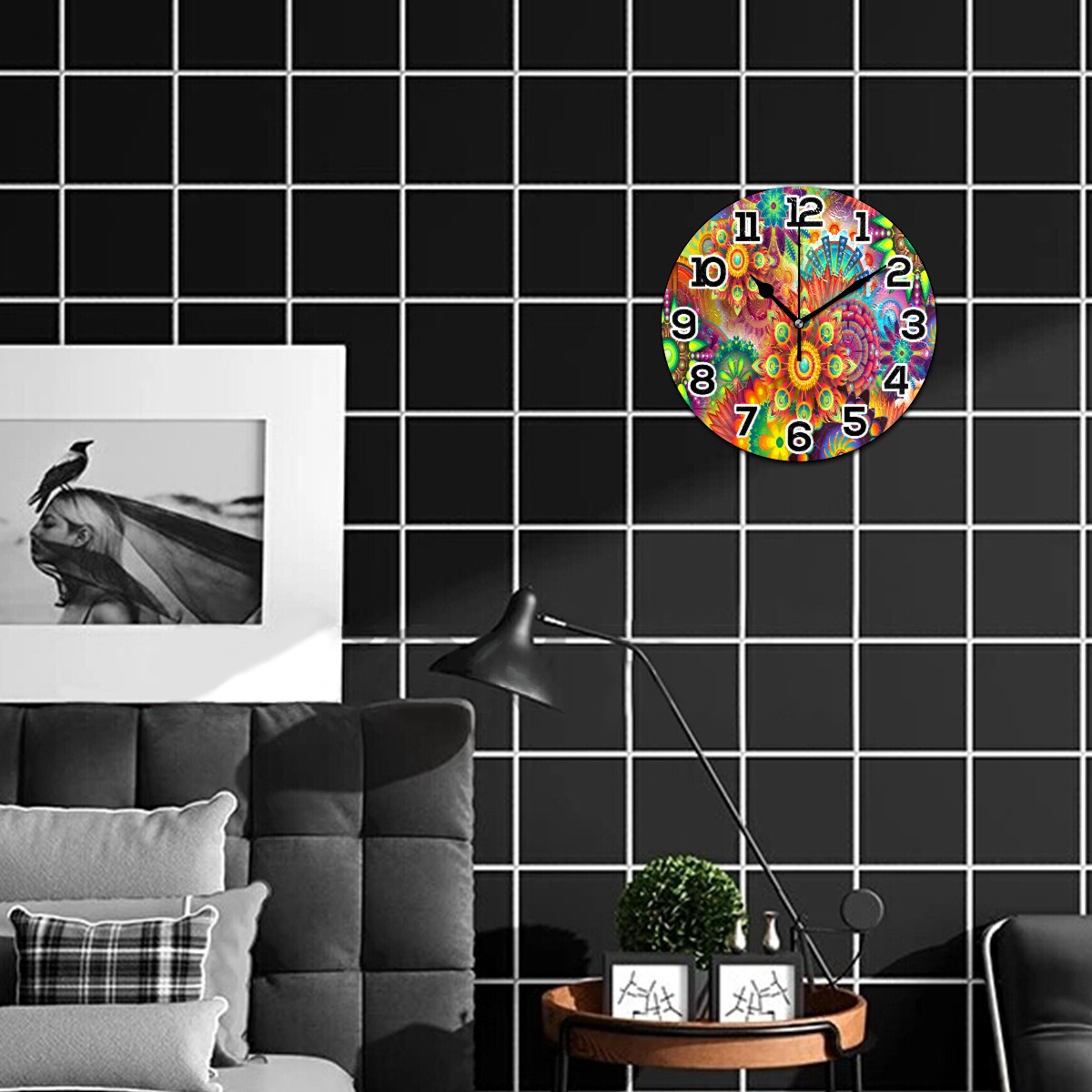 • <p>Our wall clock is perfect for hanging outdoors or indoors,&nbsp; living room, bedroom, kitchen, bathroom, office, dining room, sewing room or any other room. Beautify your space, bring different color to your space. It is not only a decoration, but also a great gift for Christmas/Birthday/Kids/Family/Friend.</p><p></p><p>Product Size: 9.5" diameter x 0.25" thickness;</p><p></p><p>Material: MDF frame, Wood mechanism housing, Metal clock hands.</p><p></p><p>Non ticking: Quiet sweep second hand, no ticking to ensure a good sleeping or working environment.</p><p></p><p>Power Source: 1 x AA battery(not included)</p><p></p><p>Package Included: ONE Wall Clock</p><p></p><p>LARGE NUMBER</p><p>Large white numbers on the dark wood dial face, easy to see from a distance or side. Perfect for grandpa and grandma, parents or any others have poor sight.</p><p>Silent Movement</p><p>Quality Scanning Quartz Movement ensure accurate time and absolutely silent environment. Not bother you reading, working, thinking, conversing or sleeping.</p><p>CUSTOMER SERIVCE</p><p>Please feel free to contact us if you have any questions.</p>
