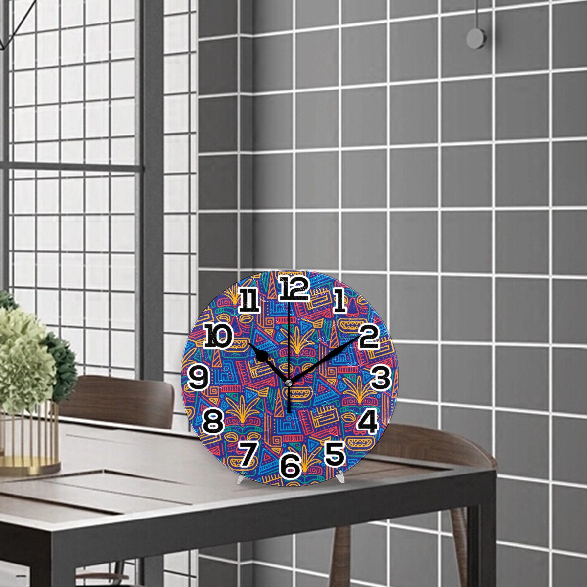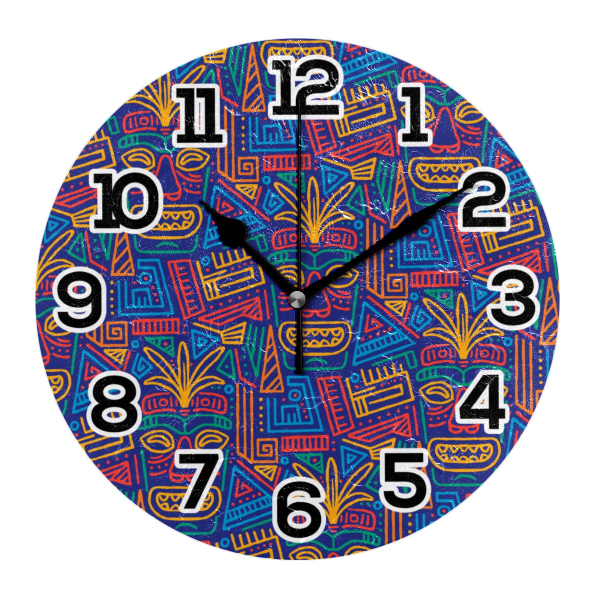 Colorful Ethnic Africa Aloha Clock Wall Decor Acrylic Decorative Round Battery Operated Wall Clocks for Home Bedroom Living Room Decor Silent Non Ticking