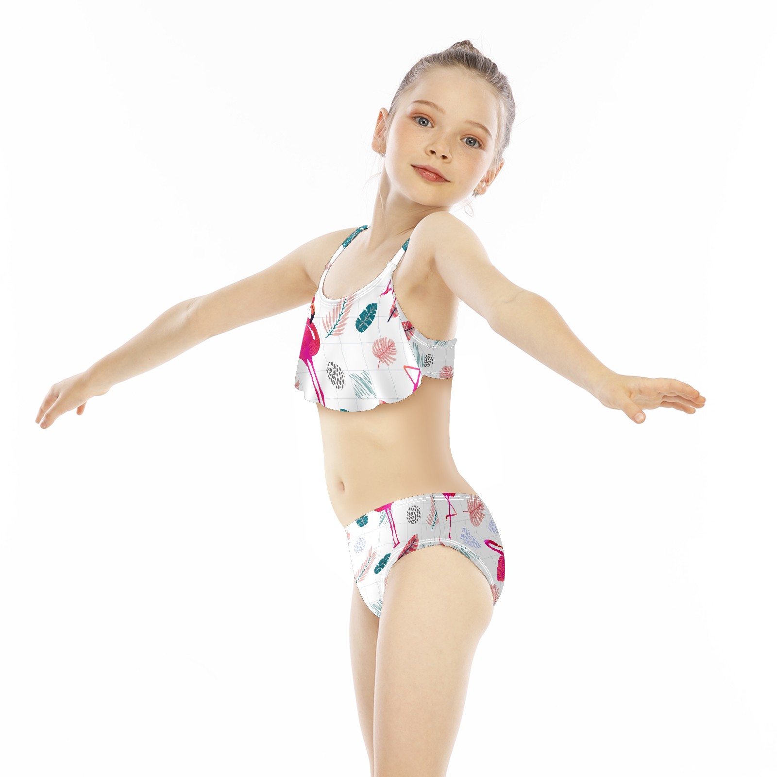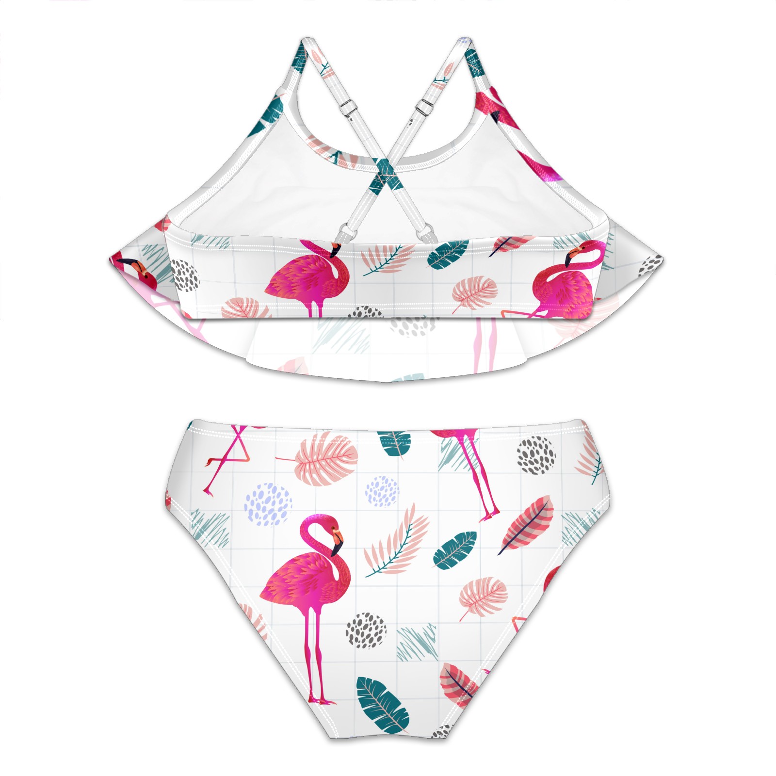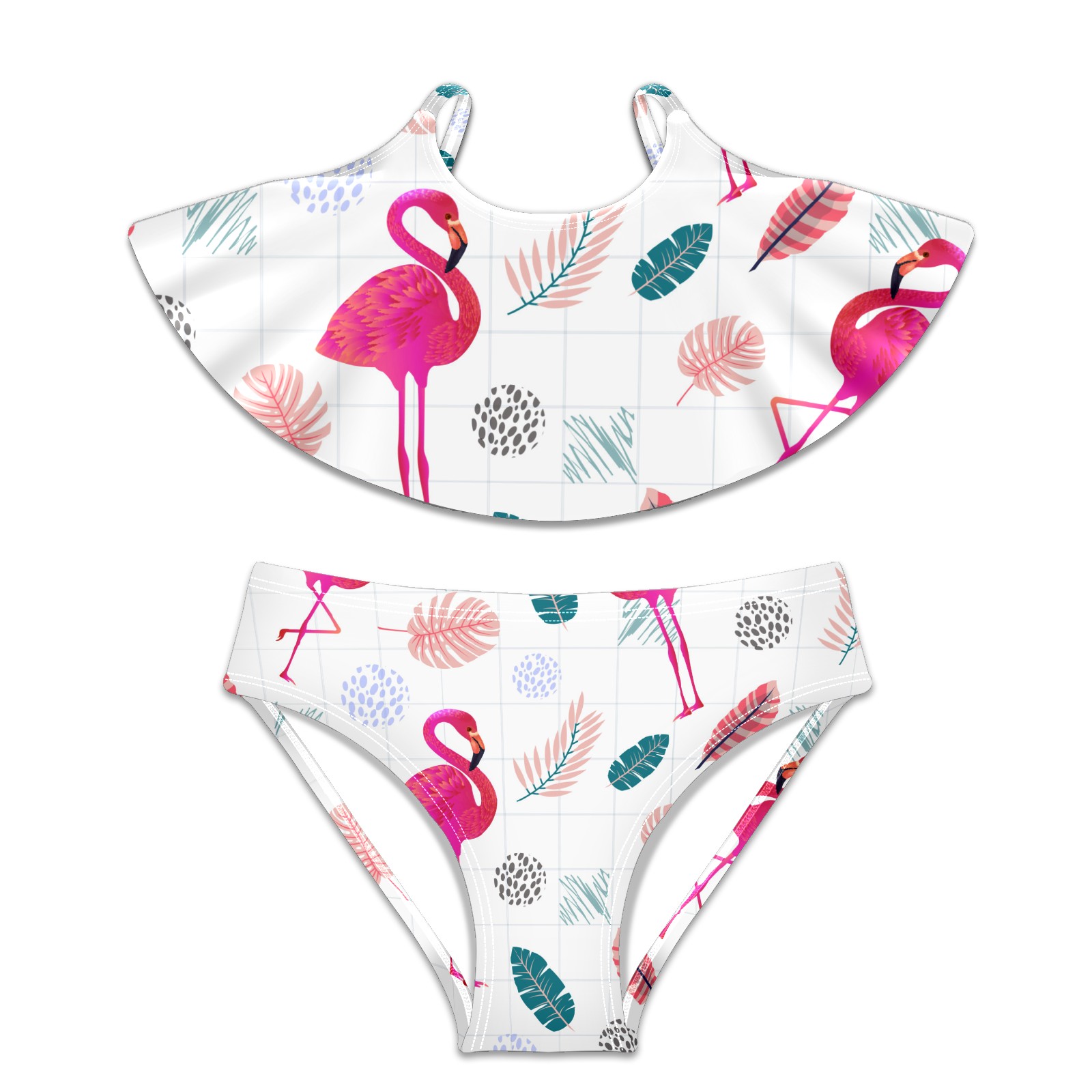 Swimsuits for Girls Two Pieces Bathing Suit Quick Dry Swimwear Tropical Pink Flamingos Bird Leaves S