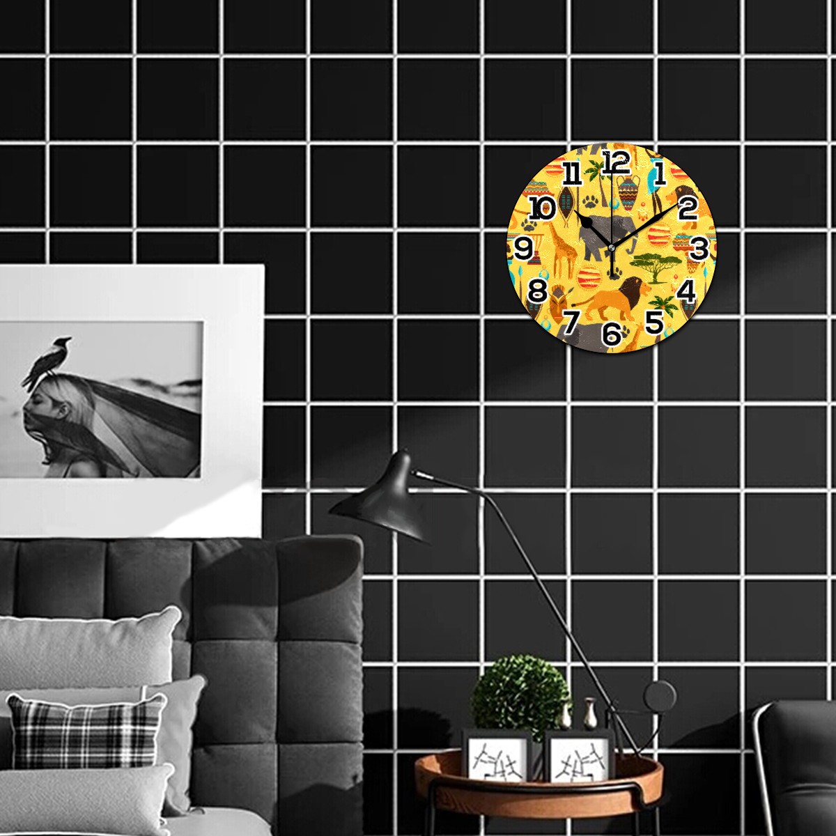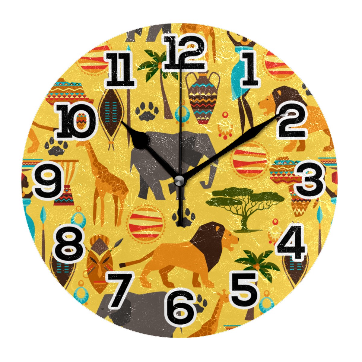 Africa Forest Animal Elephant Giraffe Clock Wall Decor Acrylic Decorative Round Battery Operated Wall Clocks for Home Bedroom Living Room Decor Silent Non Ticking