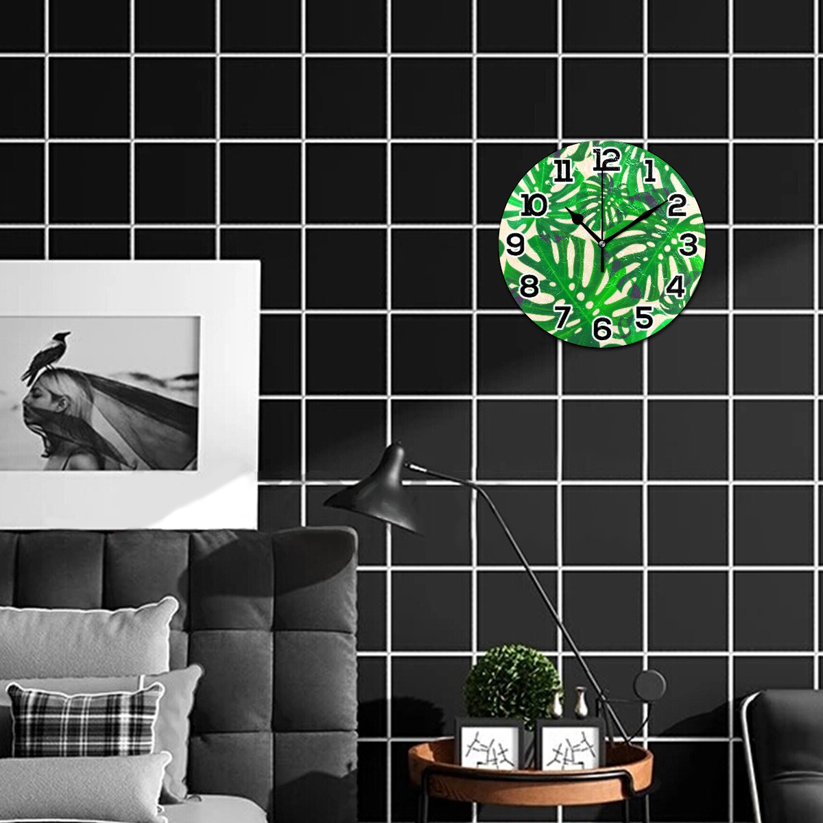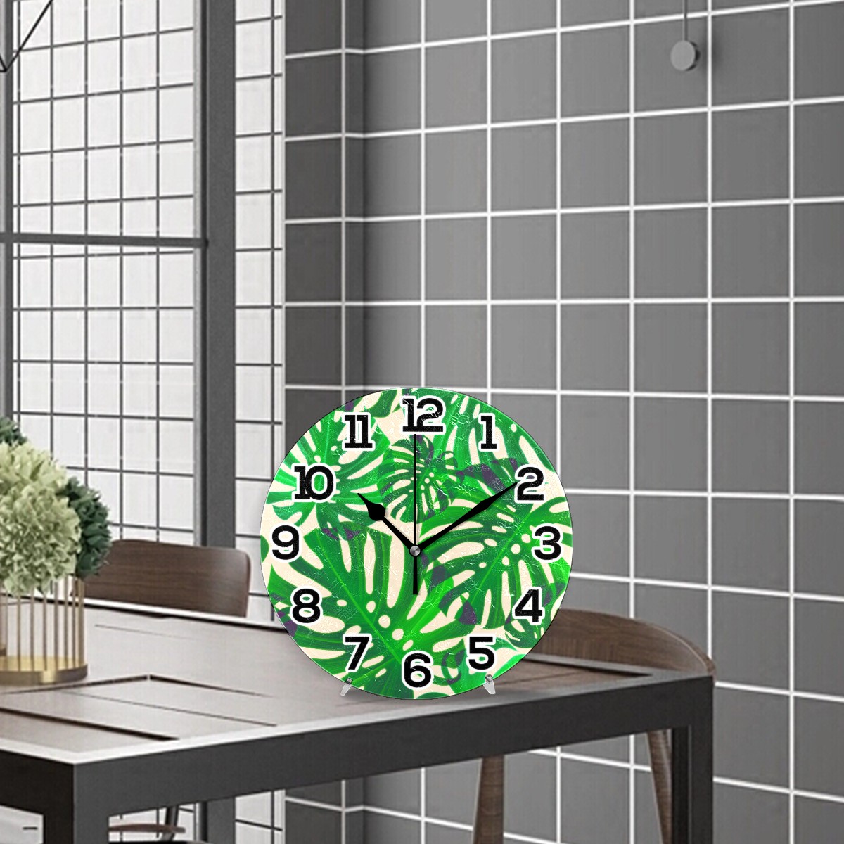 Tropical Palm Pattern Clock Wall Decor Acrylic Decorative Round Battery Operated Wall Clocks for Home Bedroom Living Room Decor Silent Non Ticking