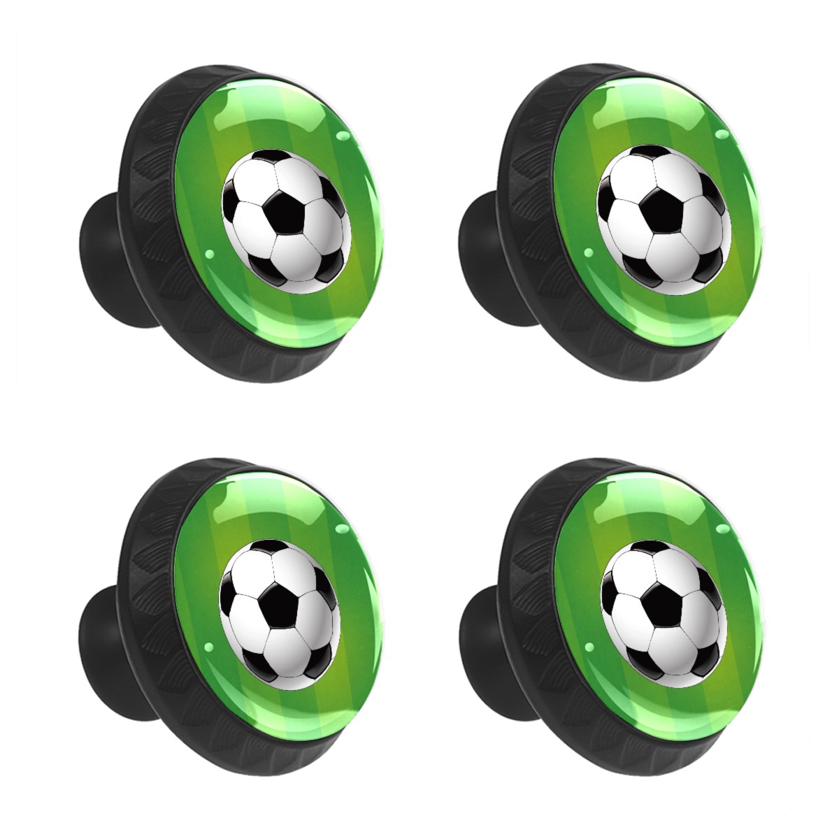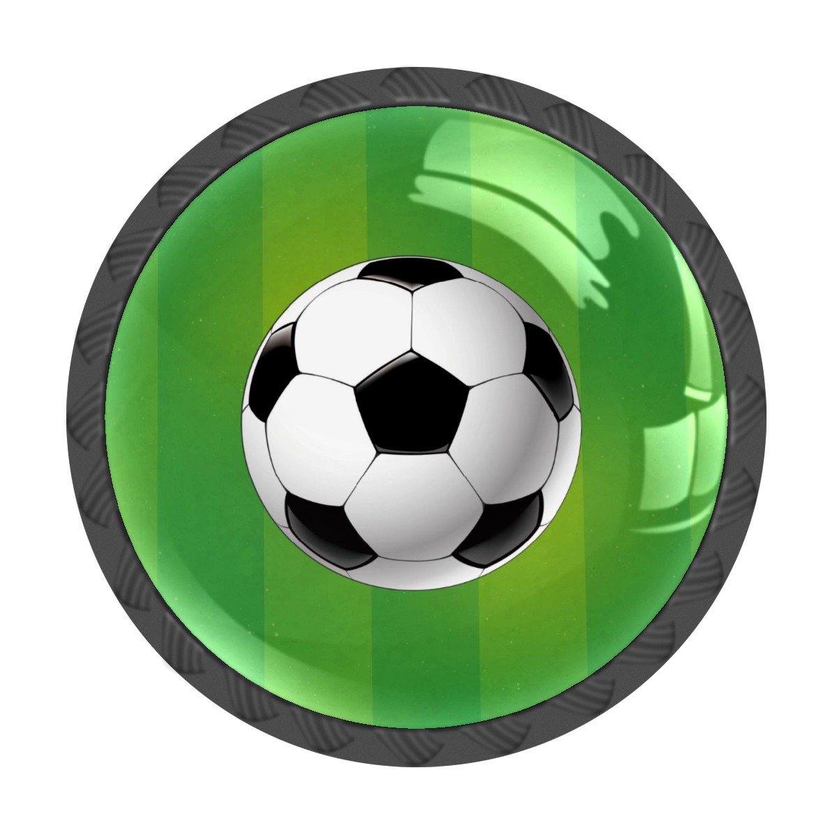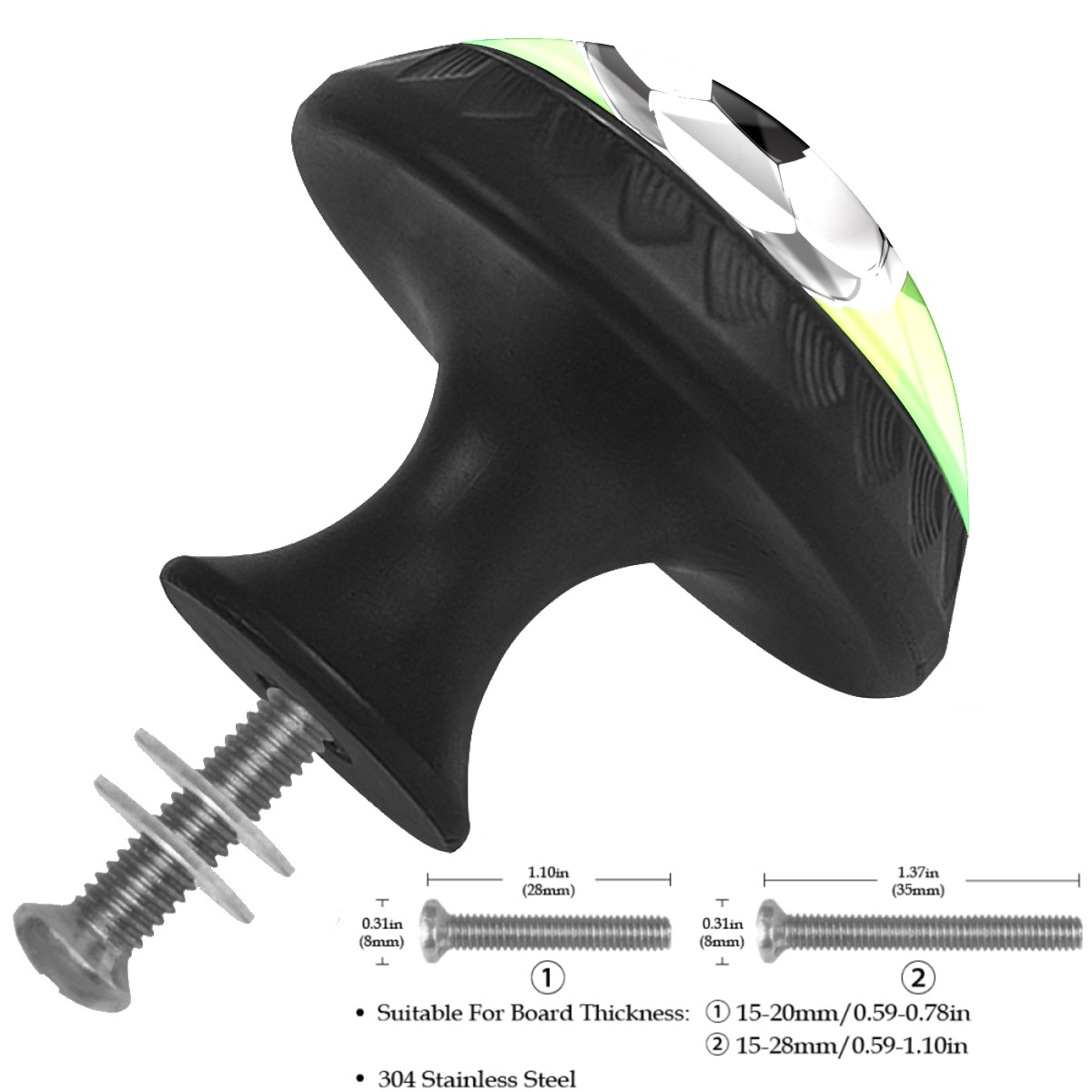 Cabinet Drawer Knobs Set of 4 Sport Soccer Ball Green Striped Cabinet Furniture Knobs Drawer Pulls Handle Crystal Glass Round Cupboard Knobs with Screws for Cabinets Kitchen Dresser Wardrobe DIY
