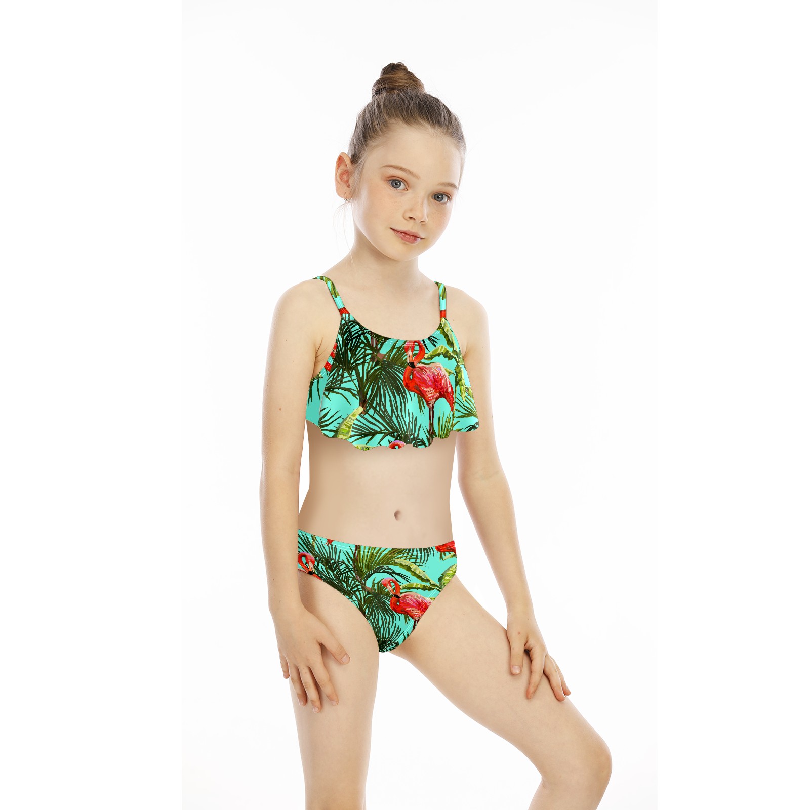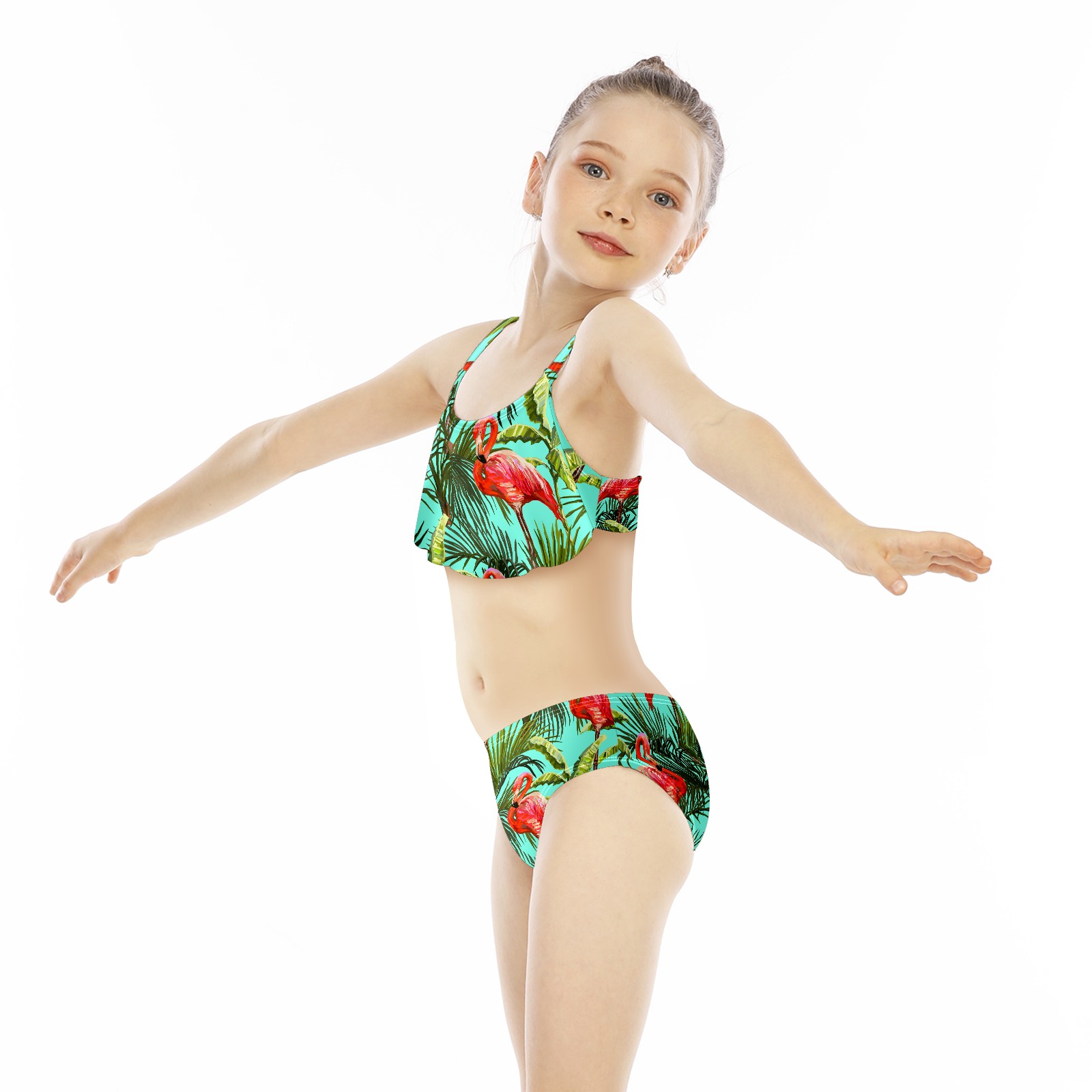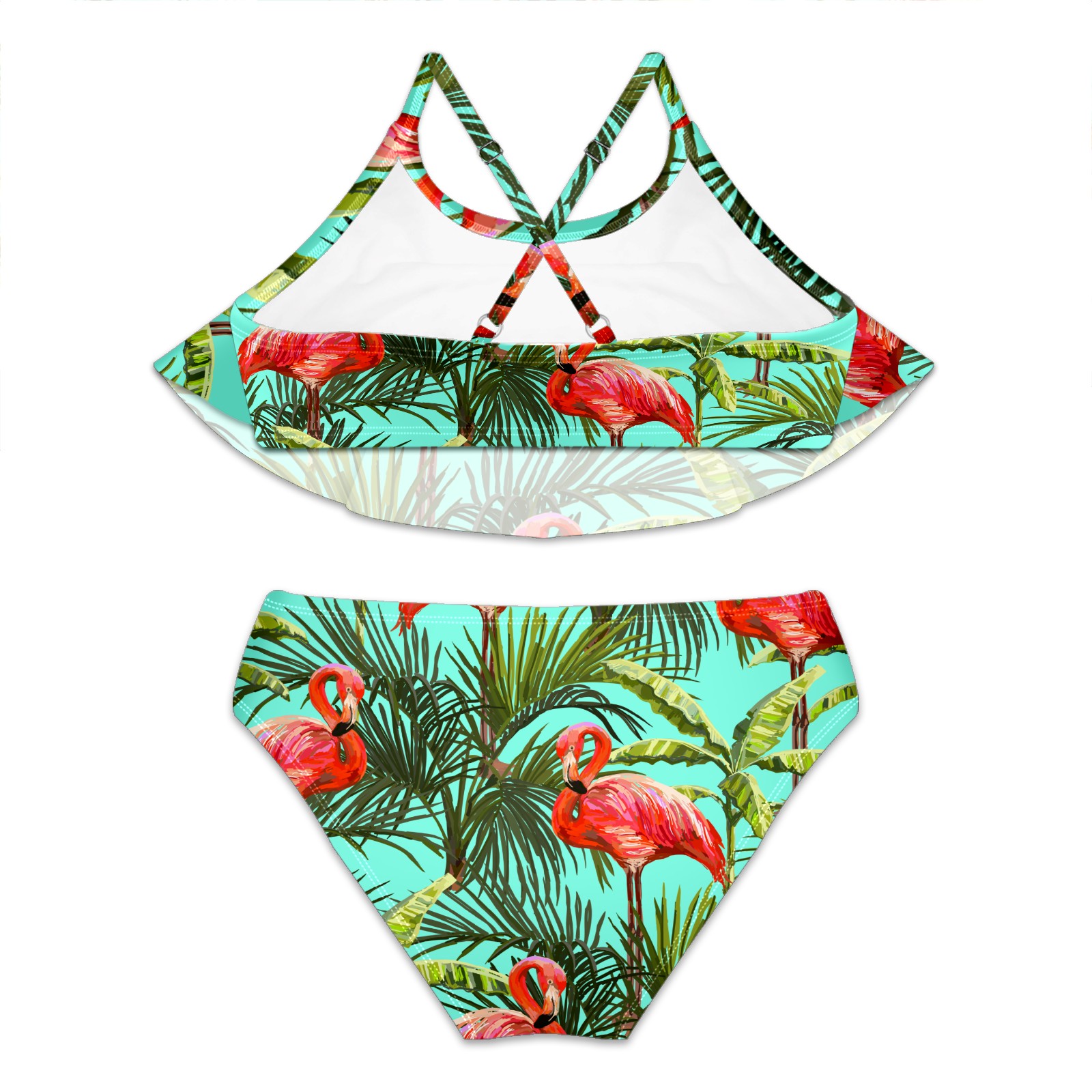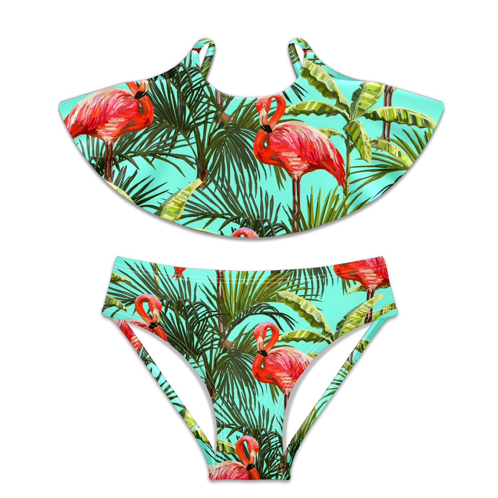Swimsuits for Girls Two Pieces Bathing Suit Quick Dry Swimwear Tropical Flamingos With Plants S