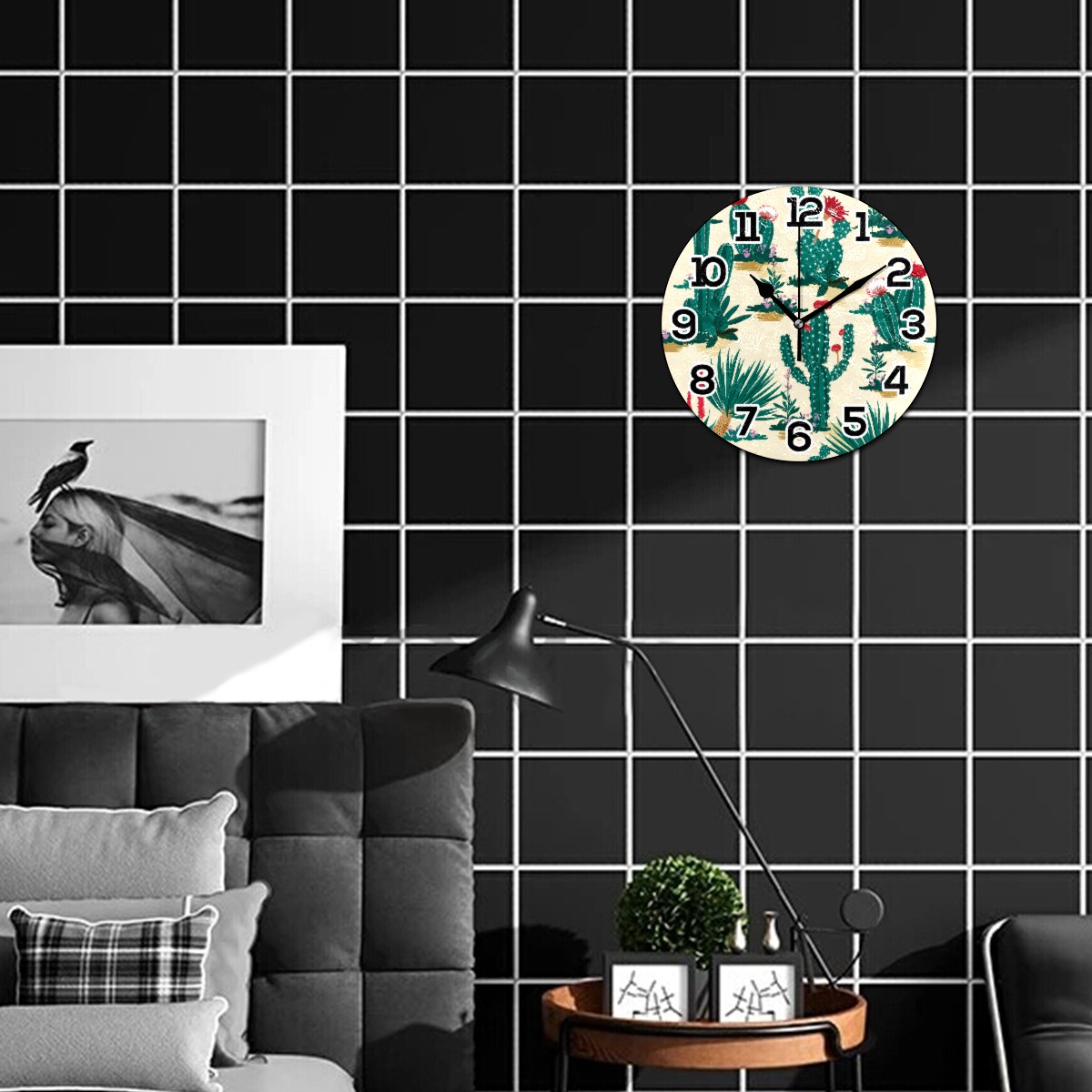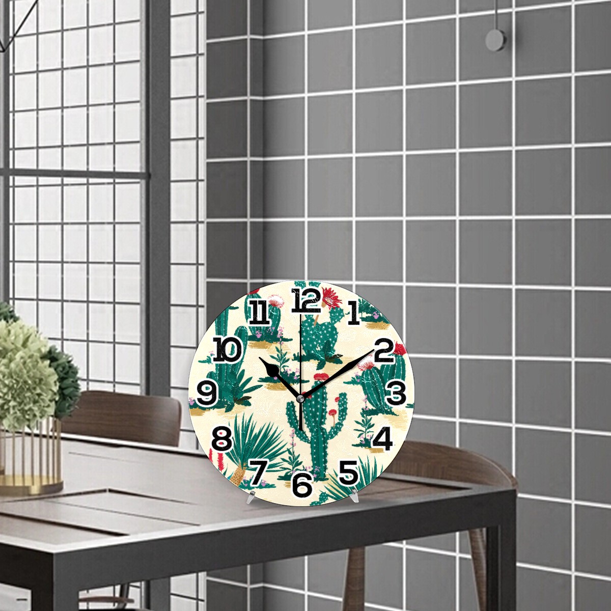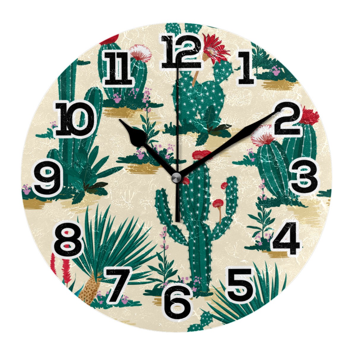 Retro Cactus Cacti Plants Floral Clock Wall Decor Acrylic Decorative Round Battery Operated Wall Clocks for Home Bedroom Living Room Decor Silent Non Ticking