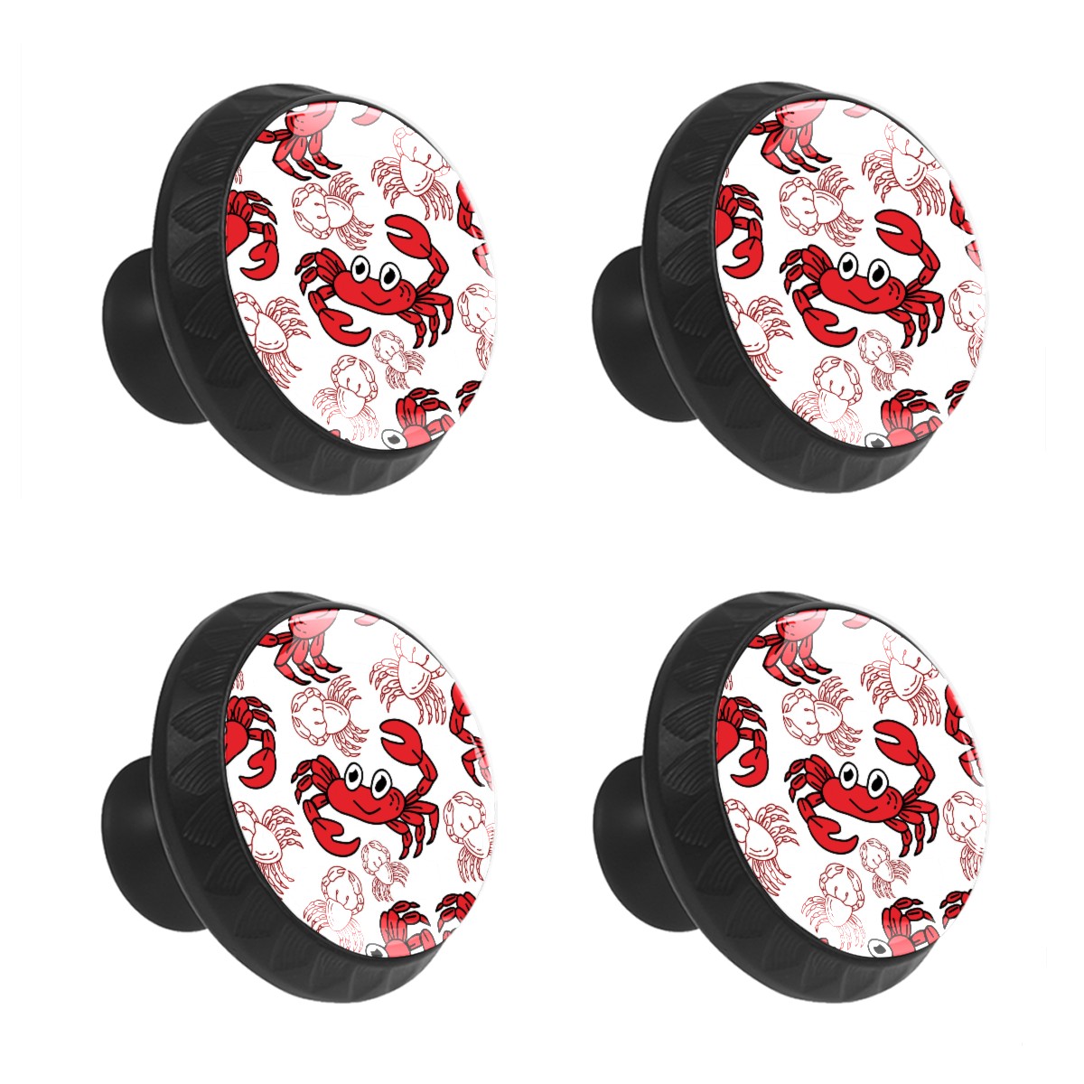Cabinet Drawer Knobs Set of 4 Cartoon Funny Cute Crabs Pattern Red Cabinet Furniture Knobs Drawer Pulls Handle Crystal Glass Round Cupboard Knobs with Screws for Cabinets Kitchen Dresser Wardrobe DIY