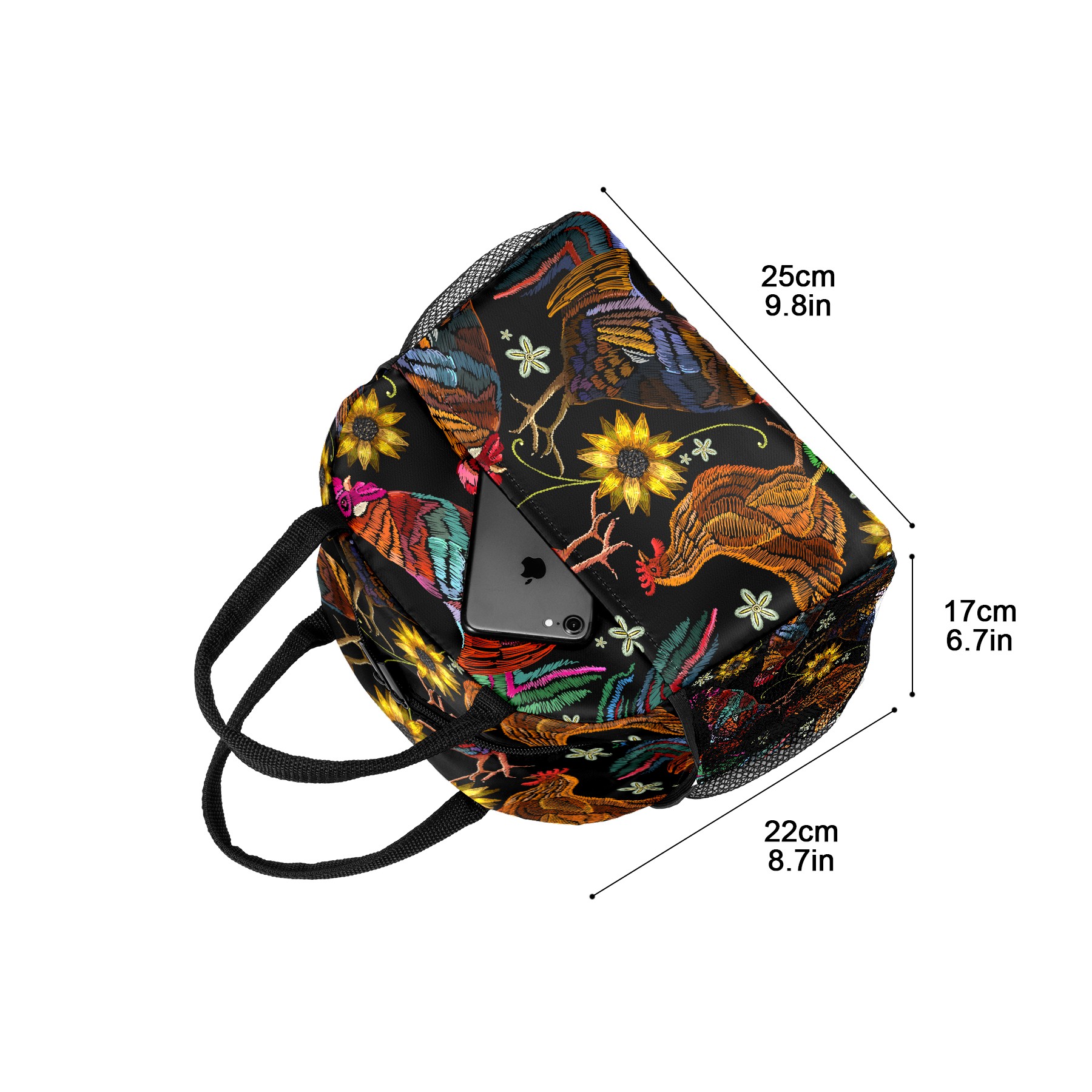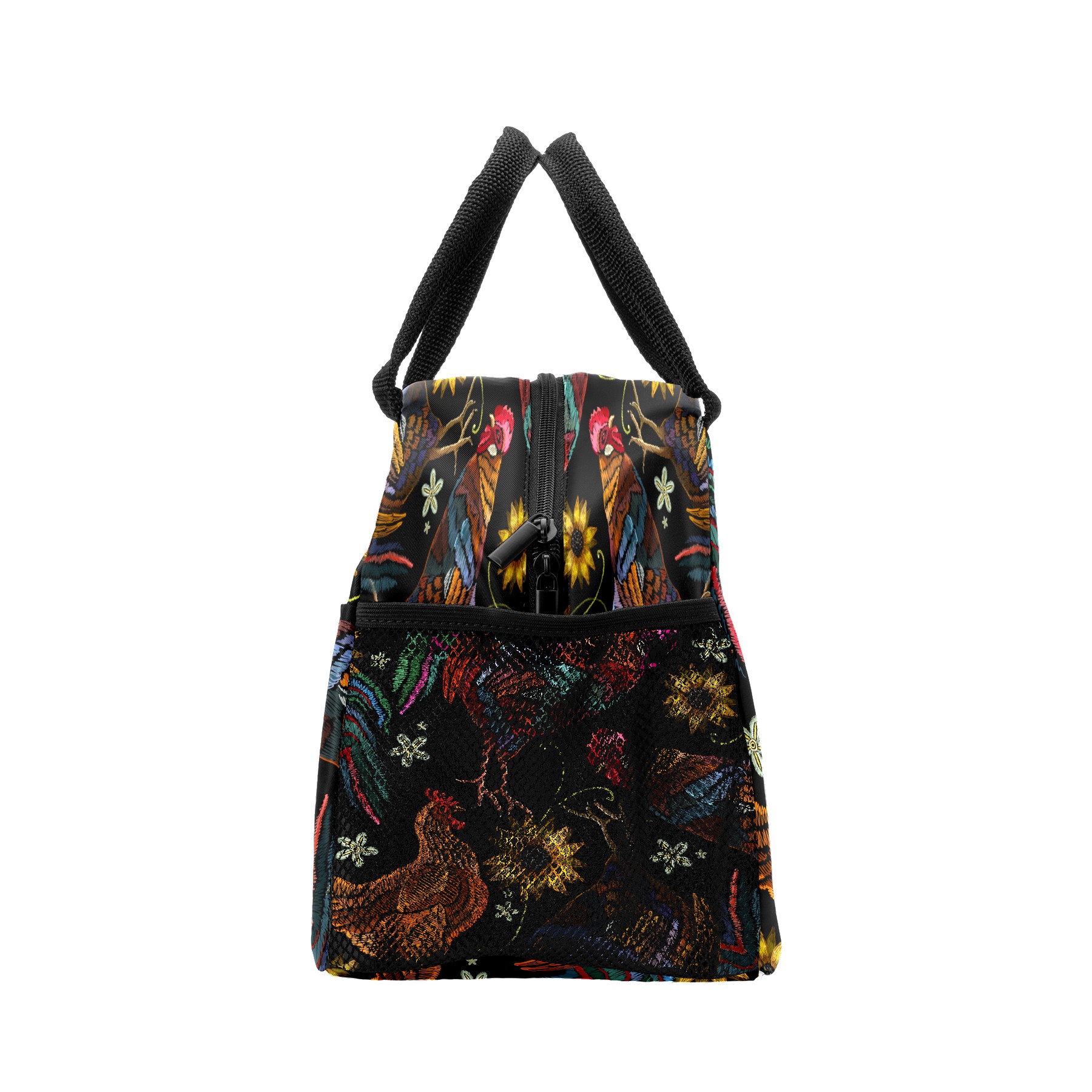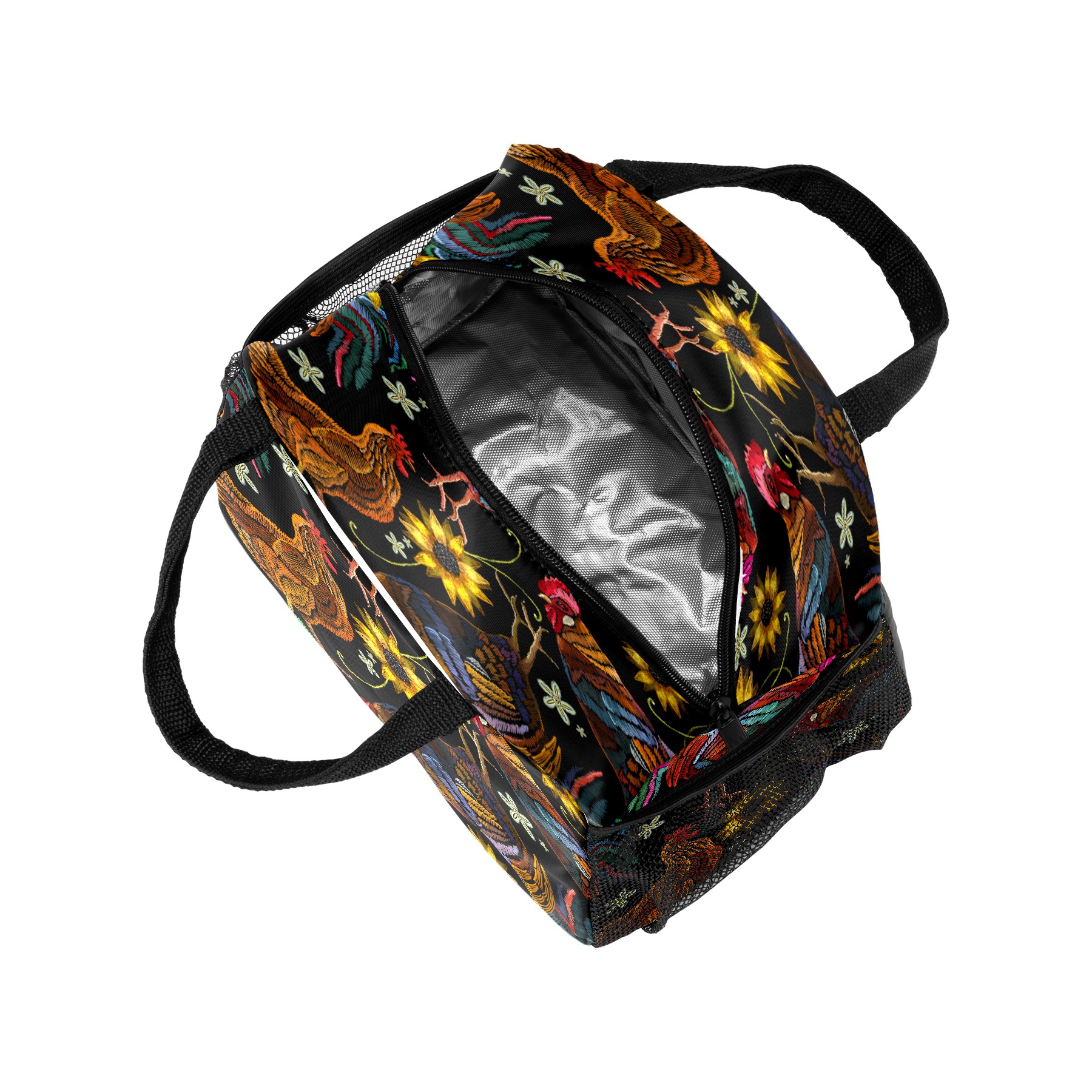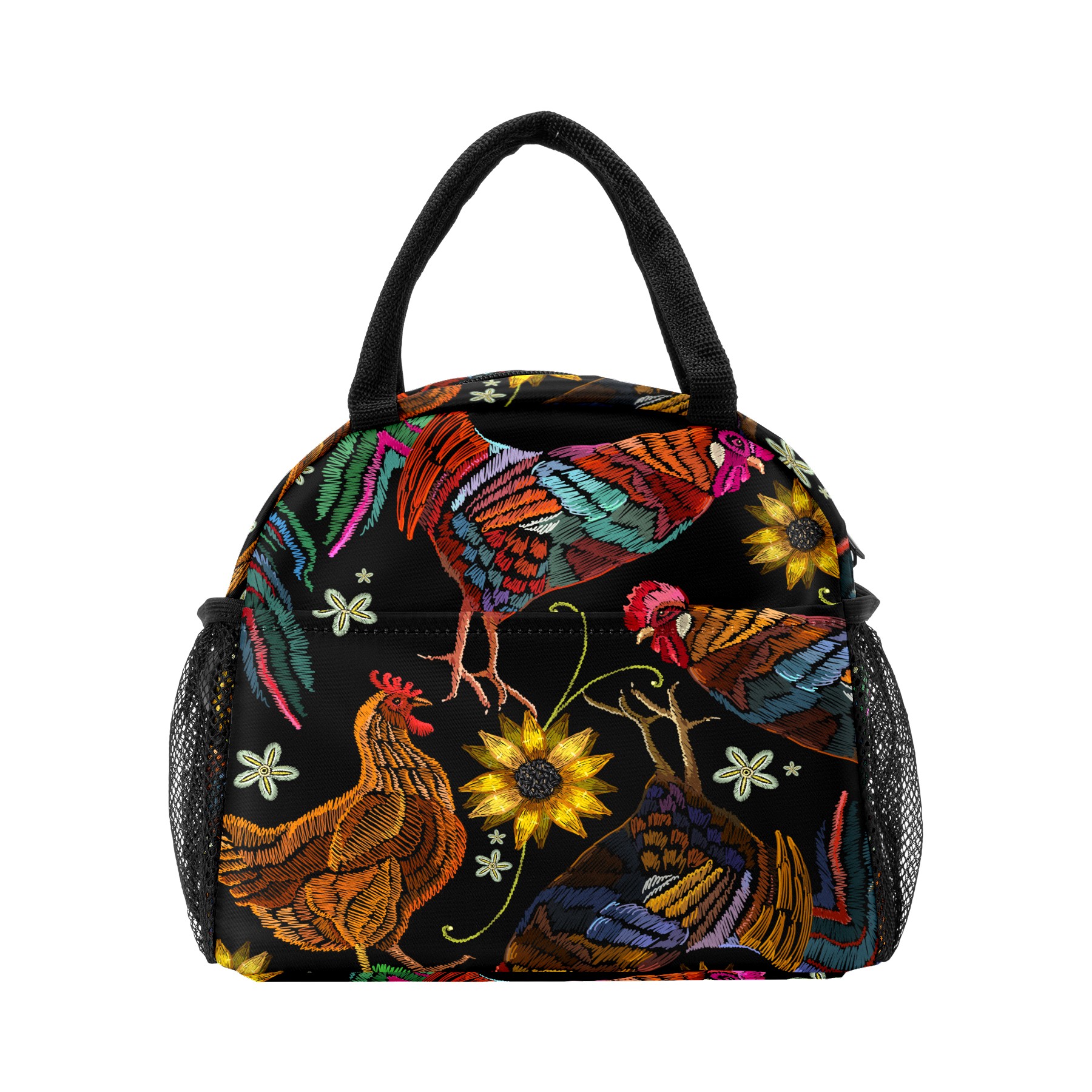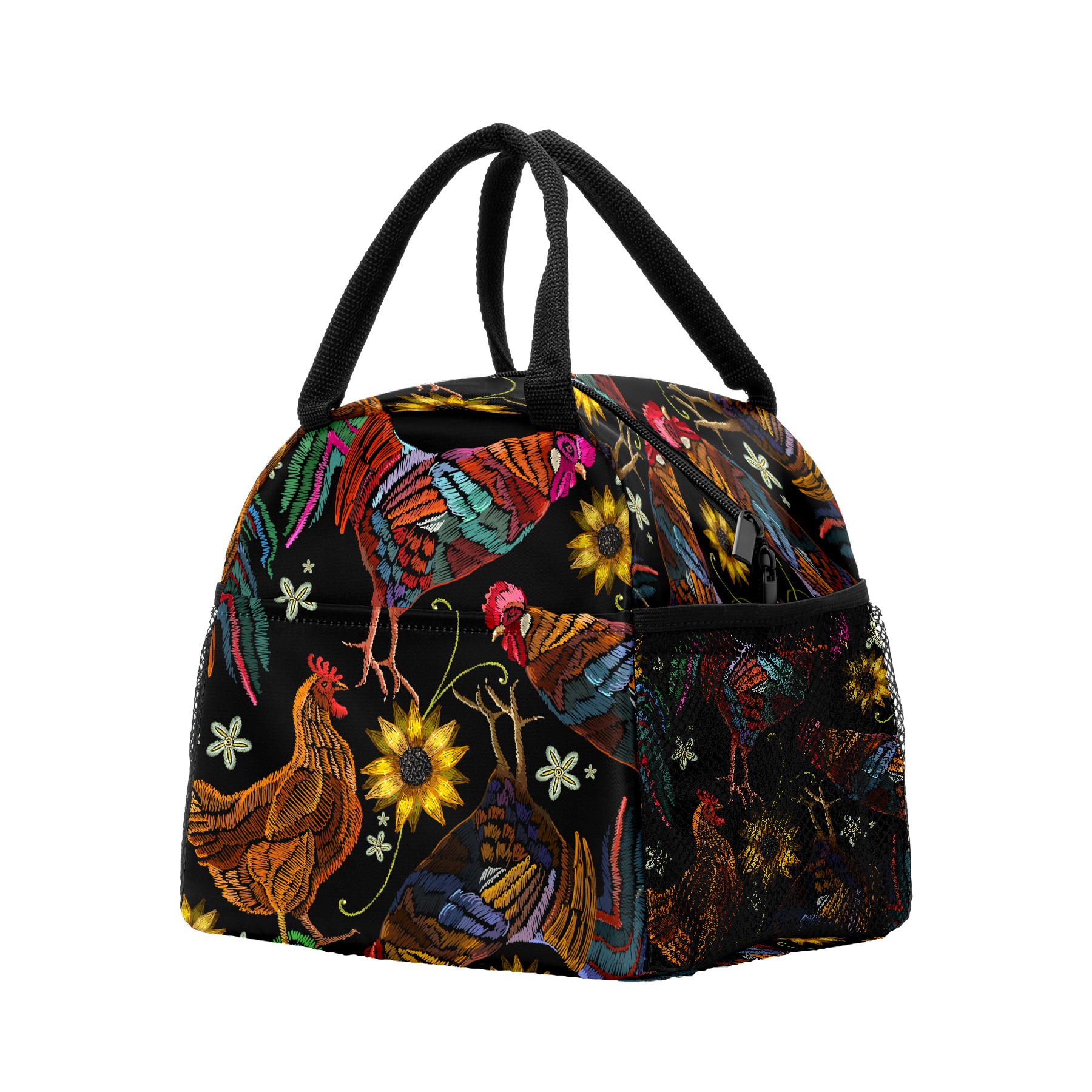 Lunch Bag for Women Men, Retro Colorful Rooster Floral Pattern Insulated Reusable Lunch Box Thermal Cooler Tote Bag for Work Picnic Hiking Travel Beach
