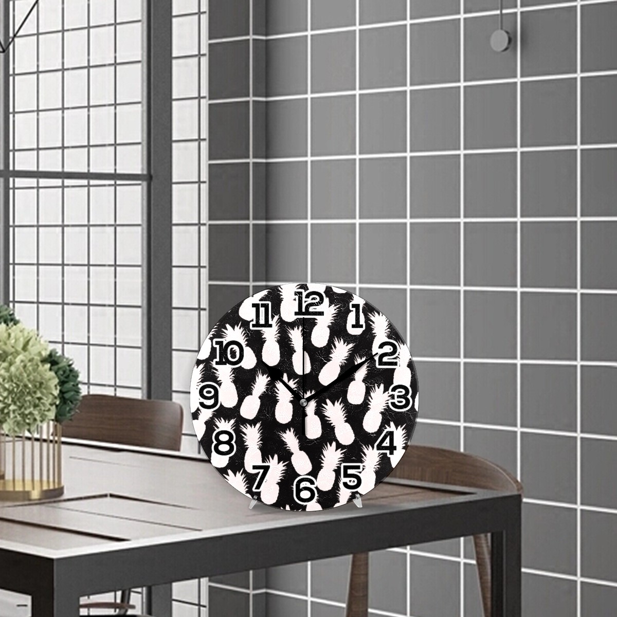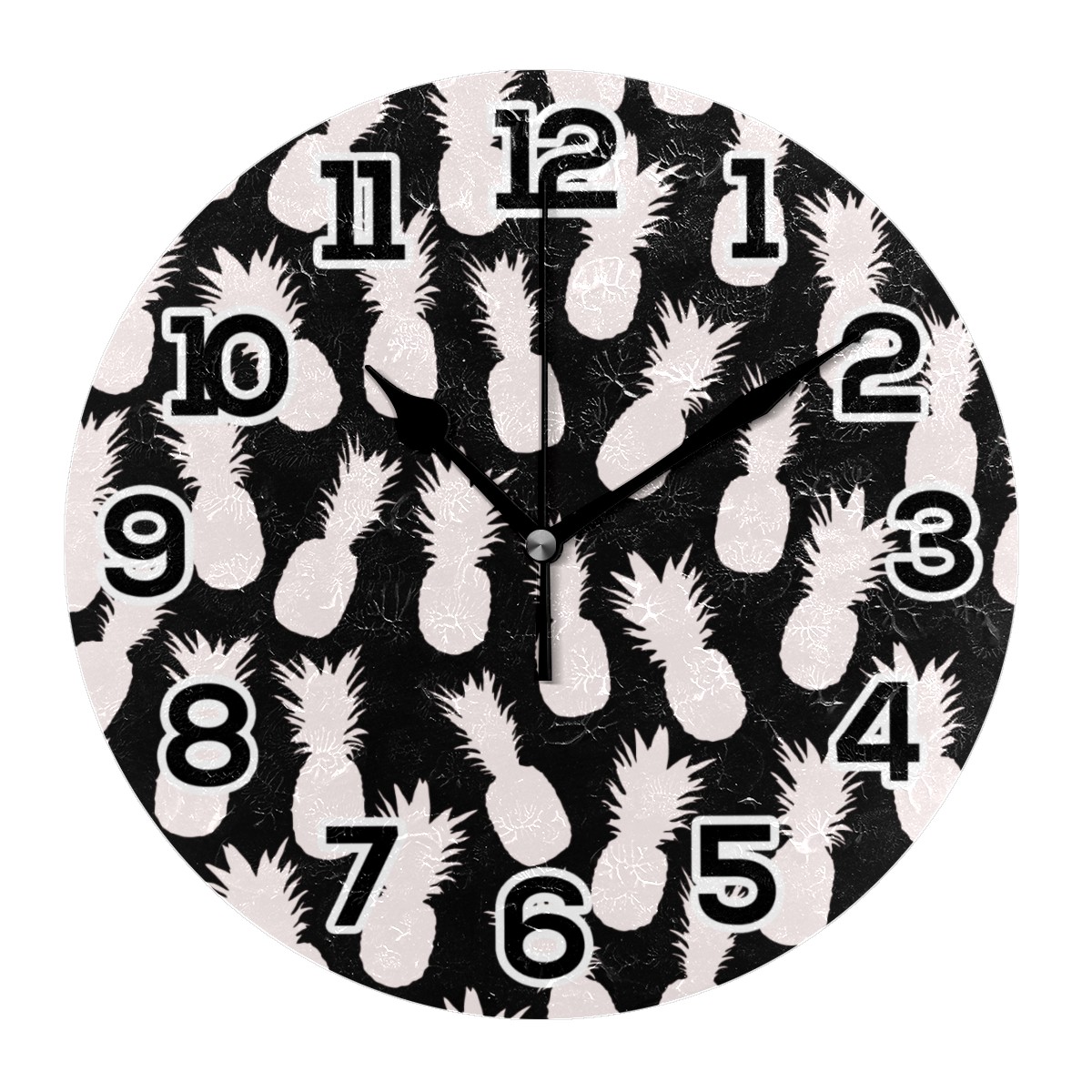 Pineapple Black White Pattern Clock Wall Decor Acrylic Decorative Round Battery Operated Wall Clocks for Home Bedroom Living Room Decor Silent Non Ticking