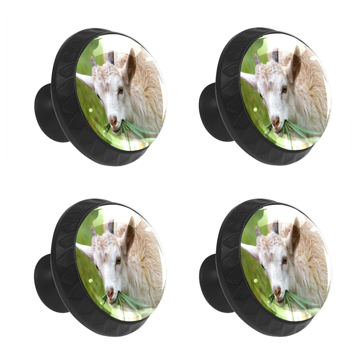 Cabinet Drawer Knobs Set of 4 Goat Eating Grass Outdoors Farm Cabinet Furniture Knobs Drawer Pulls Handle Crystal Glass Round Cupboard Knobs with Screws for Cabinets Kitchen Dresser Wardrobe DIY