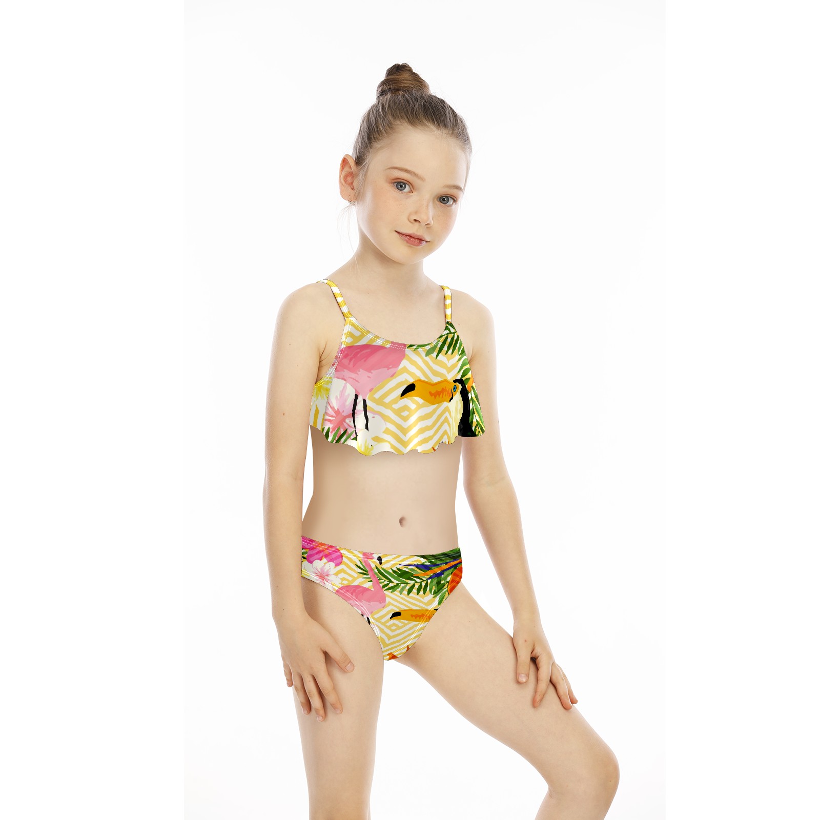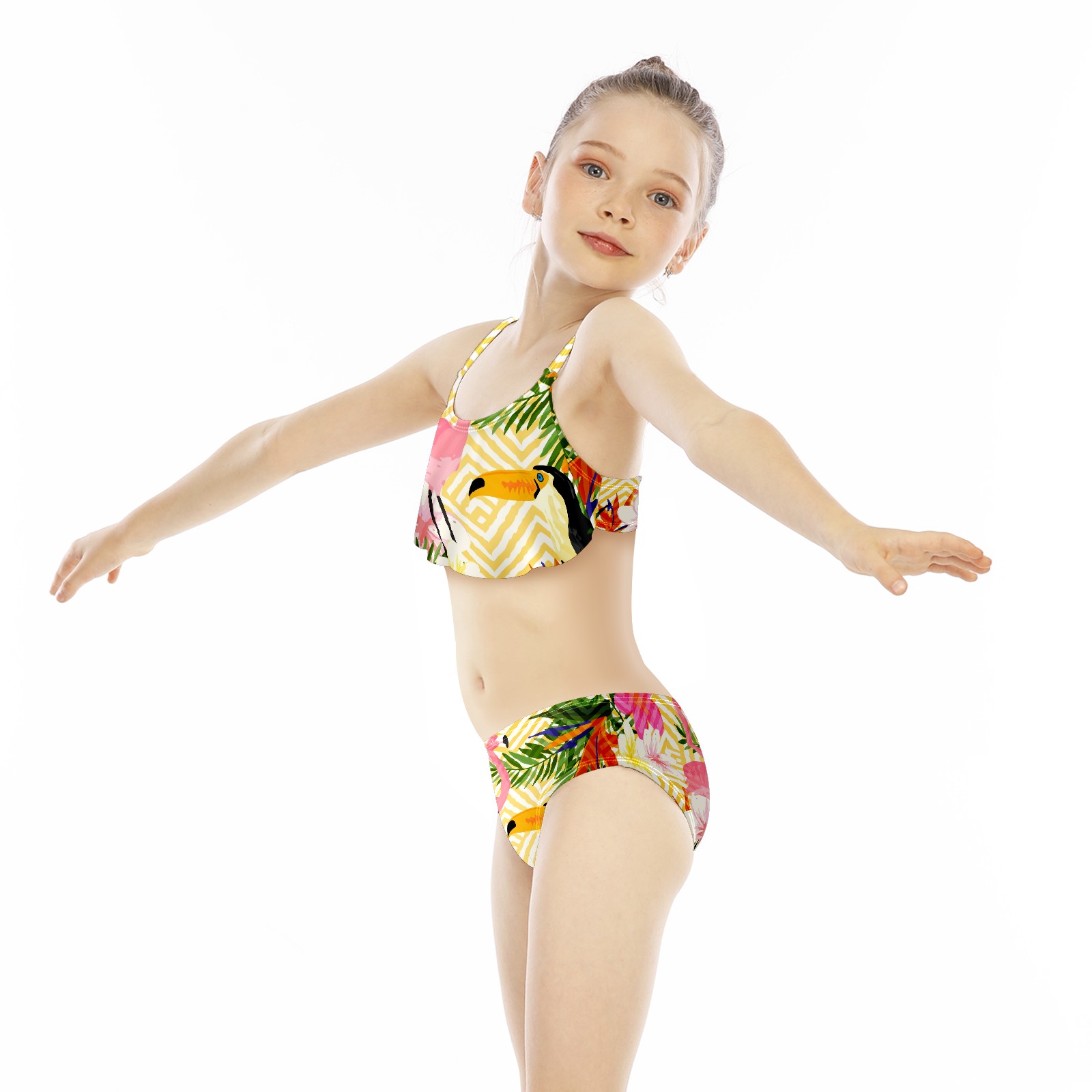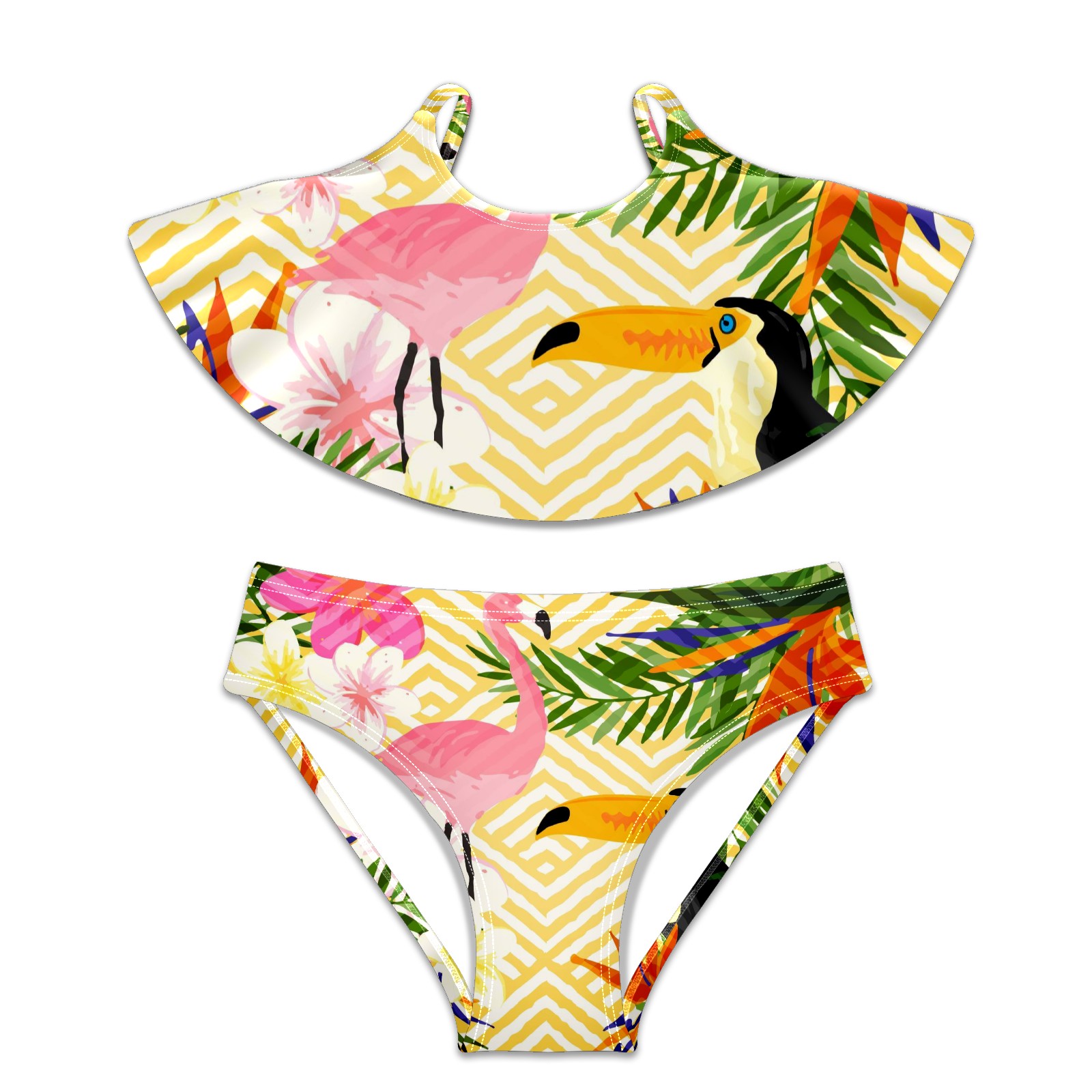 Swimsuits for Girls Two Pieces Bathing Suit Quick Dry Swimwear Tropical Flamingos Toucan Flowers S