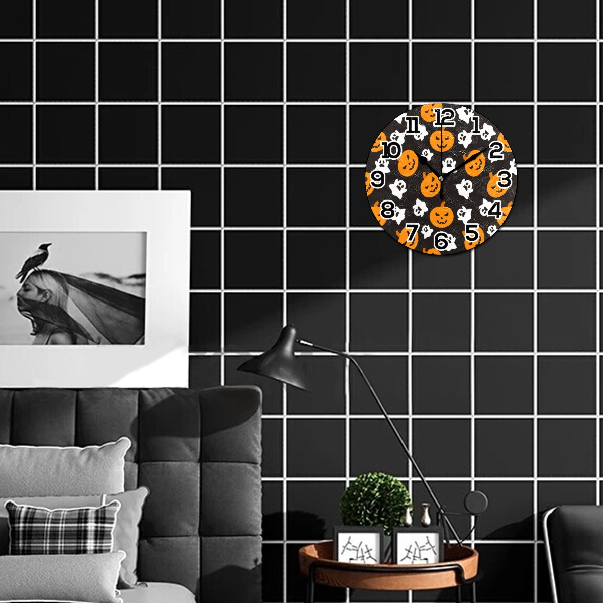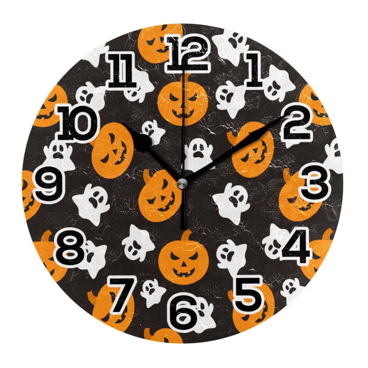 Halloween Funny Pumpkin Ghost Clock Wall Decor Acrylic Decorative Round Battery Operated Wall Clocks for Home Bedroom Living Room Decor Silent Non Ticking