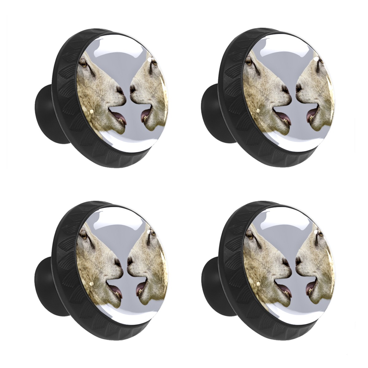Cabinet Drawer Knobs Set of 4 Twin Goat Sheep Smiling Kissing Cabinet Furniture Knobs Drawer Pulls Handle Crystal Glass Round Cupboard Knobs with Screws for Cabinets Kitchen Dresser Wardrobe DIY
