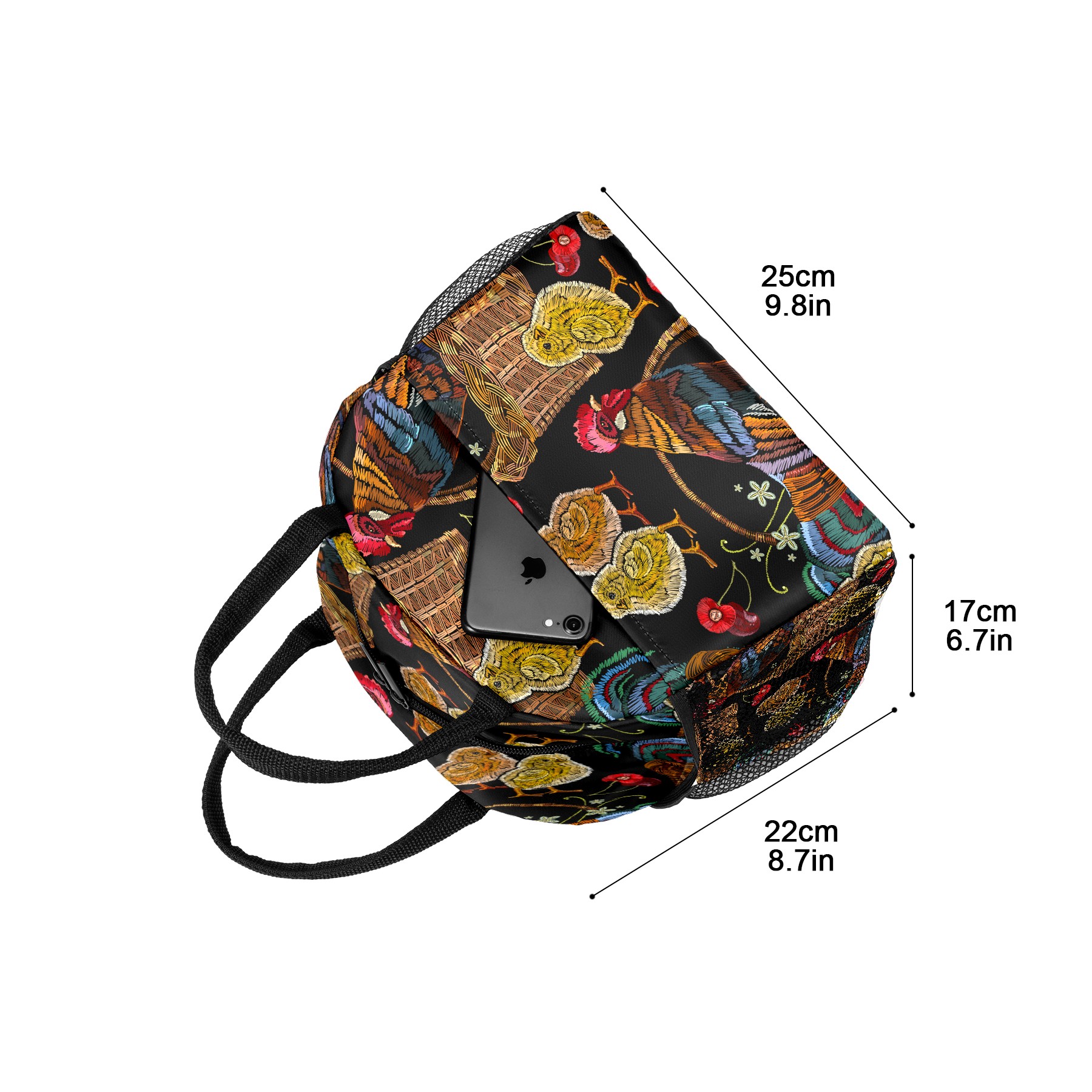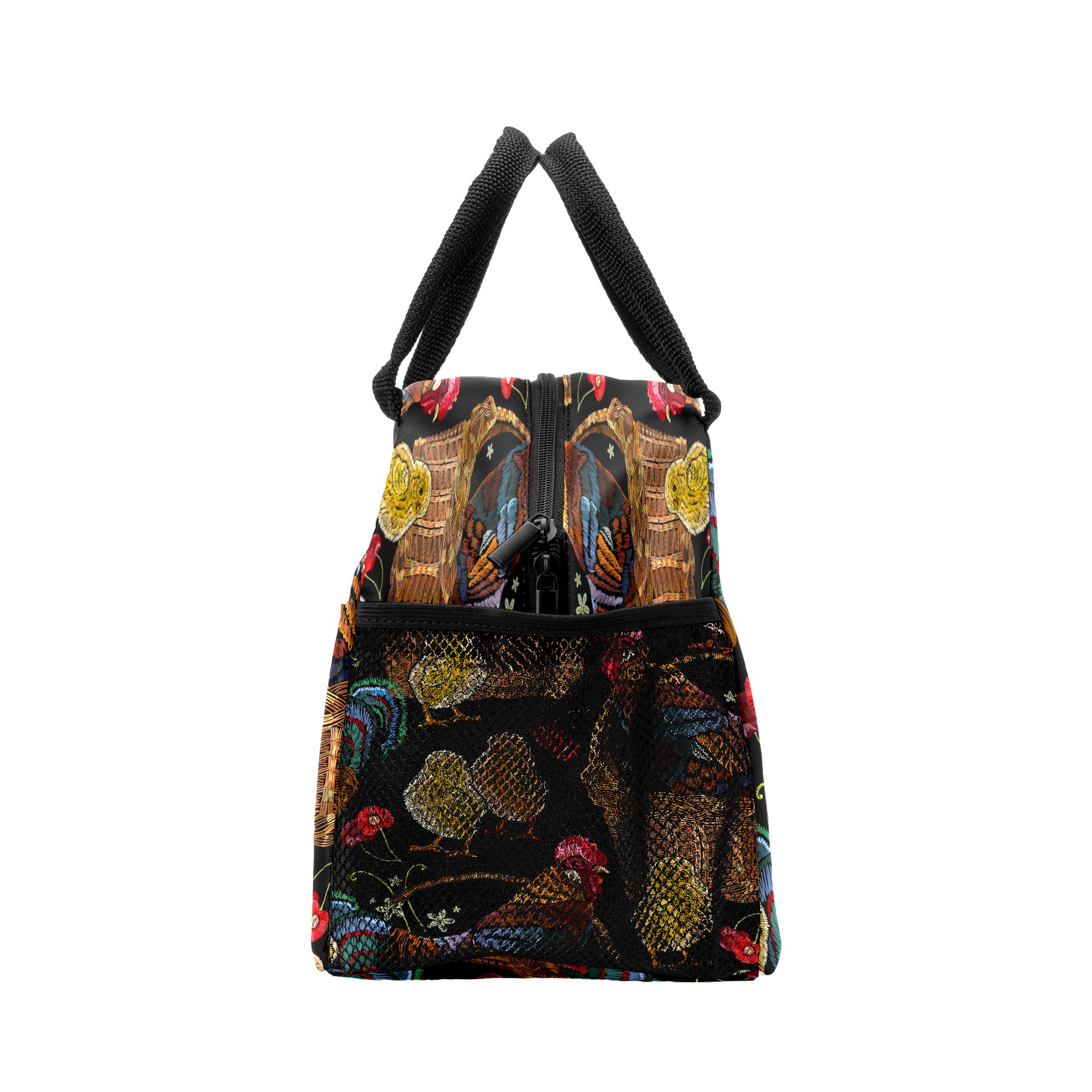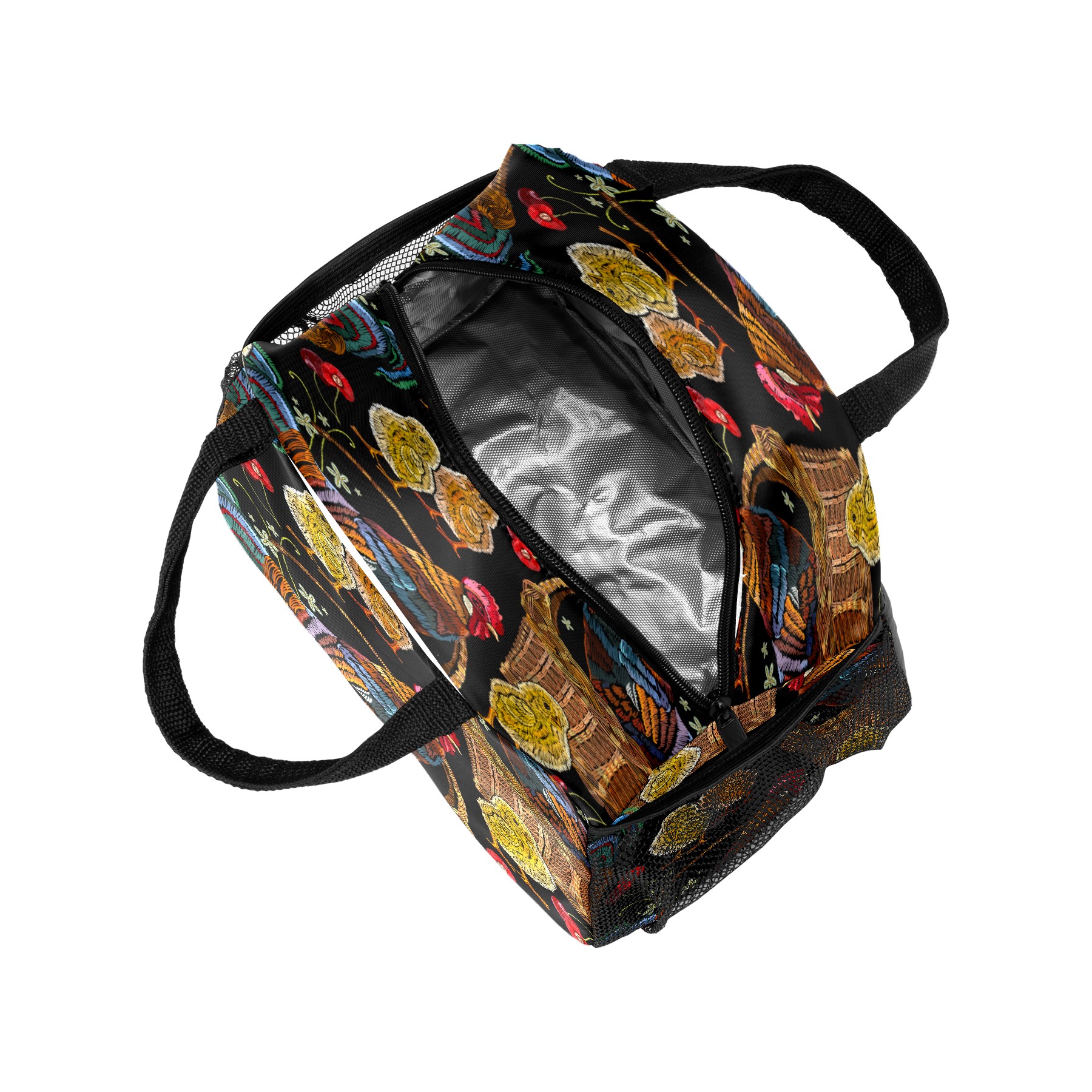 Lunch Bag for Women Men, Retro Colorful Rooster Chicken Floral Pattern Insulated Reusable Lunch Box Thermal Cooler Tote Bag for Work Picnic Hiking Travel Beach