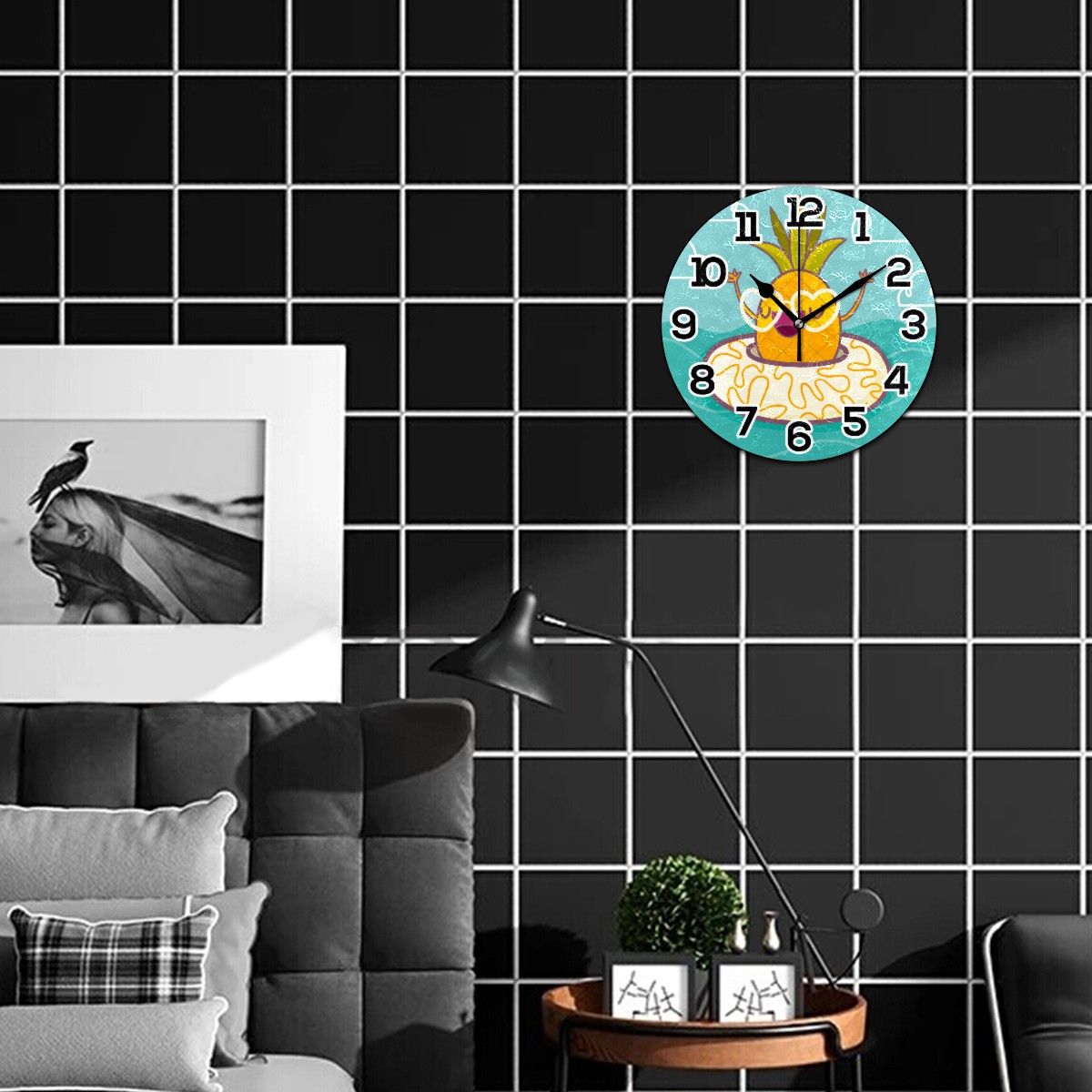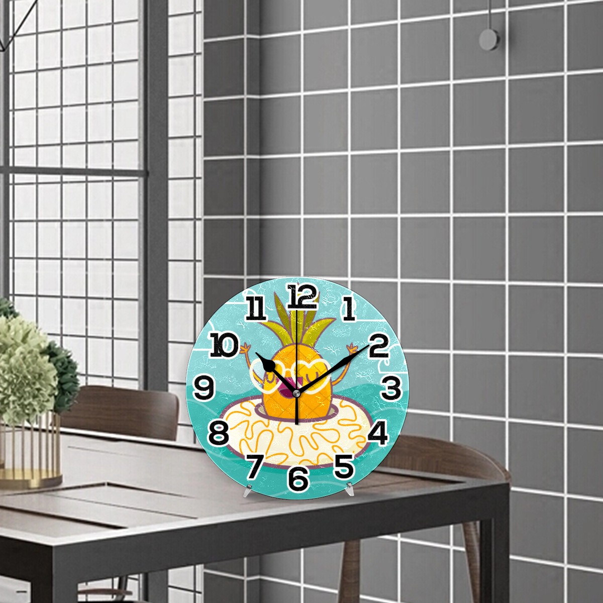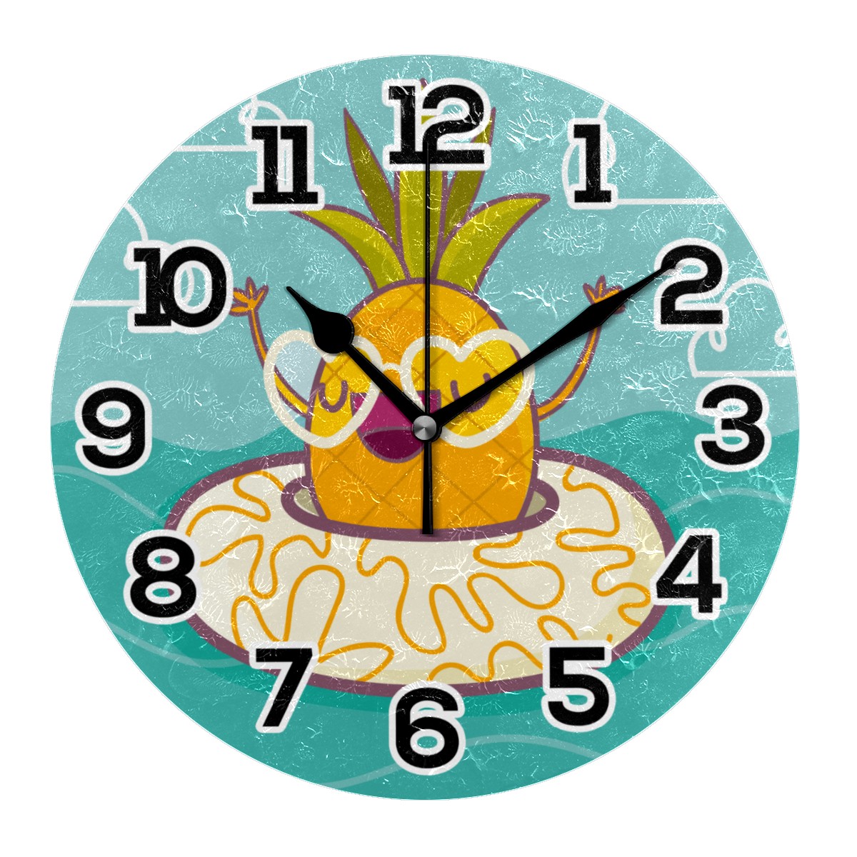 Funny Pineapple With Lifebuoy Clock Wall Decor Acrylic Decorative Round Battery Operated Wall Clocks for Home Bedroom Living Room Decor Silent Non Ticking