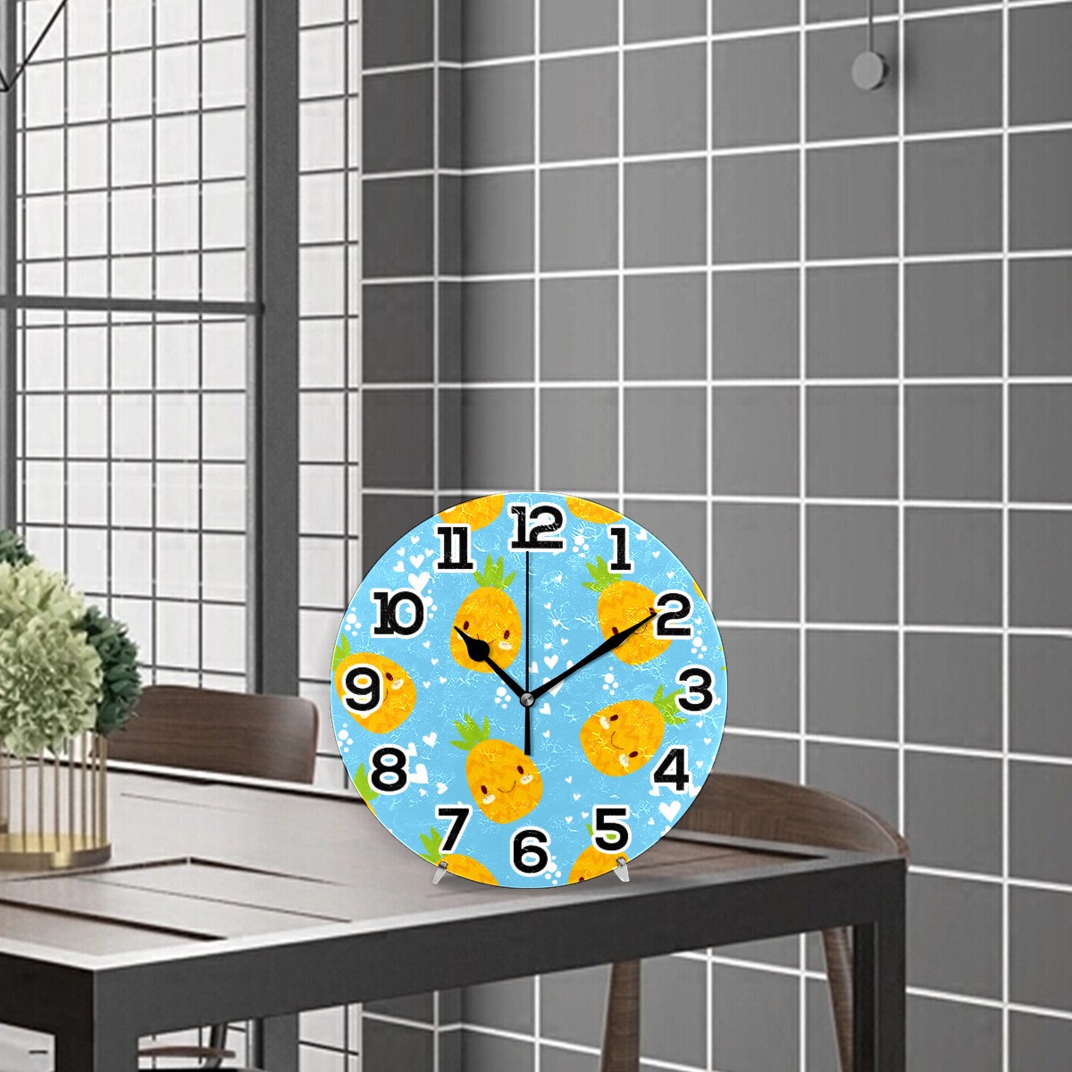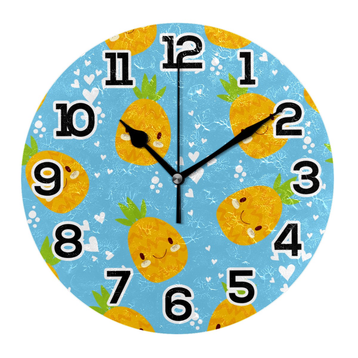 Cute Pineapple Heart Pattern Clock Wall Decor Acrylic Decorative Round Battery Operated Wall Clocks for Home Bedroom Living Room Decor Silent Non Ticking
