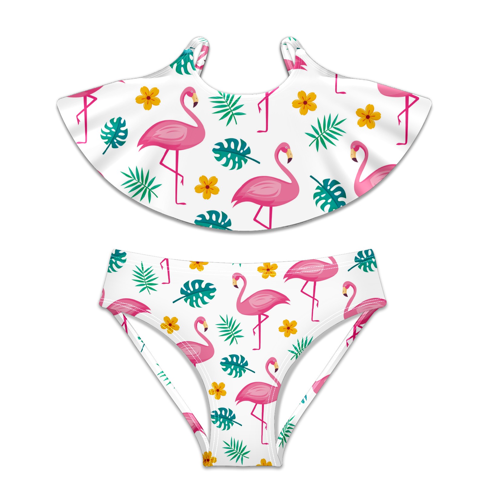 Swimsuits for Girls Two Pieces Bathing Suit Quick Dry Swimwear Tropical Flamingos Summer Pattern S