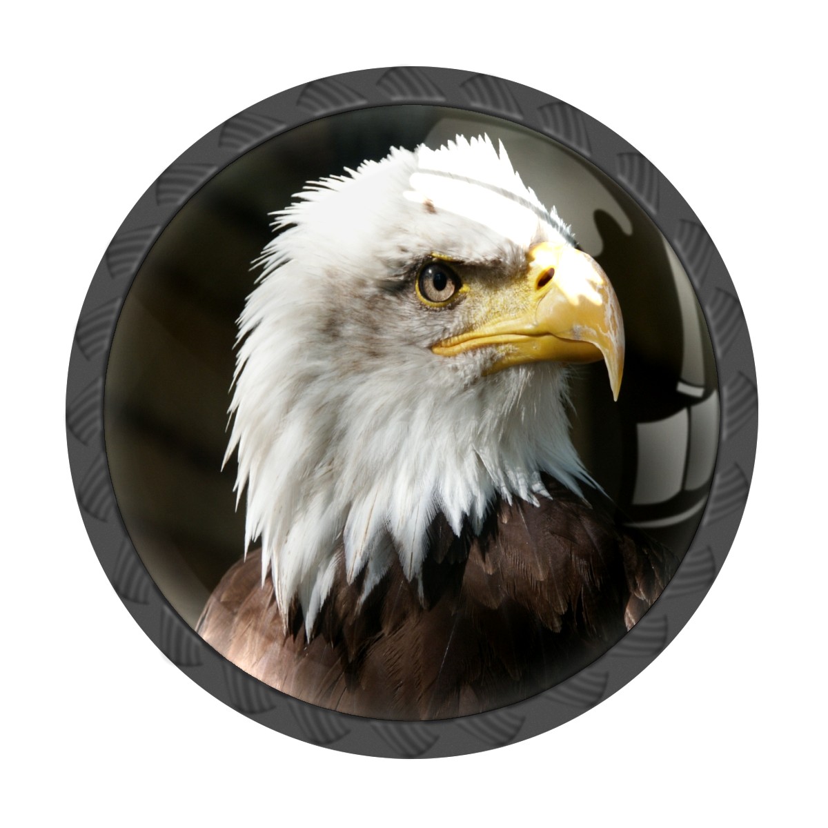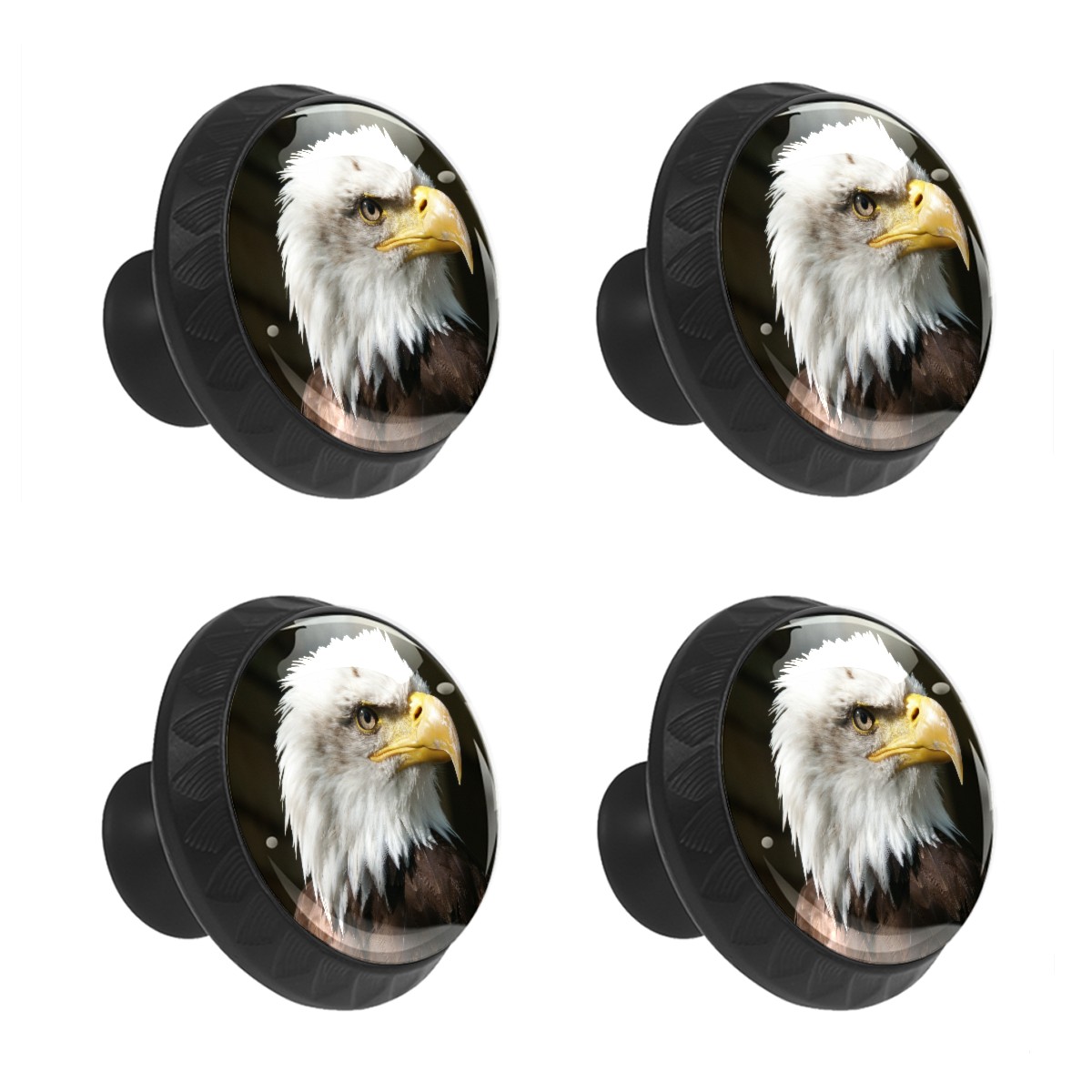 Cabinet Drawer Knobs Set of 4 Bald Eagle White Head Cabinet Furniture Knobs Drawer Pulls Handle Crystal Glass Round Cupboard Knobs with Screws for Cabinets Kitchen Dresser Wardrobe DIY